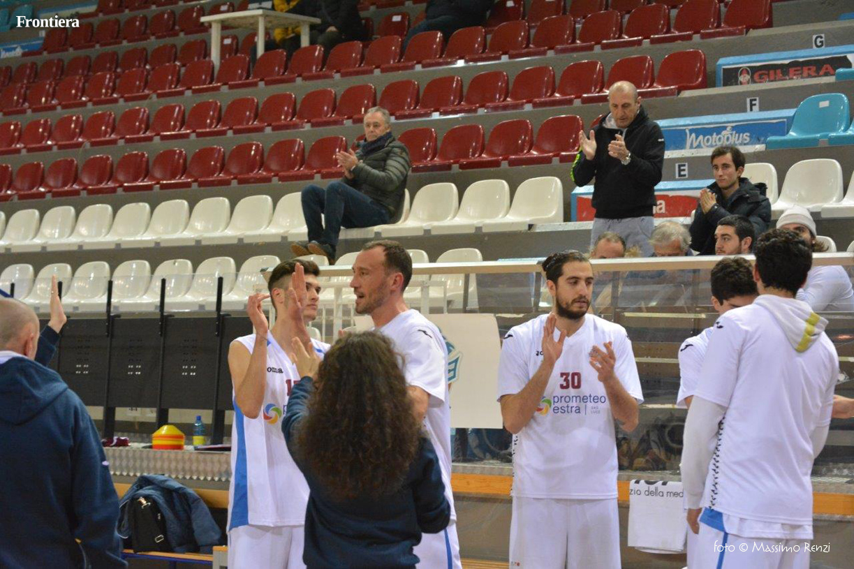 “Desidero ringraziare gli Old Fans per la curva presente, bella e numerosa e per averci sostenuto dal primo all’ultimo minuto e voglio ringraziare i miei ragazzi che hanno reagito con grande carattere alle critiche che gli sono state mosse in settimana, giocando un primo quarto di grande spessore che di fatto ha messo la partita in discesa. Ritengo, infatti, che le critiche che ci sono piovute addosso in questi ultimi giorni, siano state eccessive per una squadra che veniva da sette vittorie consecutive e che era scivolata a Roma solo dopo aver condotto una buona partita, senza Benedusi e confrontandosi con una squadra appena potenziata. In questo campionato non si può avere un percorso netto perché ci sono delle variabili incontrollabili, ma nei momenti di difficoltà dobbiamo essere tutti uniti. Desidero sottolineare che questi sono ragazzi che ci mettono sempre il cuore. E’ importante capire che se vinciamo, vince la città, se perdiamo, perdiamo tutti. A livello tecnico la gara di questa sera non è stato il massimo. Era una partita molto delicata, contro una squadra dal potenziale offensivo molto alto. Abbiamo approcciato bene, riuscendo a creare un vantaggio di 20 punti nel primo quarto che ci ha dato fiducia in attacco. Da quel punto, la partita è andata in discesa. Siamo stati bravi a tenere a bada i loro tentativi di rientrare. Rispetto alle ultime partite siamo stati molto più lucidi. Giovedì andiamo ad Agropoli per vincere, ma consapevoli di incontrare una squadra di valore. Per quanto riguarda il mercato, è più di un mese che cerchiamo giocatori, per evitare che queste situazioni di assenze si verifichino al momento top del campionato, creandoci più serie difficoltà. Cerchiamo un giocatore che dia un valore aggiunto al gruppo e non uno che faccia solo gli allenamenti. La nostra squadra ha degli equilibri che vanno toccati il meno possibile. Deve aiutare il sistema di gioco e portare energia. A noi servono giocatori duri, ruvidi e che accrescano l’energia e non è facile trovarli. Come caratteristiche tecniche dovrà ricoprire un doppio ruolo”.