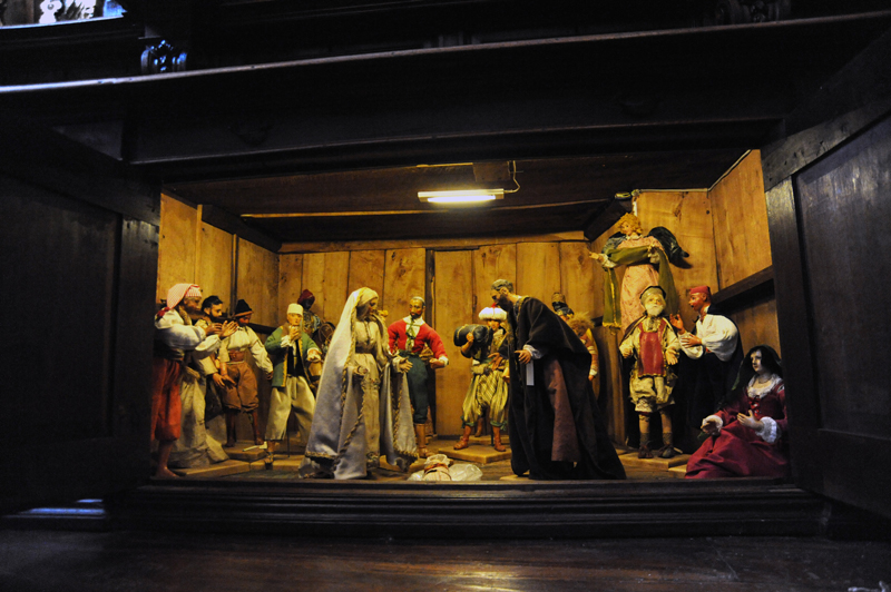 Una volta aperte, le cassettiere rivelano come autentici tesori le sete fruscianti dei veli omerali, delle pianete, dei piviali che esaltano i colori della liturgia, il bianco candido e puro screziato d’oro e d’argento, il ricco rosso rubino dei broccati e dei lampassi, la gamma luminescente del verde, capace di emulare tutte le tonalità del creato, dal muschio allo smeraldo, la severa eleganza del viola della passione e del lutto, impreziosito dalla laminatura dell’ordito, il raro rosaceo indossato soltanto in due date del calendario liturgico, nel tempo forte e della Quaresima dell’Avvento.