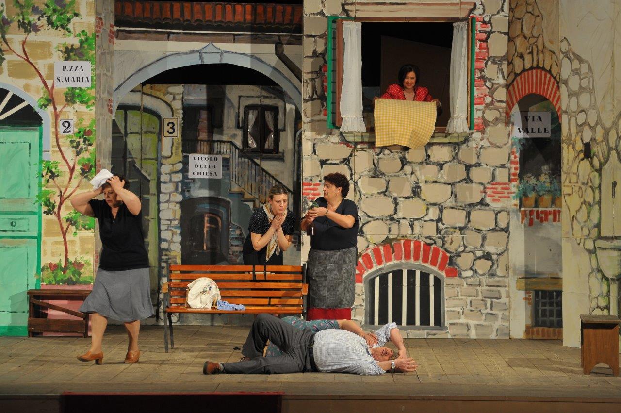 La vicenda è ambientata storicamente intorno alla metà del secolo scorso, anni in cui le uniche risorse del territorio reatino erano l’agricoltura e la pastorizia. L’unica industria presente al tempo era la Snia Viscosa, dove alcune persone, le più fortunate, trovarono un porto sicuro che consentiva una certa tranquillità economica alle proprie famiglie. L’unico luogo di ritrovo e di divertimento era l’osteria, dove gli uomini socializzavano giocando a carte, a morra, o discutendo di sport o di politica: sarà in questo contesto che emergerà la storia di Teresa: una vedova che sente impellente il bisogno di avere accanto a sé un uomo e per questo suscita la gelosia delle donne del vicinato. Pretesti, equivoci e battibecchi popolari che forniranno ottimi spuinti per strappare qualche risata al pubblico.