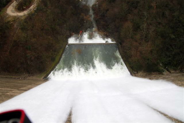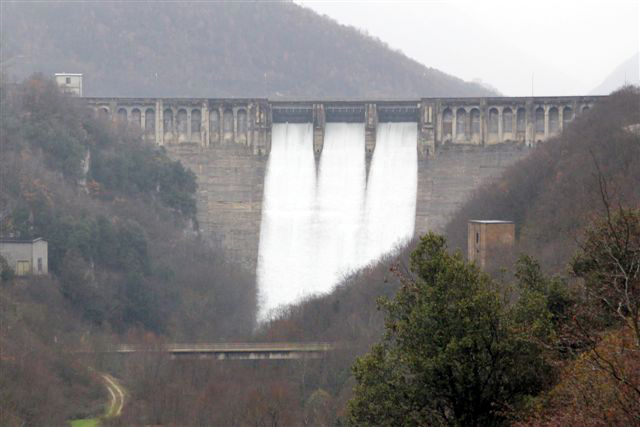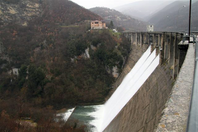 Ecco un caso in cui una foto vale più di mille parole. La diga sul lago Turano apre le paratie e scarica a valle le acque in eccesso.