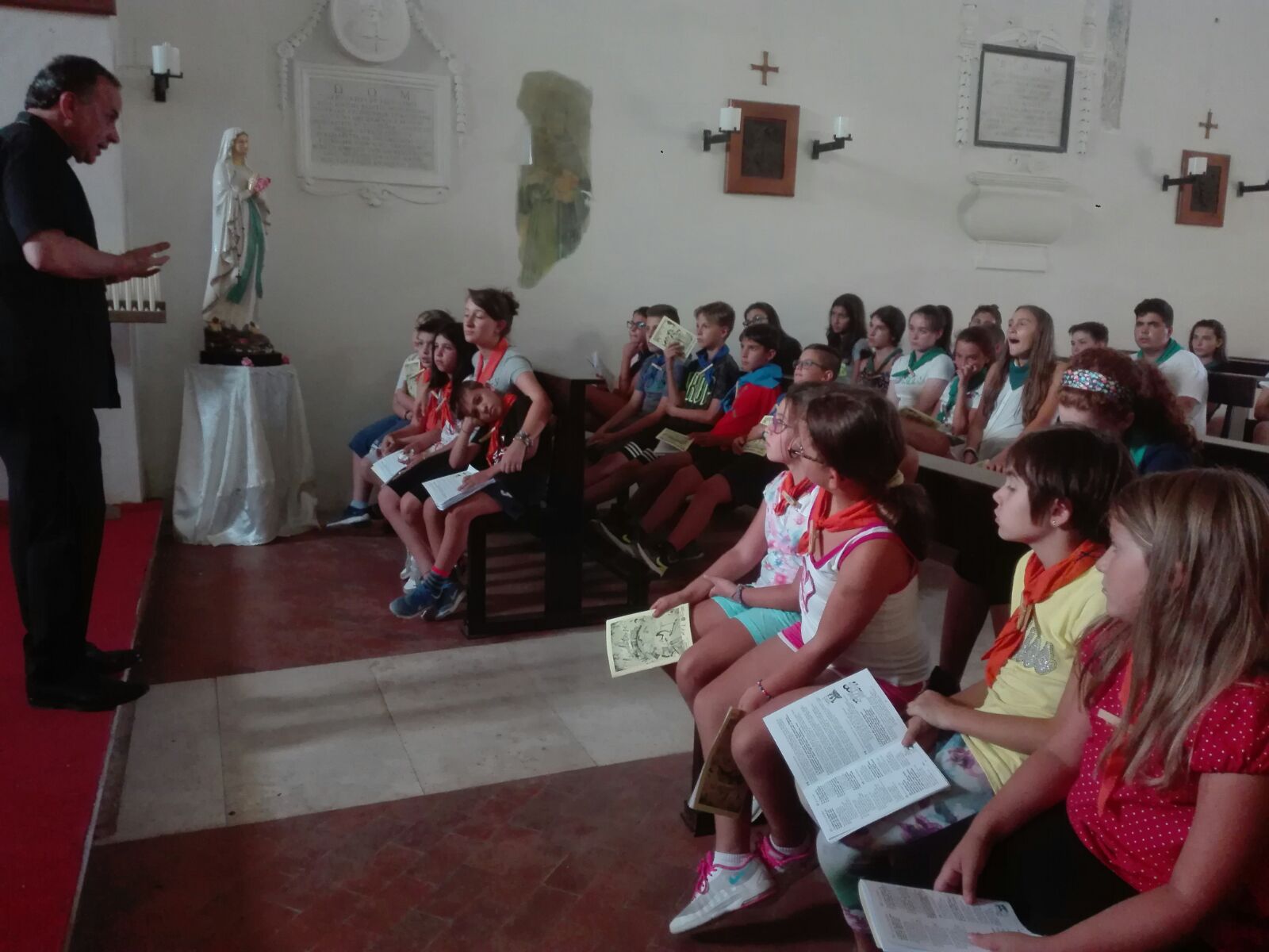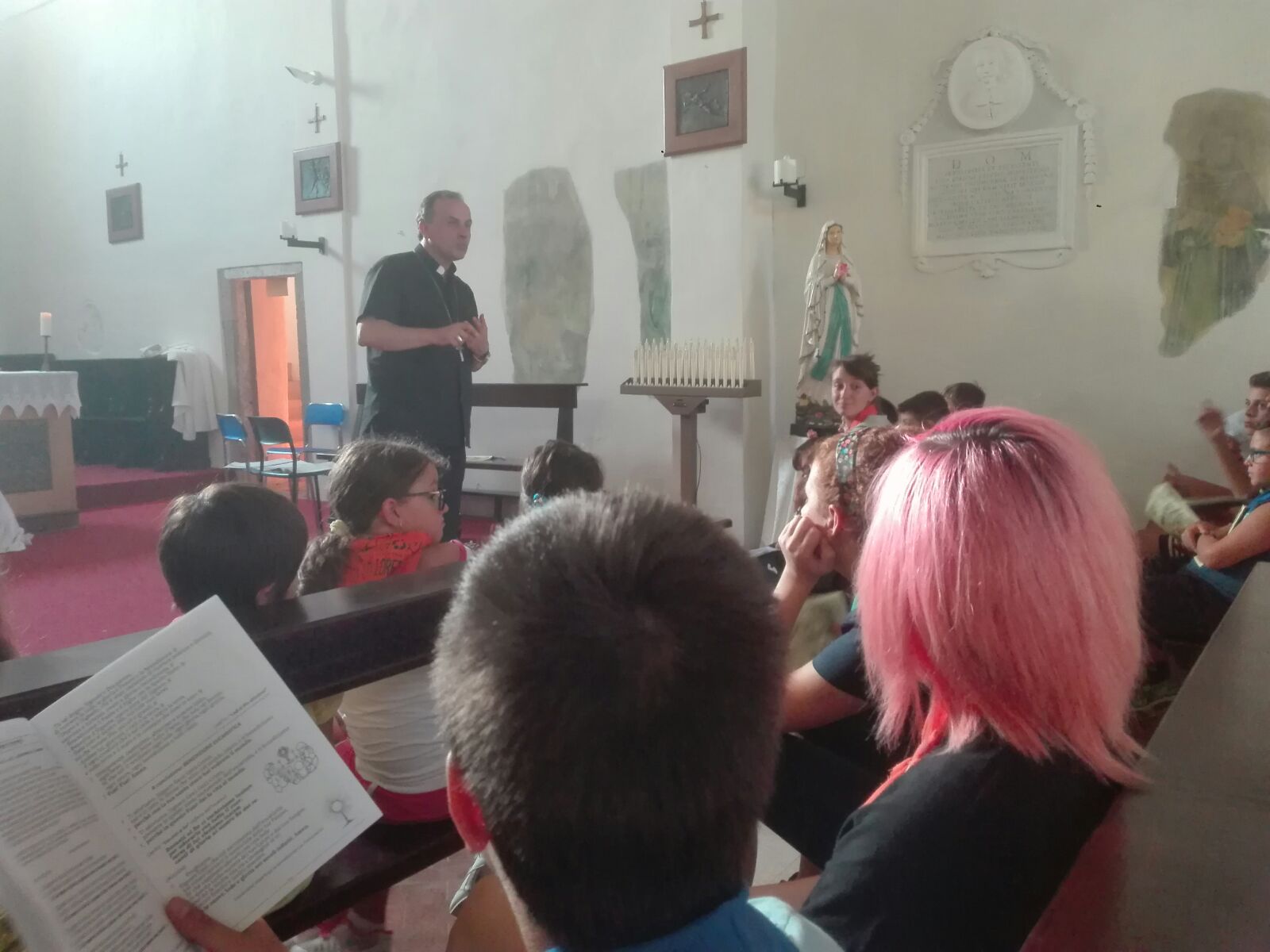Proprio il gesto compiuto al momento dell’offertorio nella Messa finale celebrata dall’assistente Acr don Roberto D’Ammando insieme alle famiglie ha suggellato tale impegno: nel deporre sull’altare l’ostia per il sacrificio eucaristico, ogni fanciullo, a significare l’offerta di sé, ha simbolicamente apposto la propria firma sullo striscione con la scritta “pace” quale proposito di essere, secondo il messaggio francescano, strumenti di pace, custodendo la “casa comune” che è il mondo intero.Non è mancata, durante il campo, la visita del vescovo Domenico Pompili, che si è intrattenuto coni ragazzi fino a cena (graditissimo, ovviamente, il gelato da lui portato in dono) non senza cogliere l’occasione per richiamare loro la particolare identità francescana che caratterizza la nostra terra e il dovere di sentirsi particolarmente depositari del messaggio del “Francesco da Rieti”.