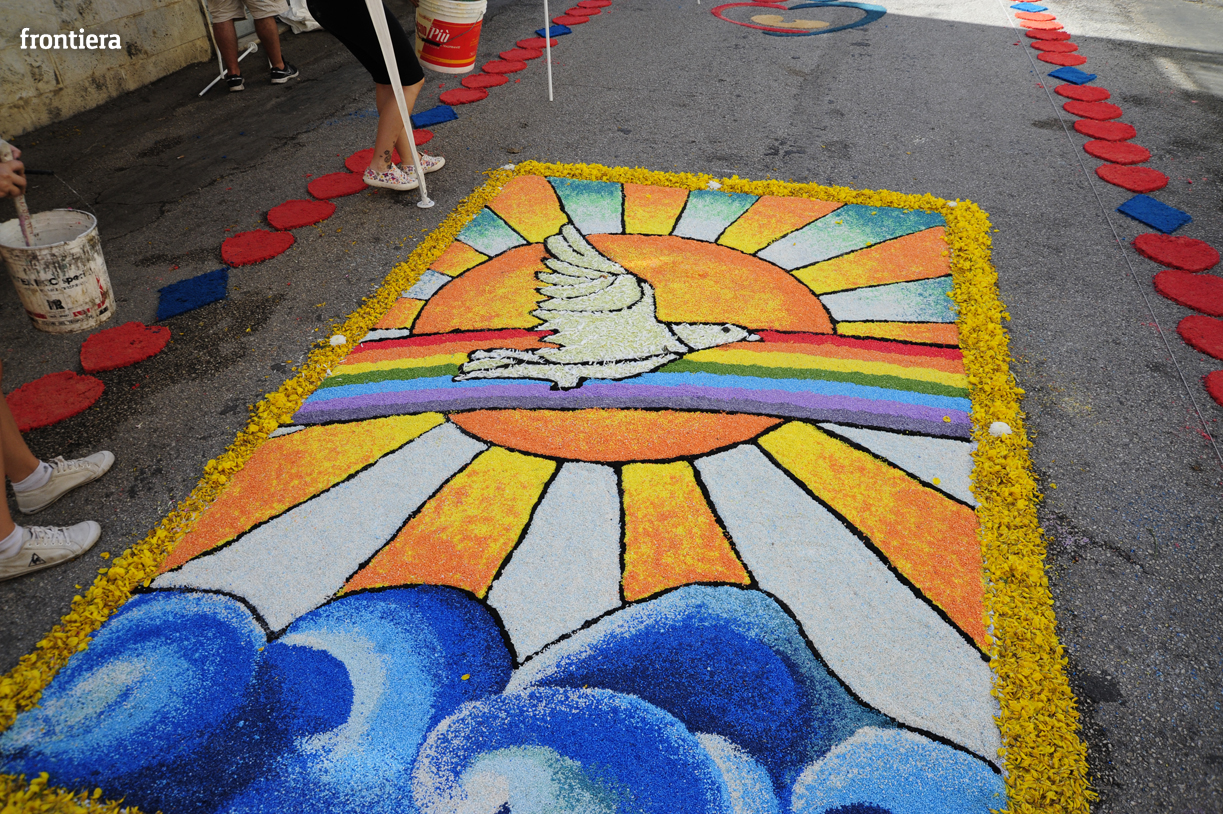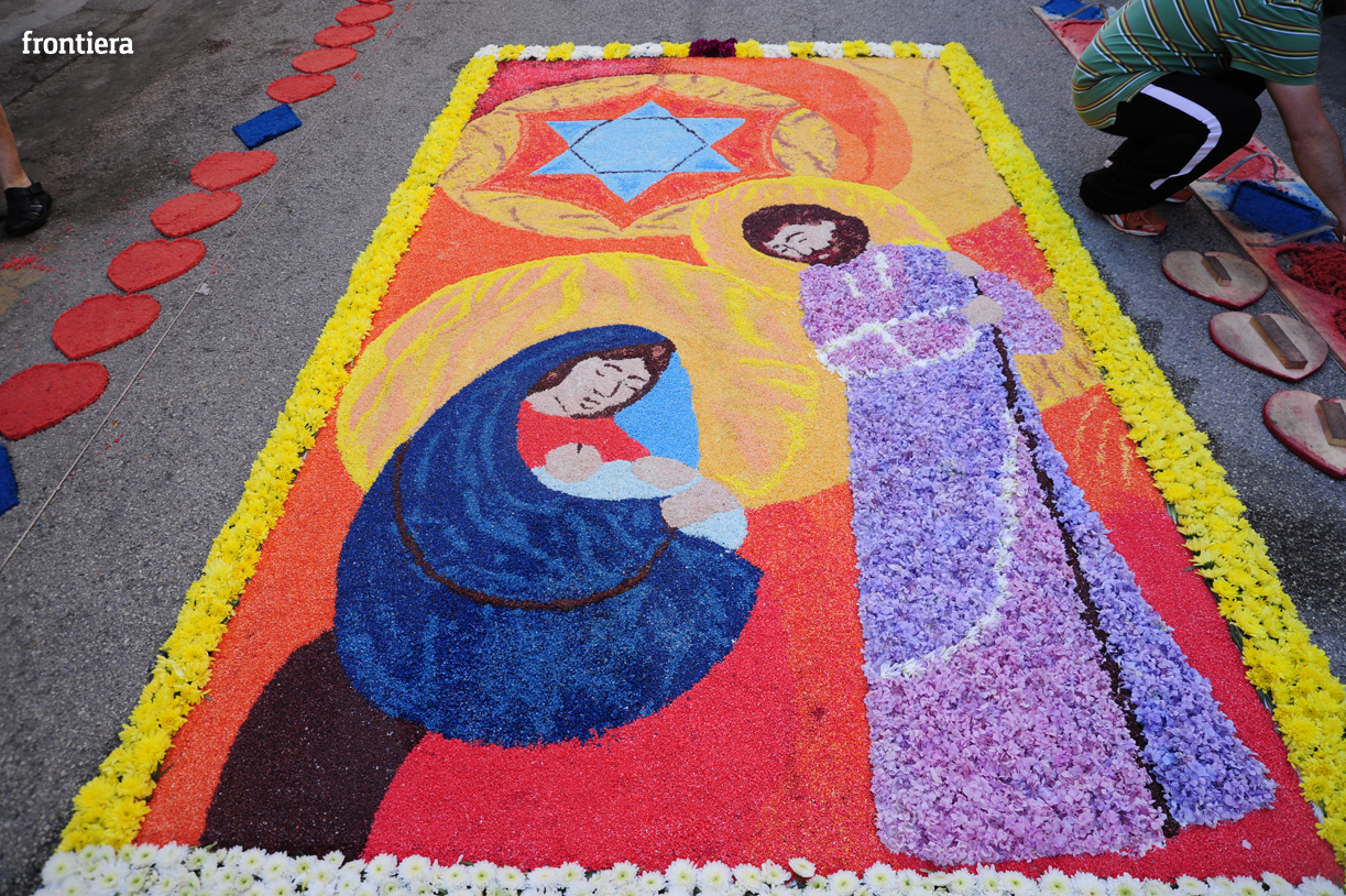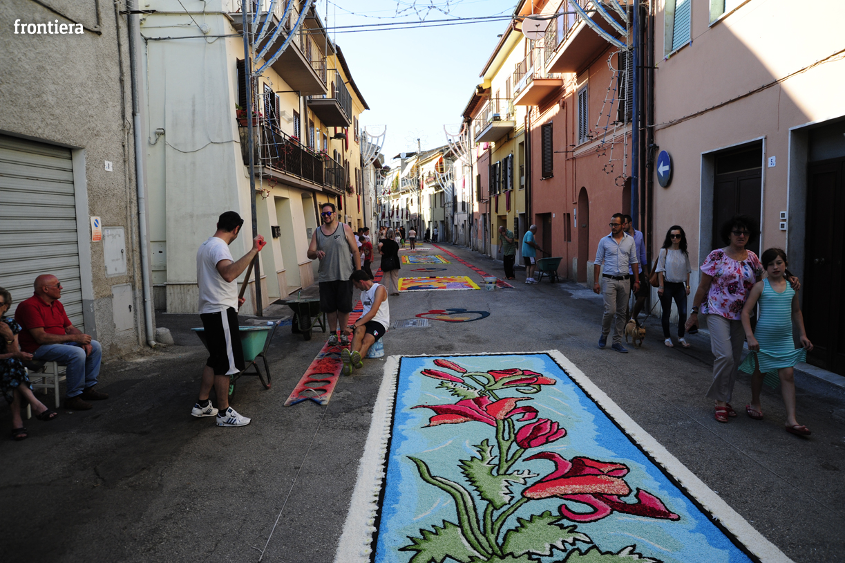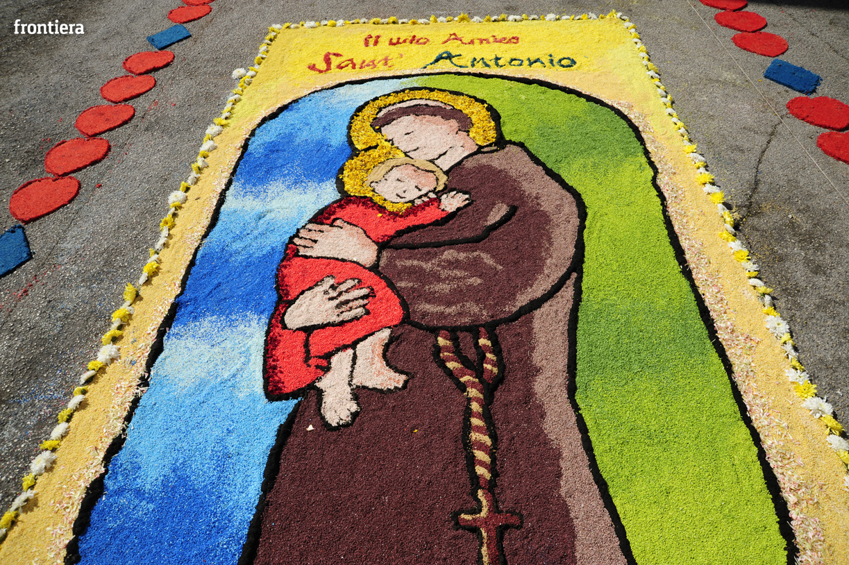 Fotocronache Le infiorate: il Borgo Galleria 28 Giugno 2015 Redazione Frontiera Straordinario, come ogni anno, il lavoro degli infioratori in occasione della processione dei ceri in onore di Sant’Antonio.