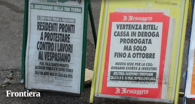 “Ritel, cassa fino a ottobre” è il titolo di apertura de «Il Messaggero» di questa mattina. “La Regione ha prorogato di un solo mese l’accordo che coinvolge i 190 lavoratori” si legge negli occhielli, e ancora: “Delusi i sindacati che auspicavano un periodo più lungo. Ora si aspetta Finmeccanica”. Il tema occupa anche l’articolo di spalla del «Corriere di Rieti»: “Sindacati sul piede di guerra” si legge nell’occhiello; “La Regione proroga solo di un mese la “Cassa” della Ritel” il titolo.
