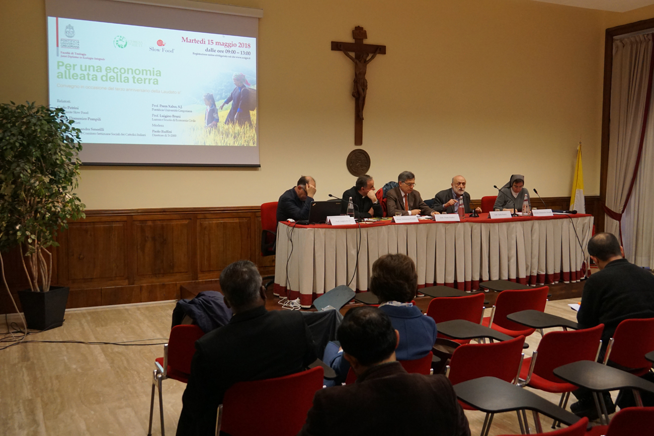 Ma la visione della Laudato si’ è anche economica, e qui si innesta l’approfondimento ospitato il 15 maggio dalla Pontificia Università Gregoriana, dedicato proprio a «una economia alleata della Terra». E se il presidente di Slow Food ha sottolineato «l’errore storico» dell’aver abbandonato l’economia della sussistenza per privilegiare l’economia dell’accumulazione, la professoressa Alessandra Smerilli ha provato a smontare gli “a priori” che nelle teorie economiche hanno condotto il mondo al punto in cui si trova ora. E non senza notare che la terra è uscita dal discorso che fino a pochi anni fa la vedeva tra i fondamentali fattori di produzione insieme a capitale e lavoro. Una fenomeno che la relazione del prof. Prem Xalxo e l’intervento del prof. Luigino Bruni hanno mostrato strettamente connessa all’ideologia del mercato, che preme per diventare una sorta di chiave di lettura globale della realtà. Ma altri modelli economici, altri presupposti per la produzione, il lavoro, il consumo, sono possibili.