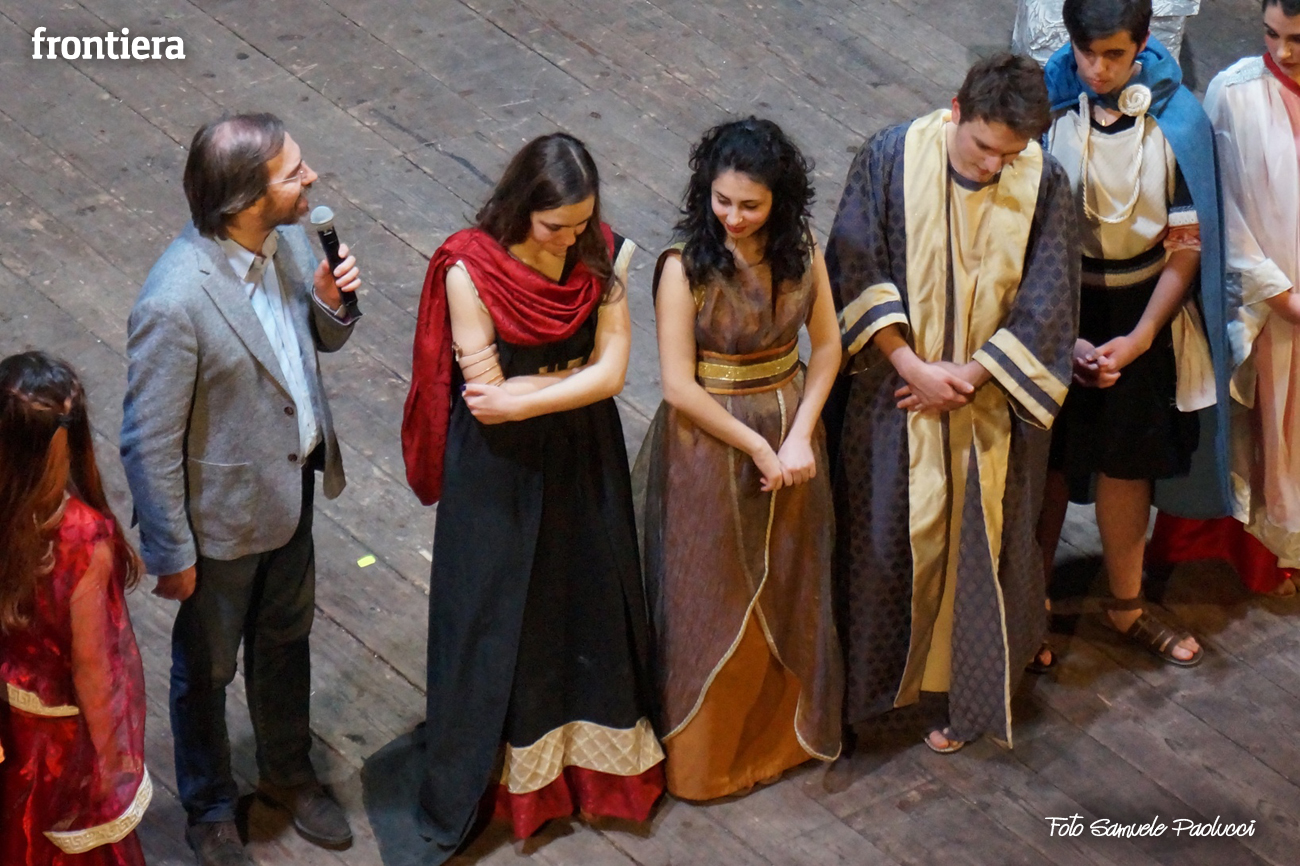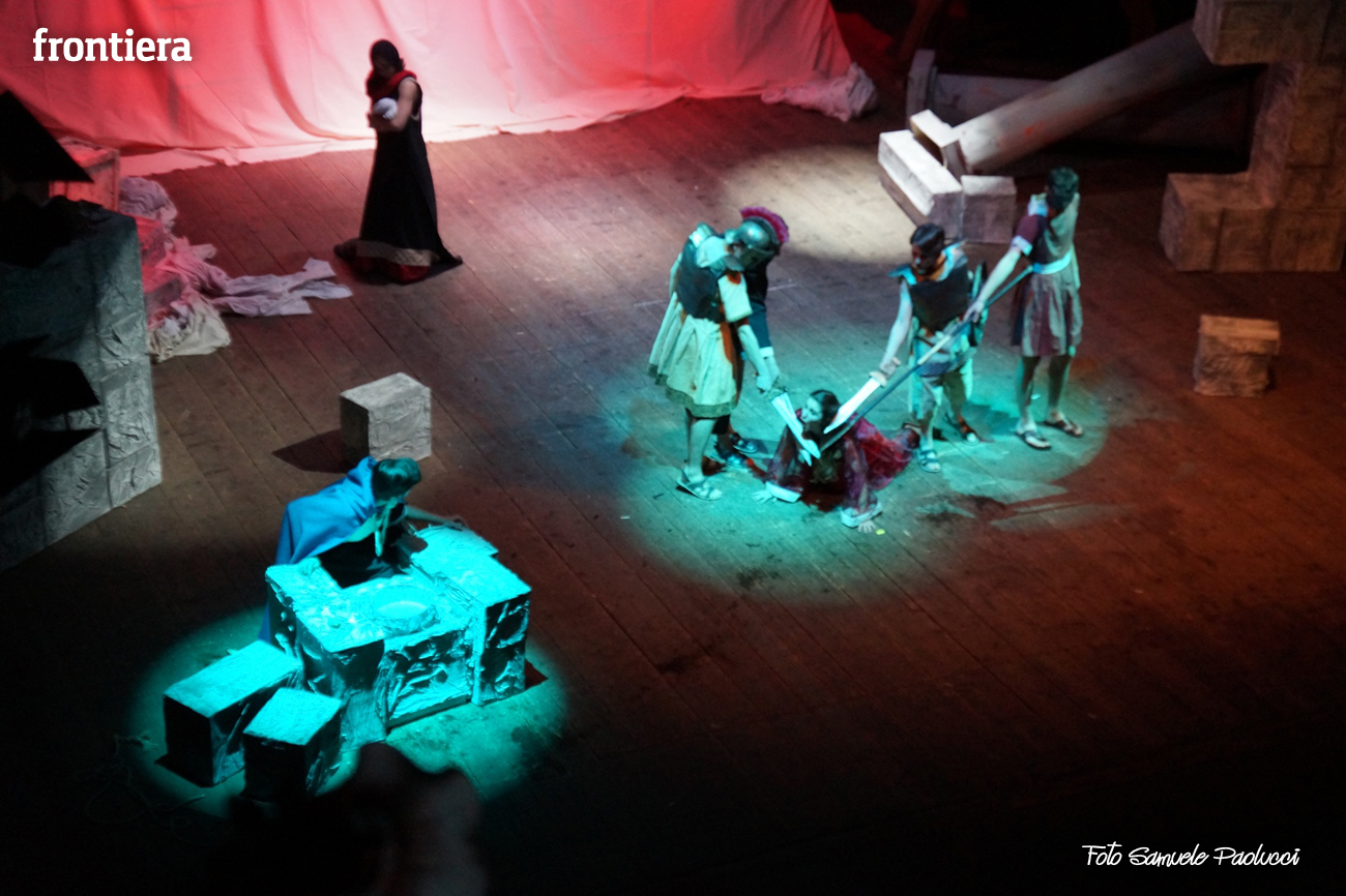 Mercoledì 23 marzo al Teatro Flavio Vespasiano i ragazzi del laboratorio di teatro del liceo classico “Varrone” hanno portato in scena la tragedia “Troiane” di Euripide. La traduzione del testo greco e l’adattamento sono del prof. Carmesini, per la regia di Alessandro Cavoli e le scenografie di Gianfranco Guercilena. Alle scenografie hanno lavorato i ragazzi del Laboratorio di scenografia del liceo artistico e classico.
