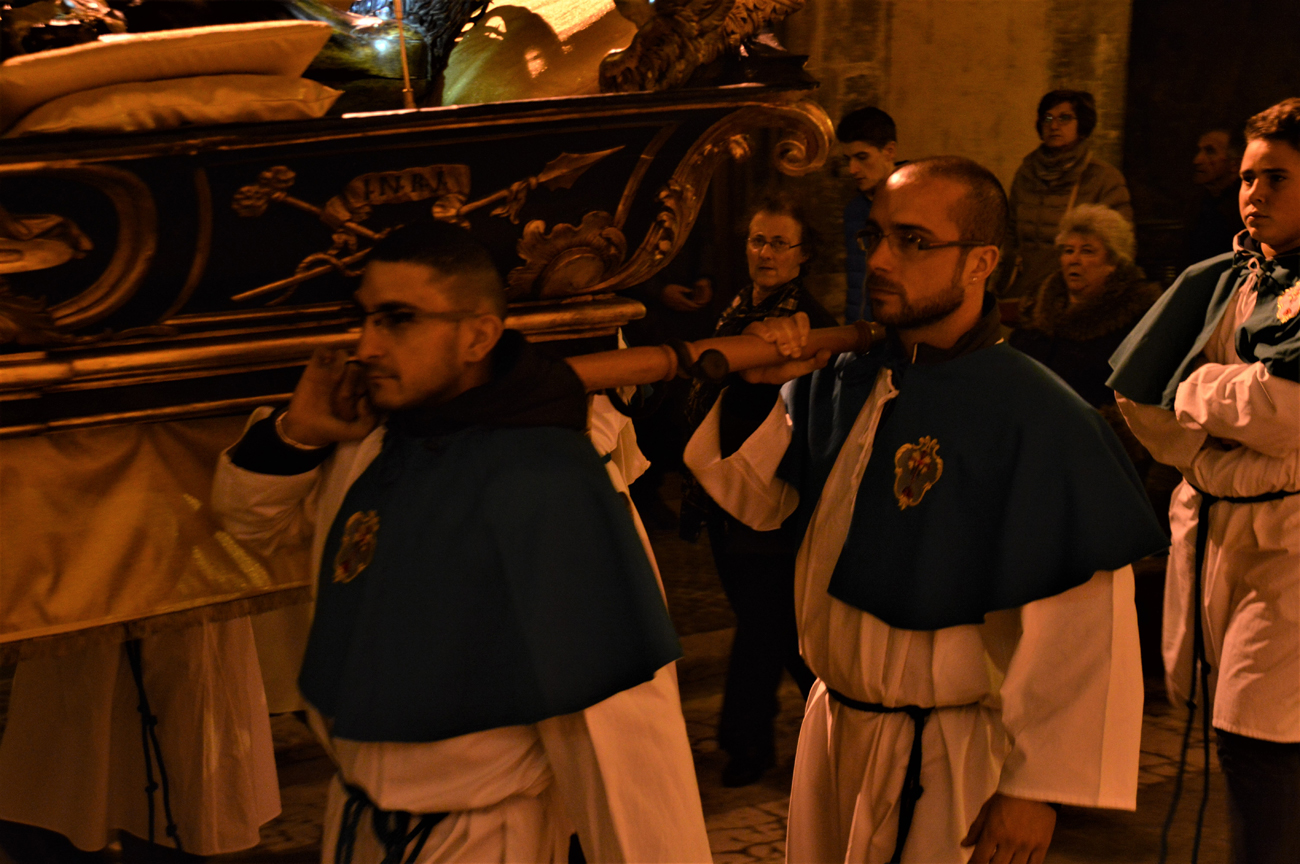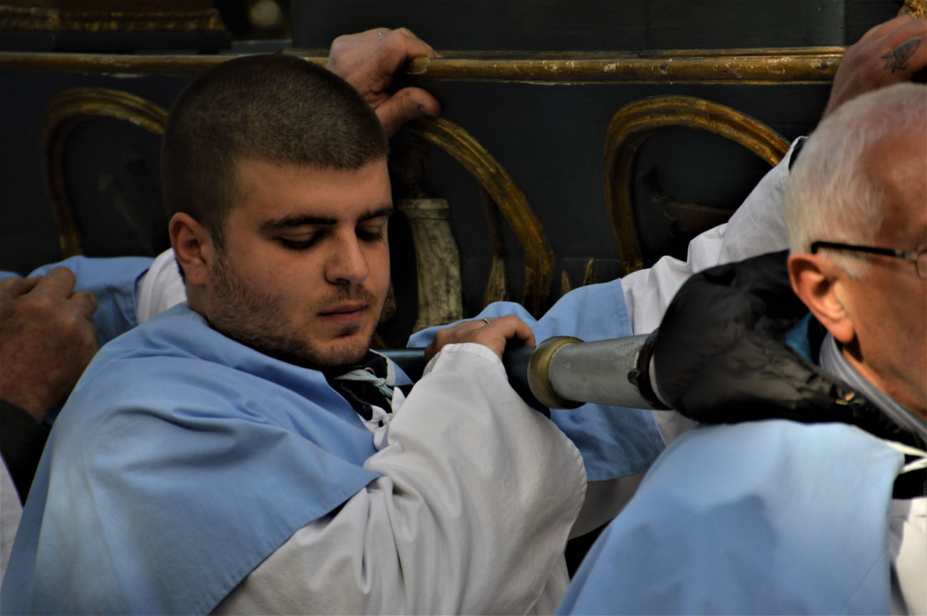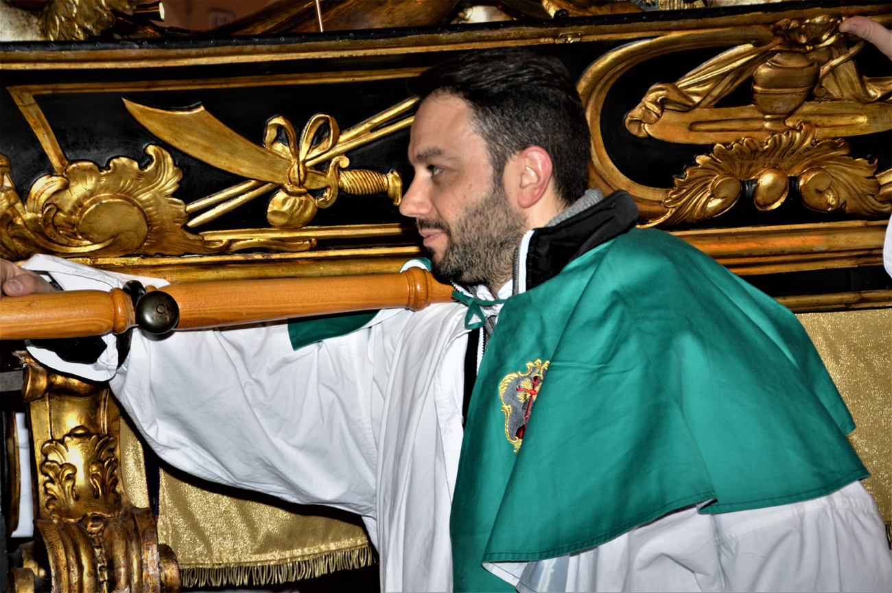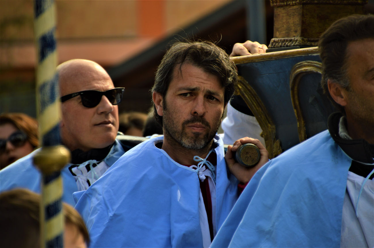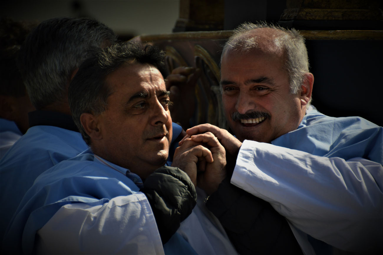Tornando alle processioni, quella del “Cristo morto” guidata dalla confraternita “Santa Croce”, si è svolta nella notte del Venerdì Santo attraversando le strade cittadine e ritornando alla chiesa di San Francesco, luogo da cui era partita. Emozionante come sempre l’incontro che avviene al termine di questa processione tra la statua del Cristo morto e la sua santissima madre Maria; incontro che in genere avviene nella chiesa di San Pietro e che quest’anno, a causa della non agibilità della stessa, si è celebrato in piazza 7 Aprile, dinanzi alla sede comunale.