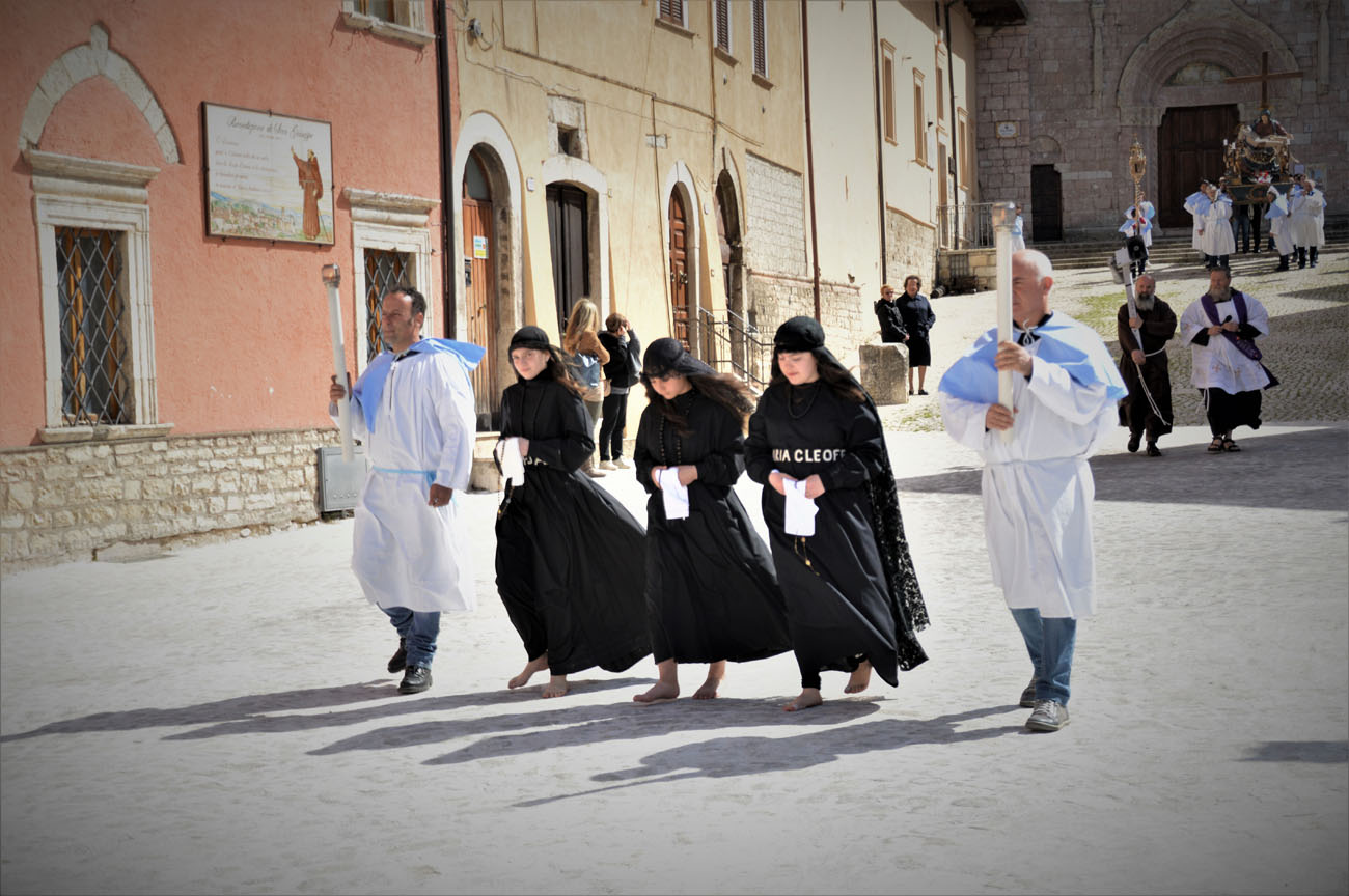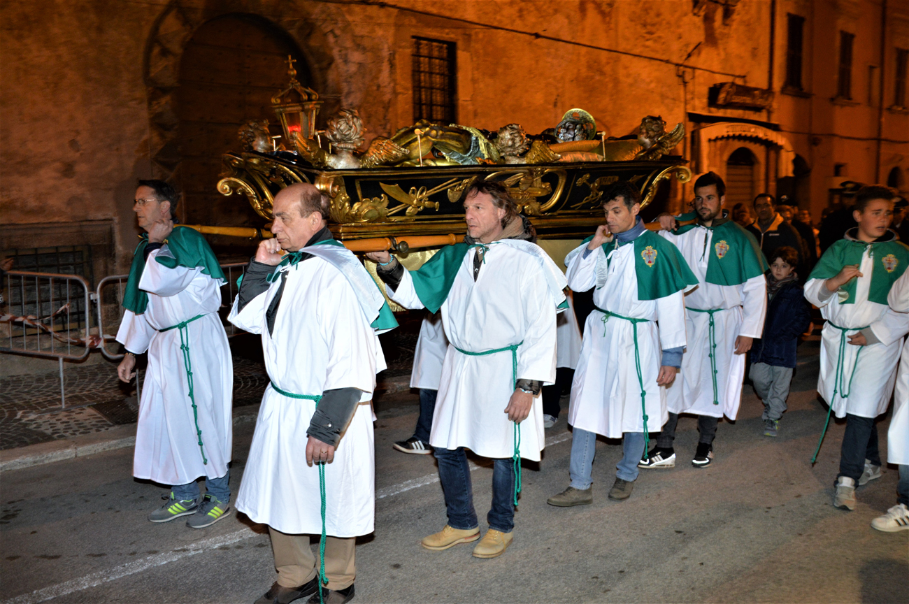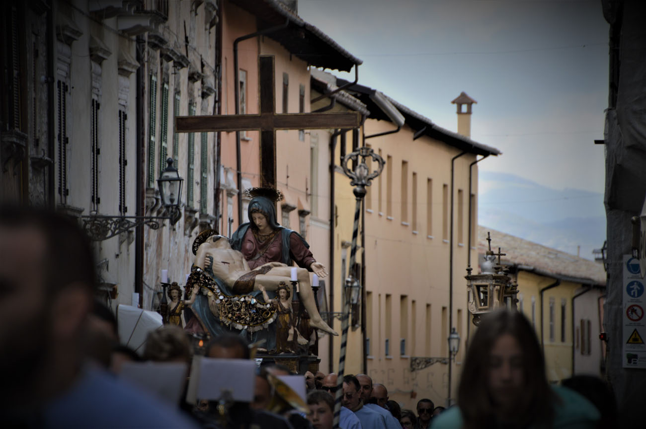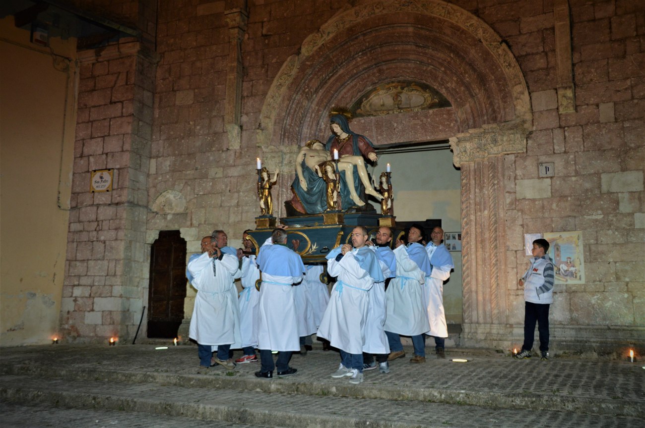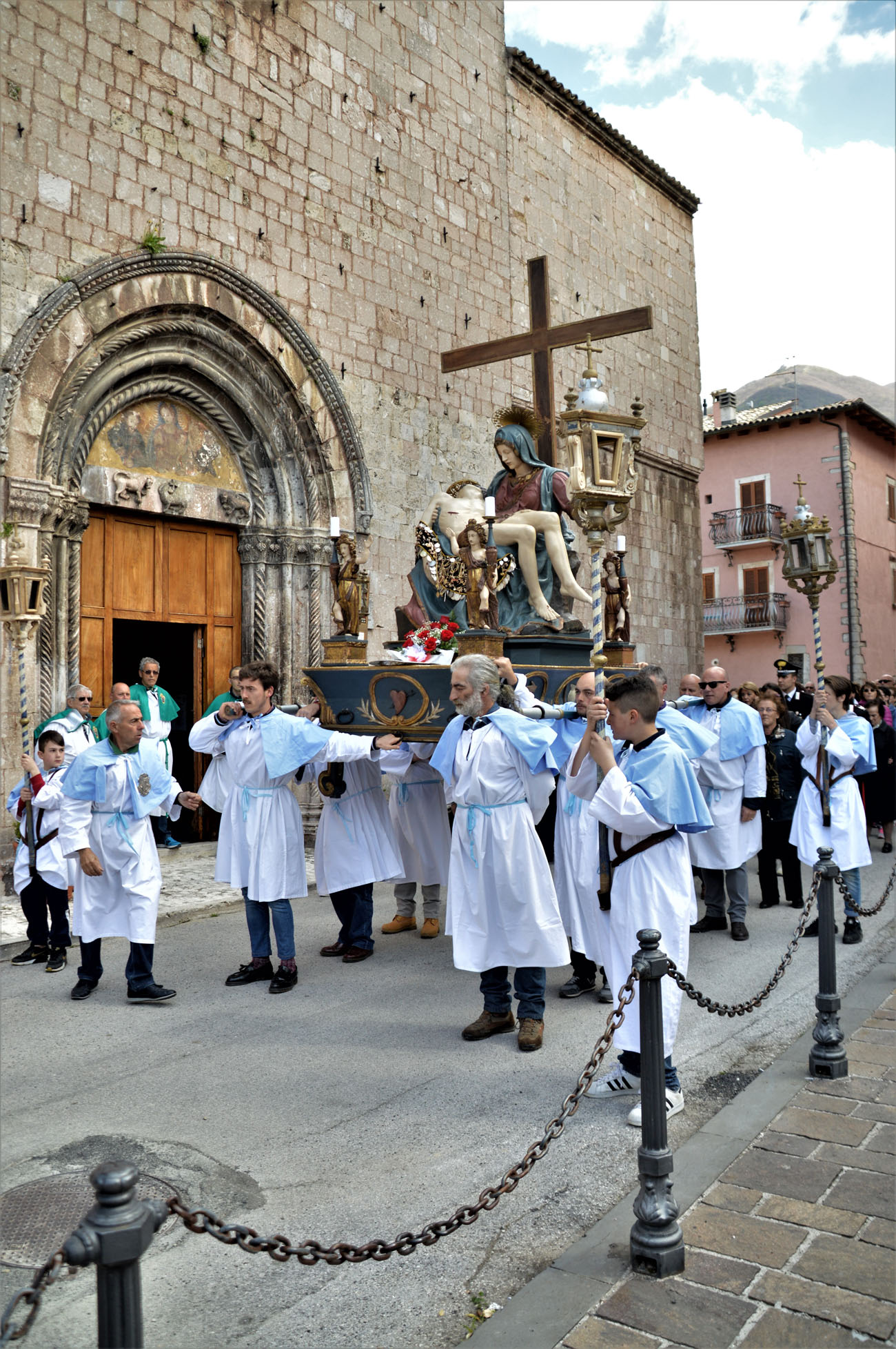 Momenti di intensa spiritualità e partecipazione sono stati vissuti dai presenti alle tre processioni che sono incluse nel triduo pasquale celebrato a Leonessa: il Cristo morto del Venerdì Santo, la Madonna della Pietà del Sabato Santo e il Cristo risorto della mattina di Pasqua. Queste tre processioni attraversano i giorni più importanti dell’anno liturgico aperti con la santa messa in Coena Domini, quest’anno celebrata nella struttura donata alla comunità leonessana dalla Caritas nazionale e dalla diocesi di Rieti.