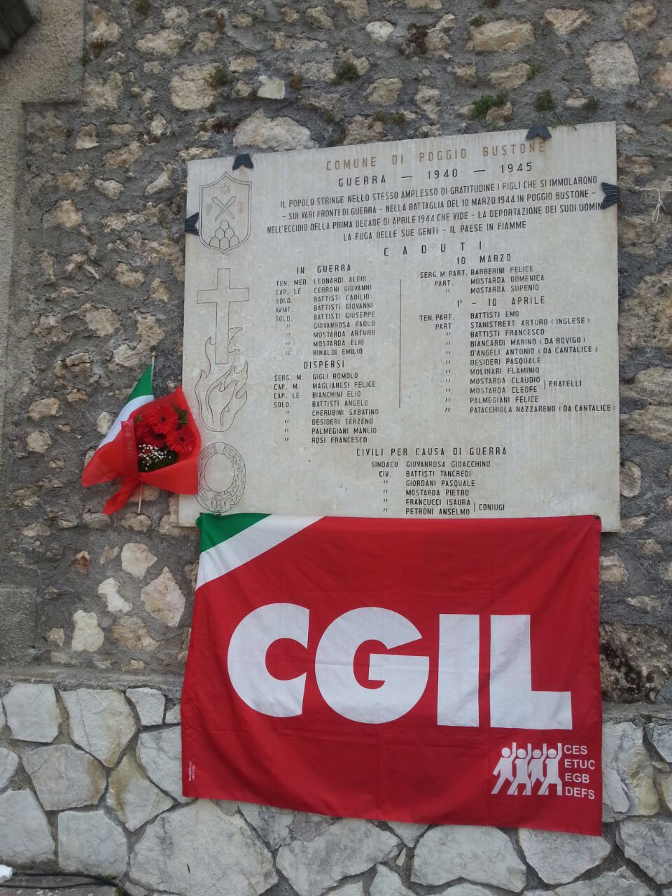 Sabato 25 Aprile, in occasione del 70° della Liberazione, una delegazione della Camera del Lavoro CGIL di Rieti si è recata nei luoghi simbolo della guerra Partigiana in provincia di Rieti (Poggio Bustone, Leonessa, Monte Tancia, Fosse Reatine, Campo di Concentramento di Farfa Sabina) per commemorare e rendere omaggio ai Martiri della Resistenza, depositando un mazzo di fiori ed una bandiera sui monumenti eretti in Loro memoria.