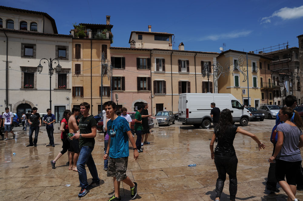 Ragazze e ragazzi zuppi ma felici, baciati dal sole caldo di questo giugno.