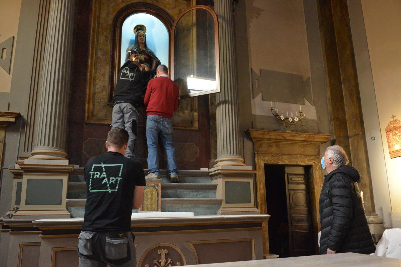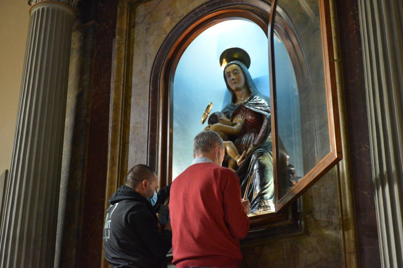Eppure, c’è del buono. Perchè quello dato alla Madonna del Soccorso – così è invocata dagli abitanti del paese alle pendici del Terminillo – non è certo un addio, ma solo un arrivederci. L’effigie infatti tornerà presto al suo posto, e splenderà di nuova luce e della bellezza autentica dei tempi della sua origine.