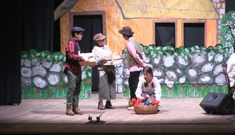Attori, cantori e musicisti si sono impegnati tanto e gli applausi del pubblico convenuto al teatro Vespasiano li hanno meritati tutti, proponendo la versione a mini-musical della celebre fiaba Jack e il fagiolo magico, racconto popolare inglese con protagonista il ragazzo che si arrampica sulla pianta di fagioli che buca le nubi e raggiunge la casa del gigante-orco cui sottrae prima monete e poi la mitica gallina dalle uova d’oro, salvando così lui e sua mamma dalla miseria.