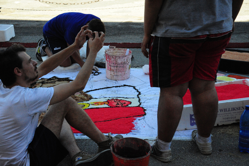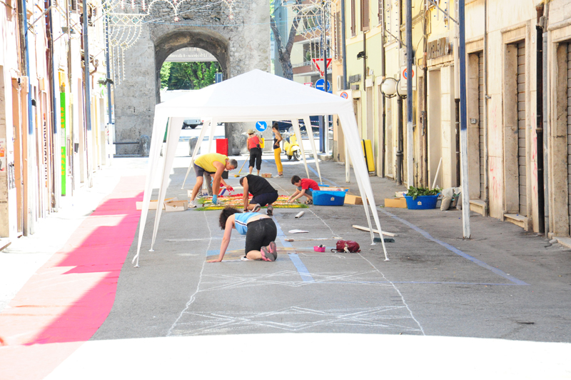È ormai entrata nel vivo la giornata più attesa del giugno antoniano. Sono in allestimento nelle strade tradizionali le infiorate del centro storico. Un tappeto di materiali e colori in attesa del passaggio della Processione dei Ceri e della “macchina” di Sant’Antonio da Padova.