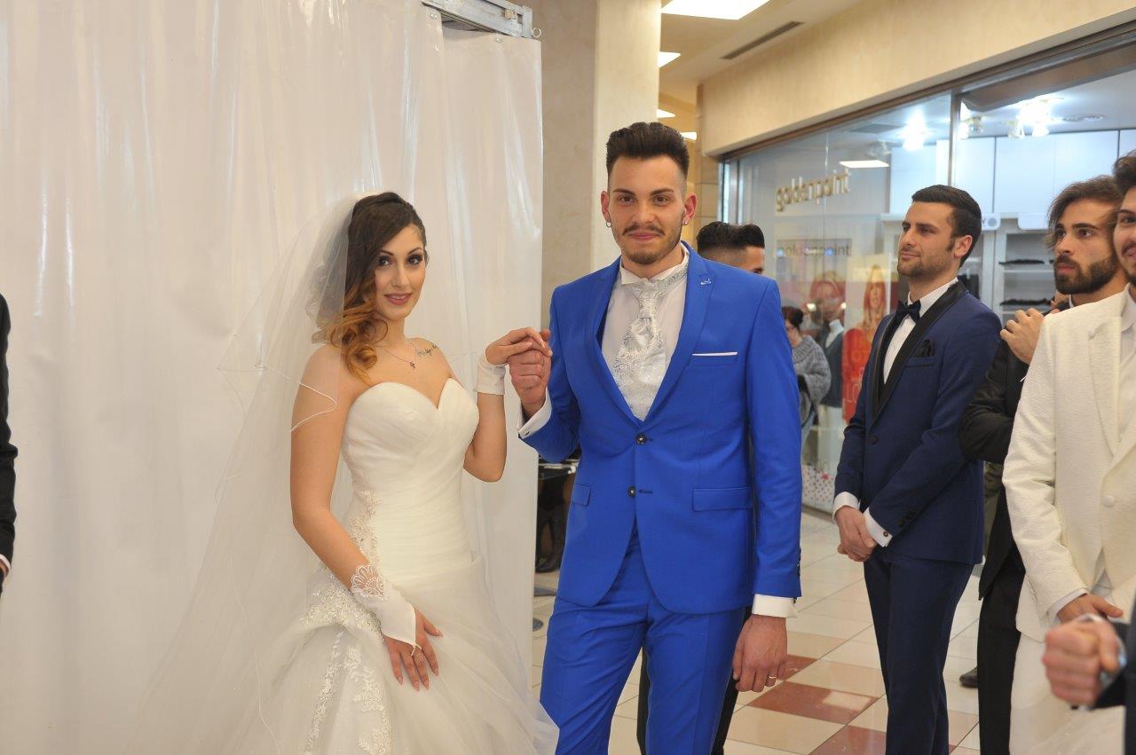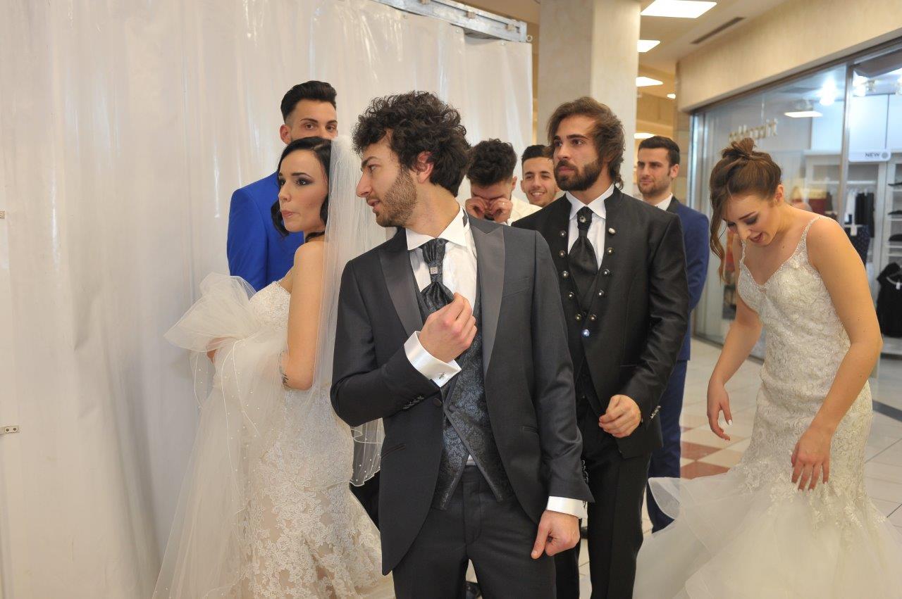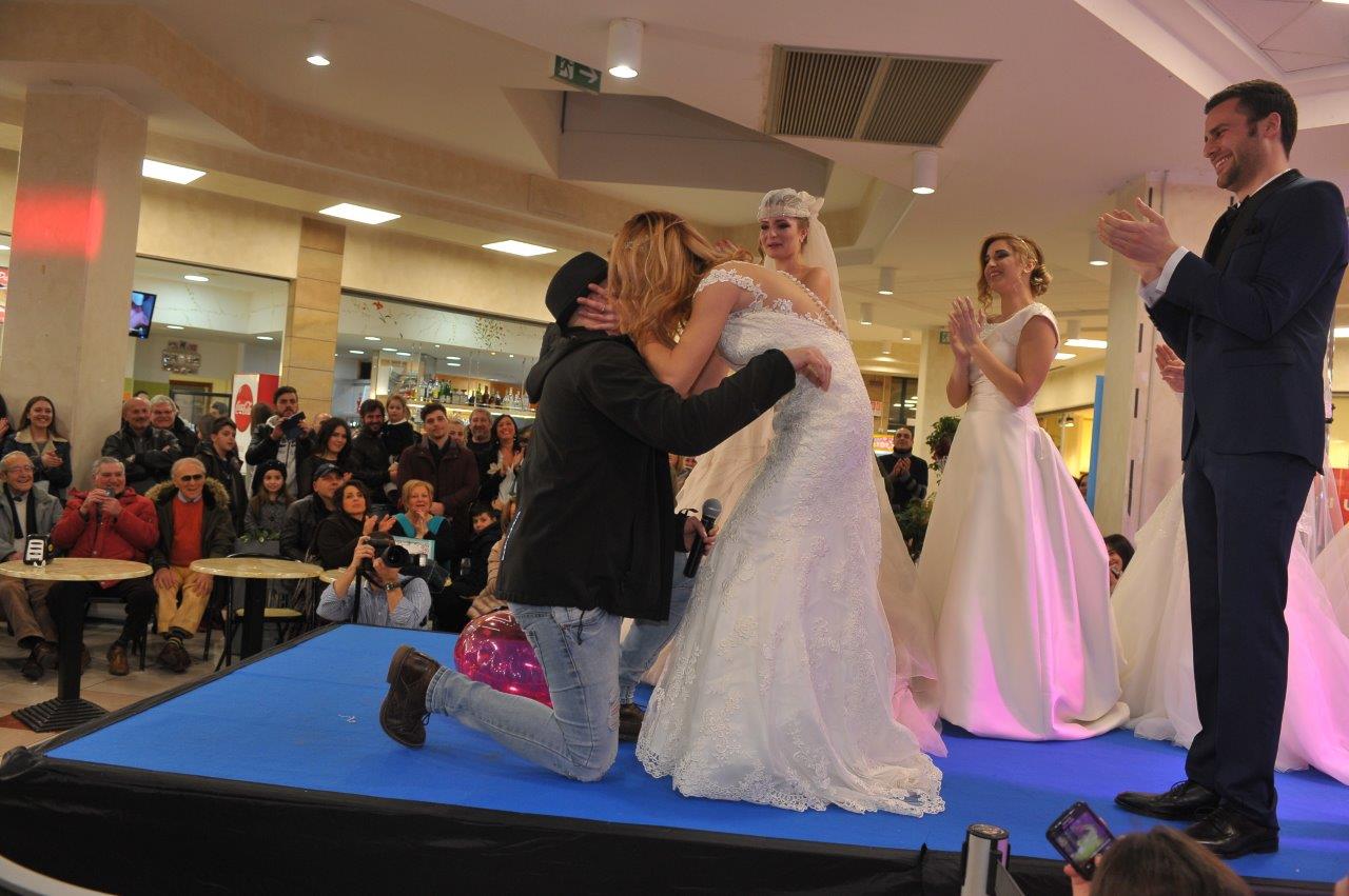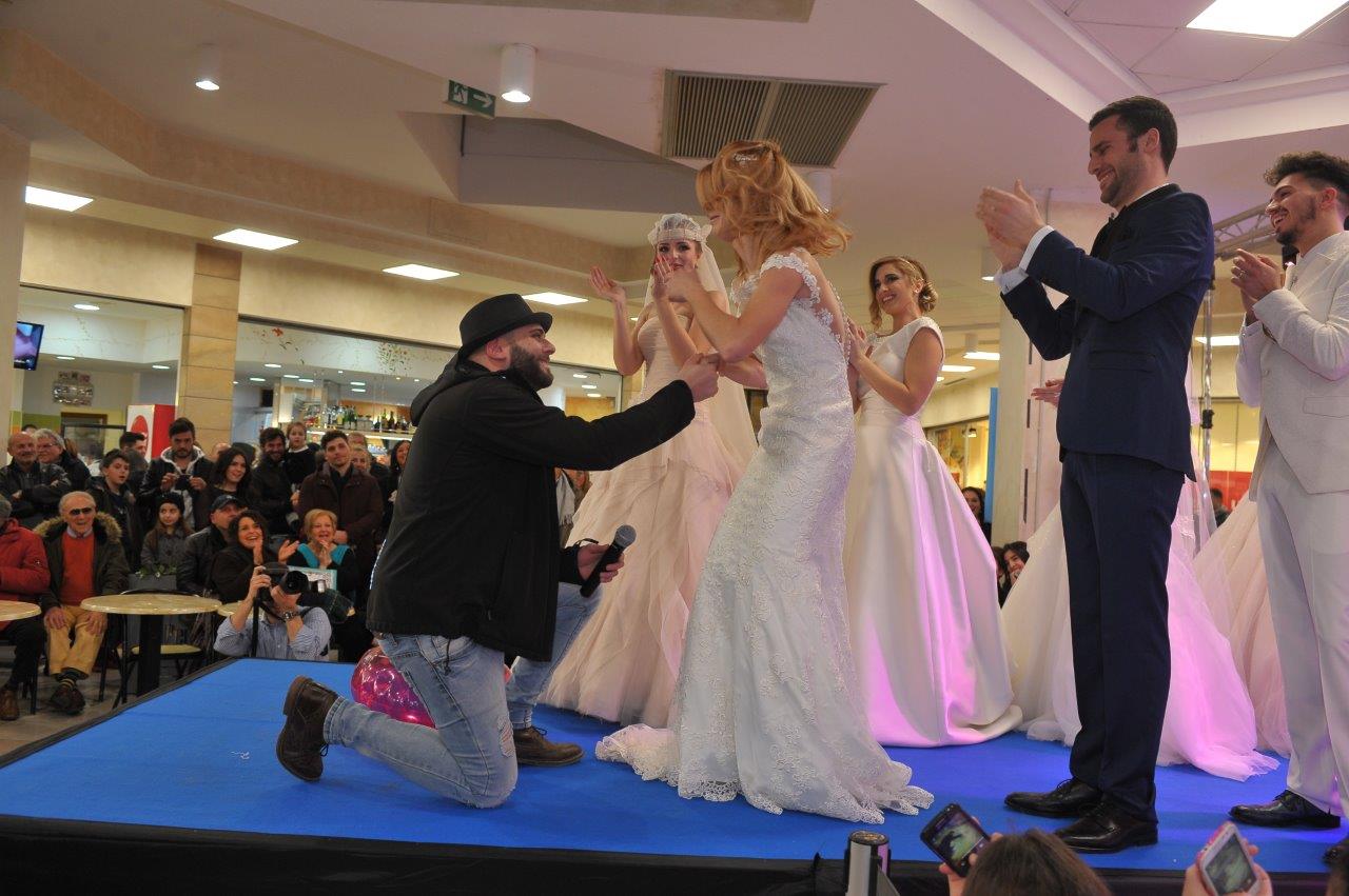 Il clou dell’evento sono state le sfilate degli abiti da sposa e da sposo in passerella centrale. Quest’anno come in una splendida favola moderna, l’ultima indossatrice ad uscire sul palco ha fatto a sorpresa la proposta di matrimonio al suo amato. Tamara è uscita in passerella imbracciando un grande cuore rosso, la sua falcata sicura ed emozionata, al ritmo leggero di una musica romantica, l’ha condotta all’estremità del palco, di fronte al pubblico nel quale c’era il suo compagno. Guardandolo negli occhi, Tamara ha girato tremante il cuore rosso sul quale con un pennarello bianco aveva scritto:”Davide sposami”. Con la sorpresa di tutti coloro che erano a guardare, Tamara ha alzato il cuore mostrando il messaggio al suo David. David Giampietri, titolare della palestra x-lab, è stato colto di sorpresa, ma ha reagito prontamente, come solo un uomo profondamente innamorato può fare. È andato verso la sua Tamara, è salito sul palco, e si è inginocchiato davanti a lei: “Ora voglio chiedertelo io: Tamara vuoi sposarmi?”. La ragazza, visibilmente commossa, come la maggior parte del pubblico in quel momento, si è protesa verso il suo amore e lo ha baciato, mentre le lacrime scendevano copiose sul suo volto. È stato un momento magico: il tempo come sospeso, il silenzio totale tra il pubblico incredulo, l’attenzione su questi due giovani che hanno avuto il coraggio di dichiararsi amore, pubblicamente e nonostante le difficoltà che viviamo i nostri giorni, e hanno deciso di fare un passo tanto importante. Tamara e Davide hanno già una bambina, ma ancora non si erano decisi a sposarsi, nonostante ci fosse la volontà di coronare il proprio amore. I due hanno una palestra, XLab, a San Giovanni Reatino, e le spese di avvio di questa attività lasciavano poco margine alla celebrazione del matrimonio.