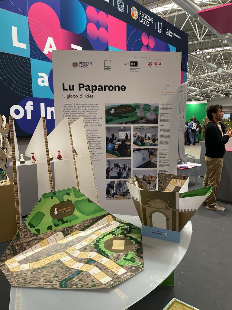 Gli studenti del Liceo Artistico dell’IIS “Elena Principessa di Napoli”, classi 4A, 4C e 5A, di Design dell’Arredamento e Grafica coordinati dai propri docenti, hanno partecipato al Concorso “Lazio Contemporaneo”, indetto dal Museo MAXXI di Roma in collaborazione con il FabLab di Rieti, con il tutoraggio dei docenti dell’ISIA Roma, per la progettazione di un souvenir che valorizzasse e pubblicizzasse il territorio reatino. Il Liceo Artistico ha quindi presentato un gioco da tavola innovativo: Lu Paparone!