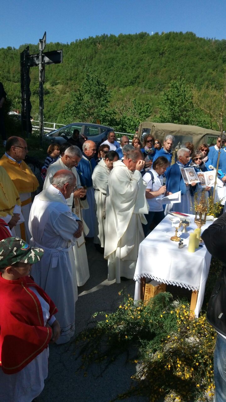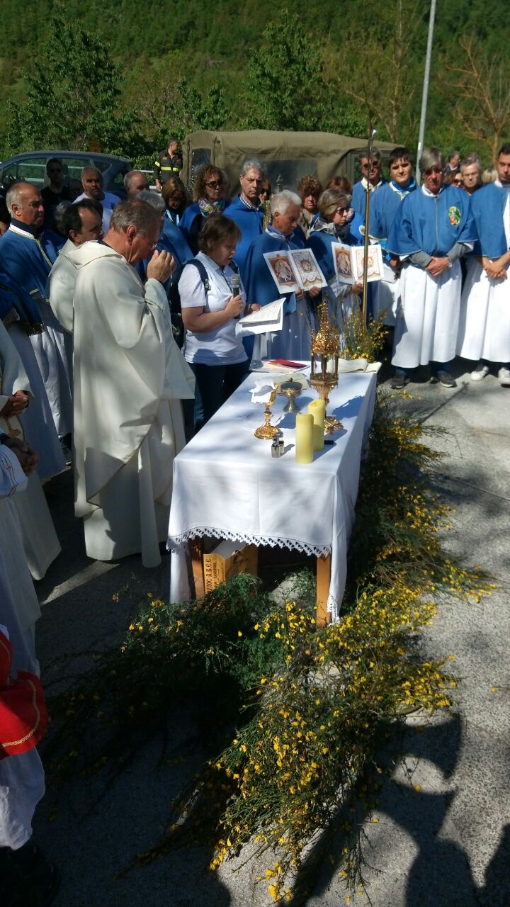 Un episodio ricordato dal parroco, don Savino D’Amelio, durante la prima delle celebrazione della giornata: «qui la Madonna si è rivelata in quel minimo segno, un cammeo di pochi centimetri» ha detto il sacerdote, che tanti ricorderanno commosso, a pochi giorni dal sisma, mentre esce dalla zona rossa accompagnato dai Vigili del Fuoco con in mano il piccolo oggetto appena rinvenuto. «È stata una grazia – disse in quell’occasione – come ritrovare la madre».