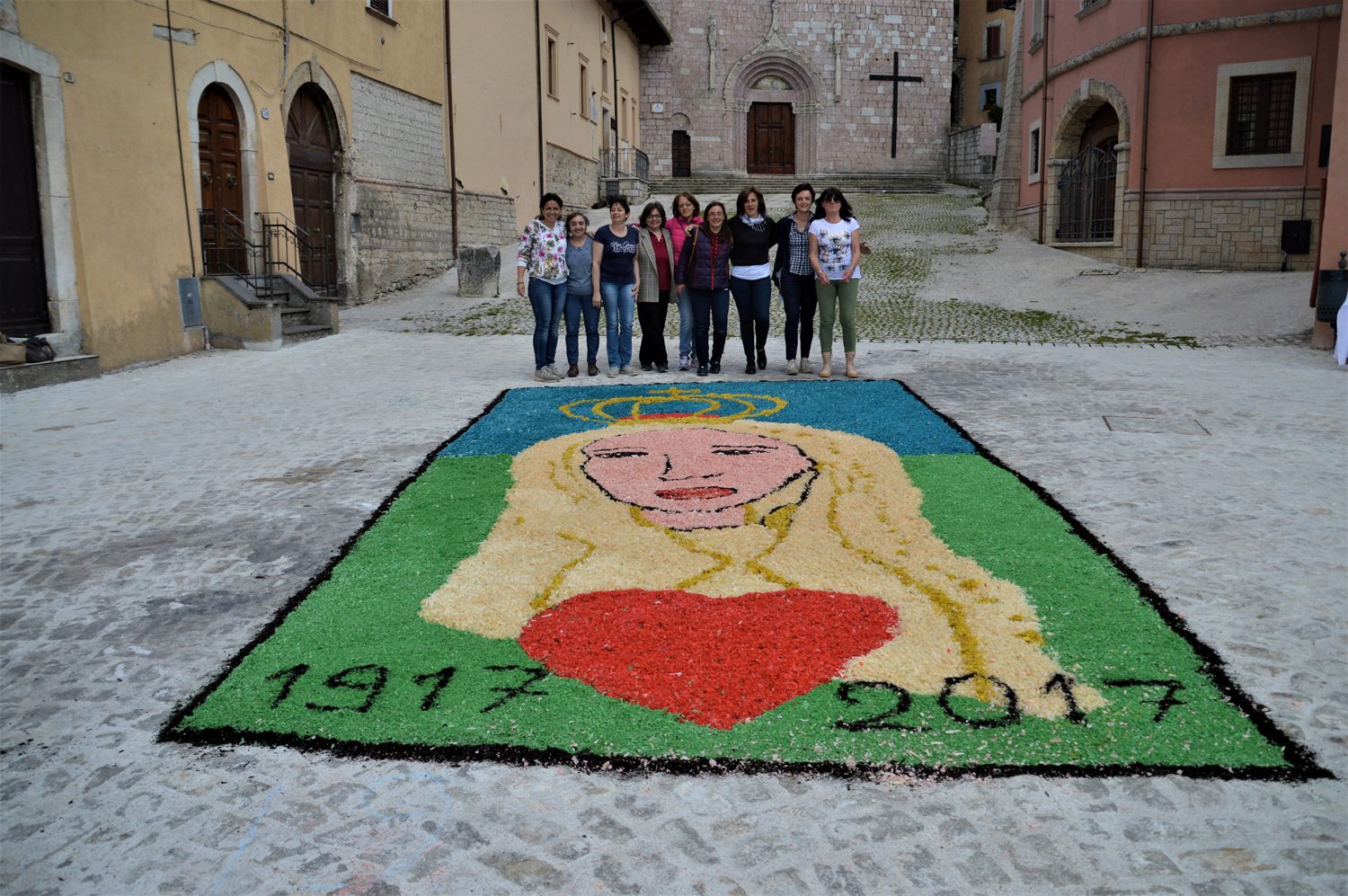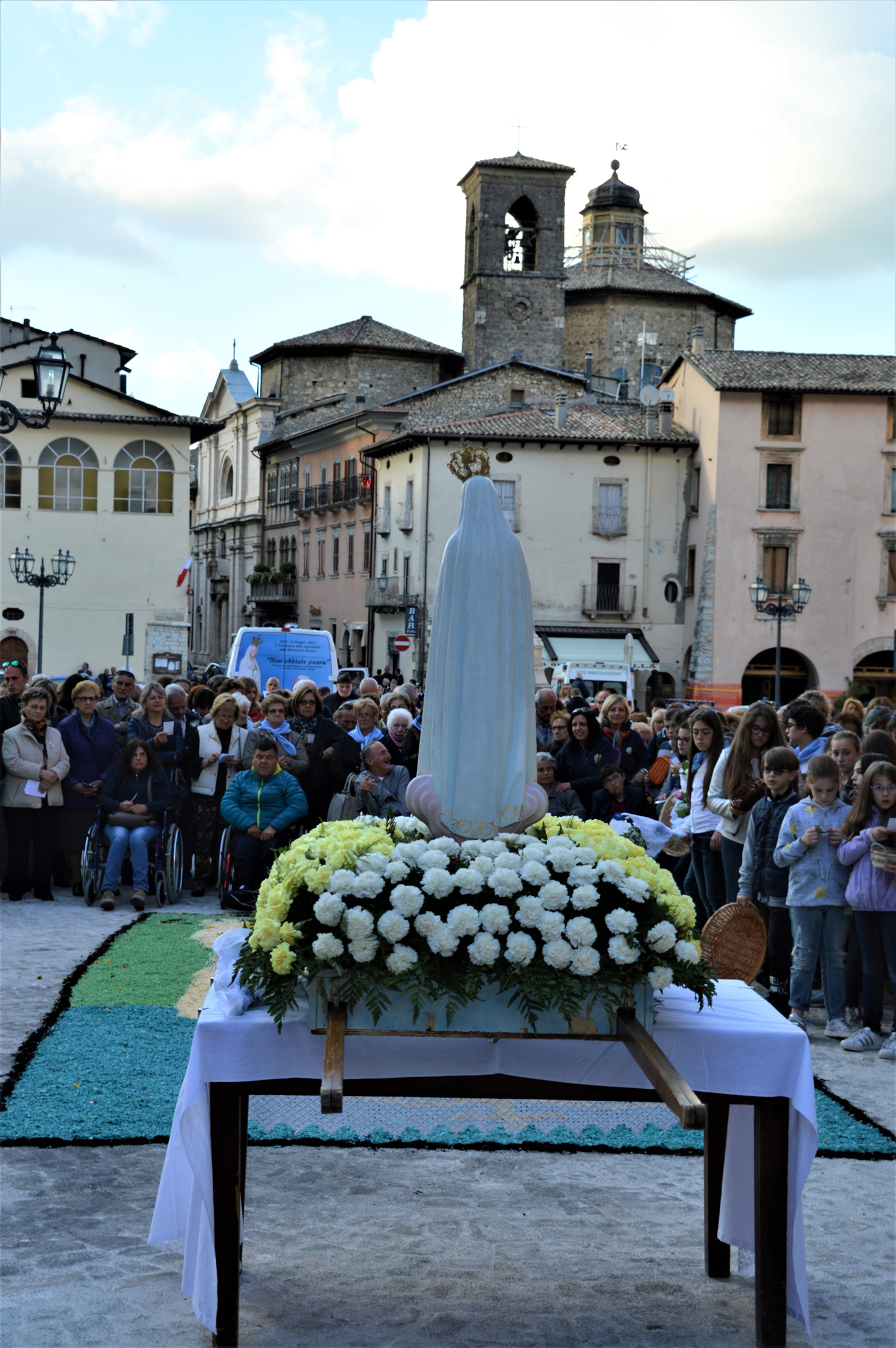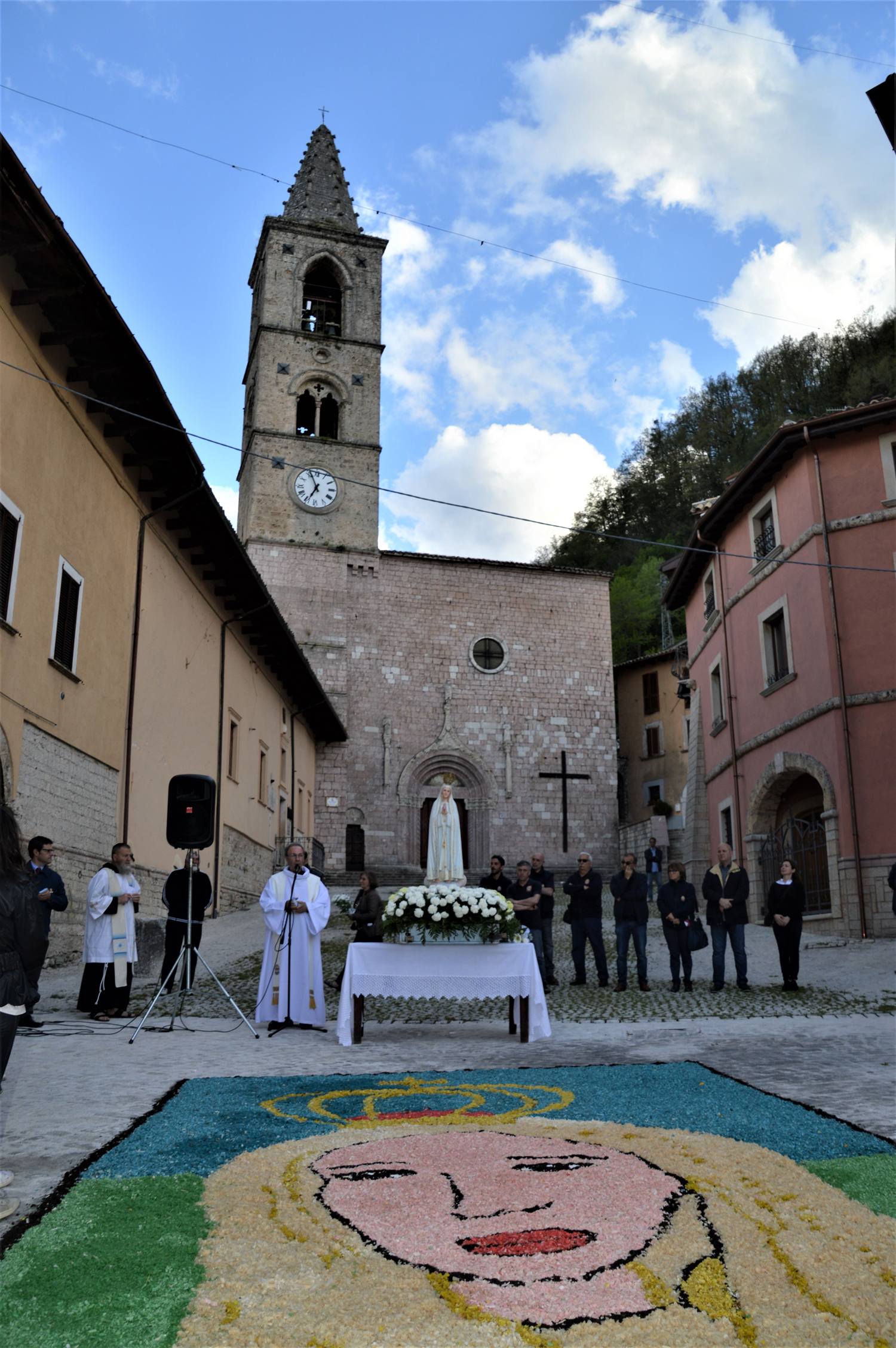 Il passaggio della statua della Madonna di Fatima a Leonessa è stato accompagnato da una grande partecipazione popolare. L’immagine sacra è stata portata in processione per le strade del paese e in suo onore è stata realizzata una grande infiorata, a sottolineare la ricorrenza del centenario delle apparizioni.
