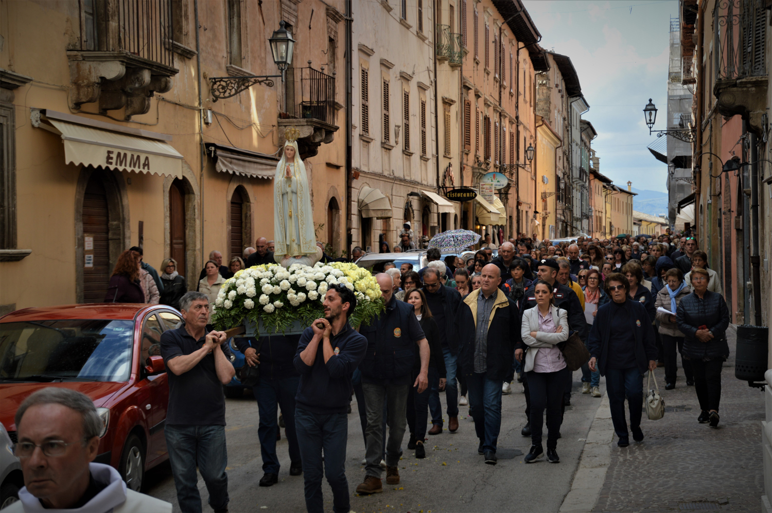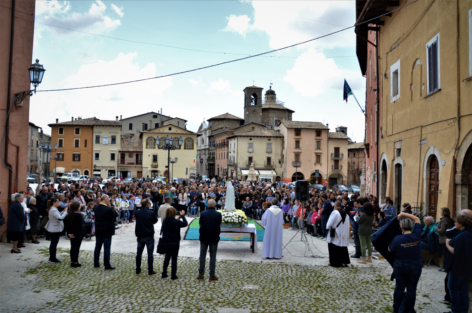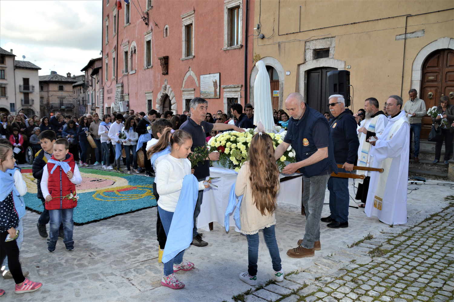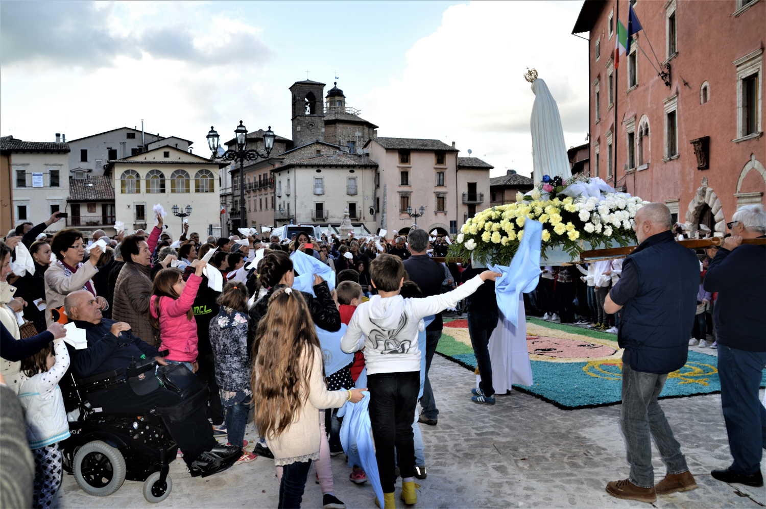 Il passaggio della statua della Madonna di Fatima a Leonessa è stato accompagnato da una grande partecipazione popolare. L’immagine sacra è stata portata in processione per le strade del paese e in suo onore è stata realizzata una grande infiorata, a sottolineare la ricorrenza del centenario delle apparizioni.