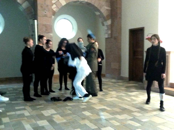 Veramente uno spettacolo che potrebbe essere tranquillamente esportato, tanto significative sono state coreografie e test, e l’interpretazione dei giovanissimi attori in “erba”; non sono mancate citazione di Primo Levi, e di lettere dai lager. Stupendo il breve duetto tra un giovane ebreo con, al di là della rete di recinzione, e un suo coetaneo che giocava a pallone.
