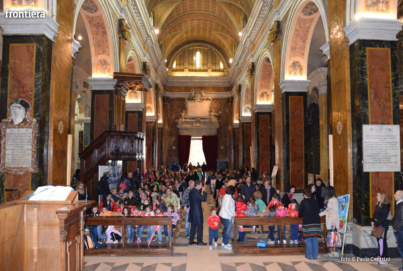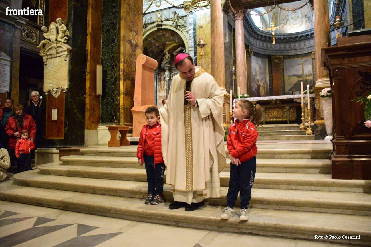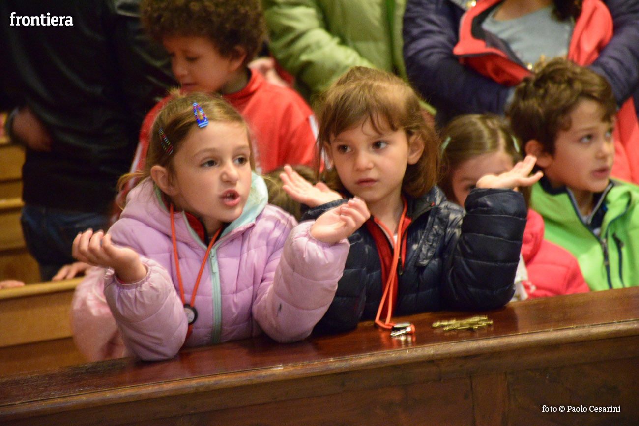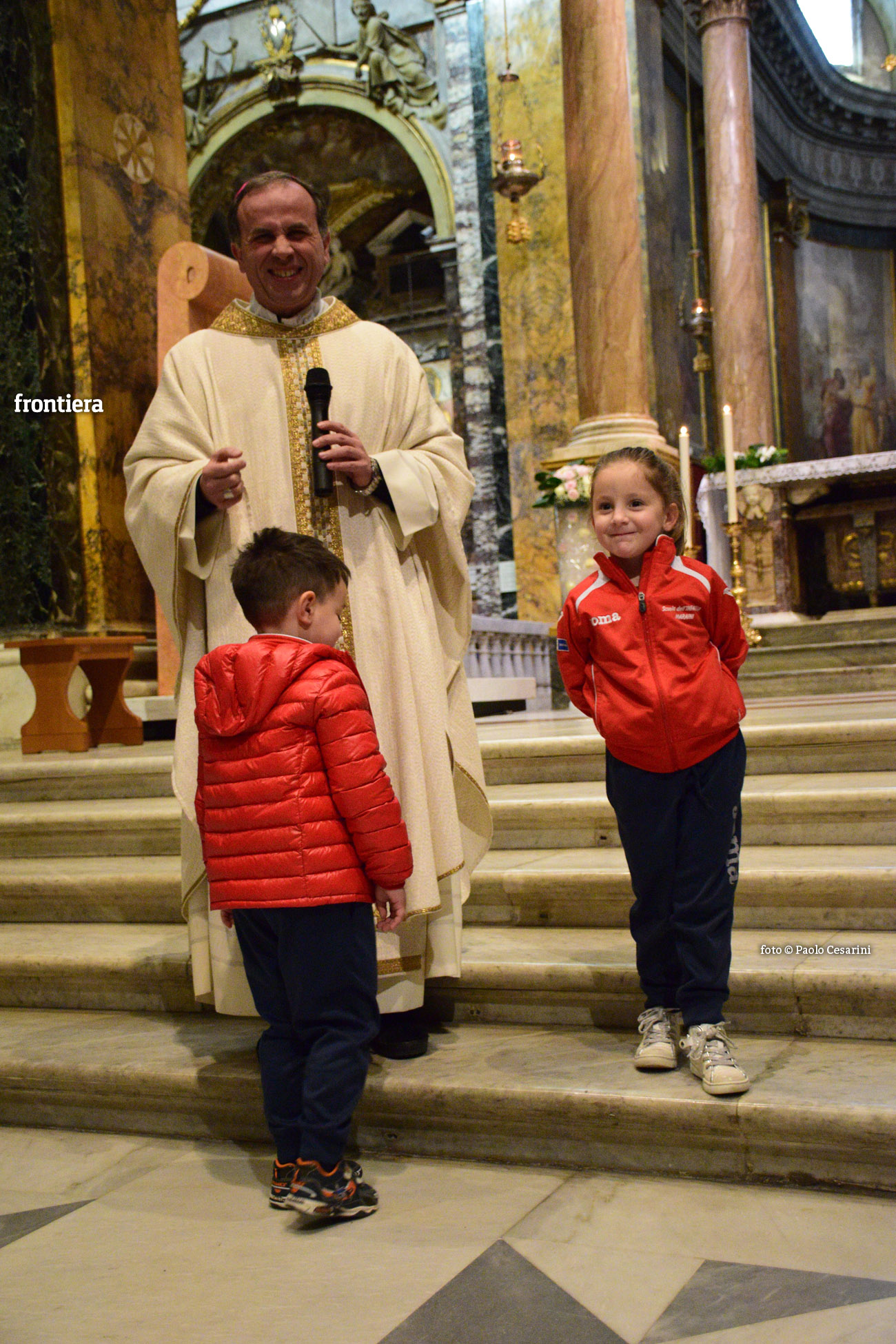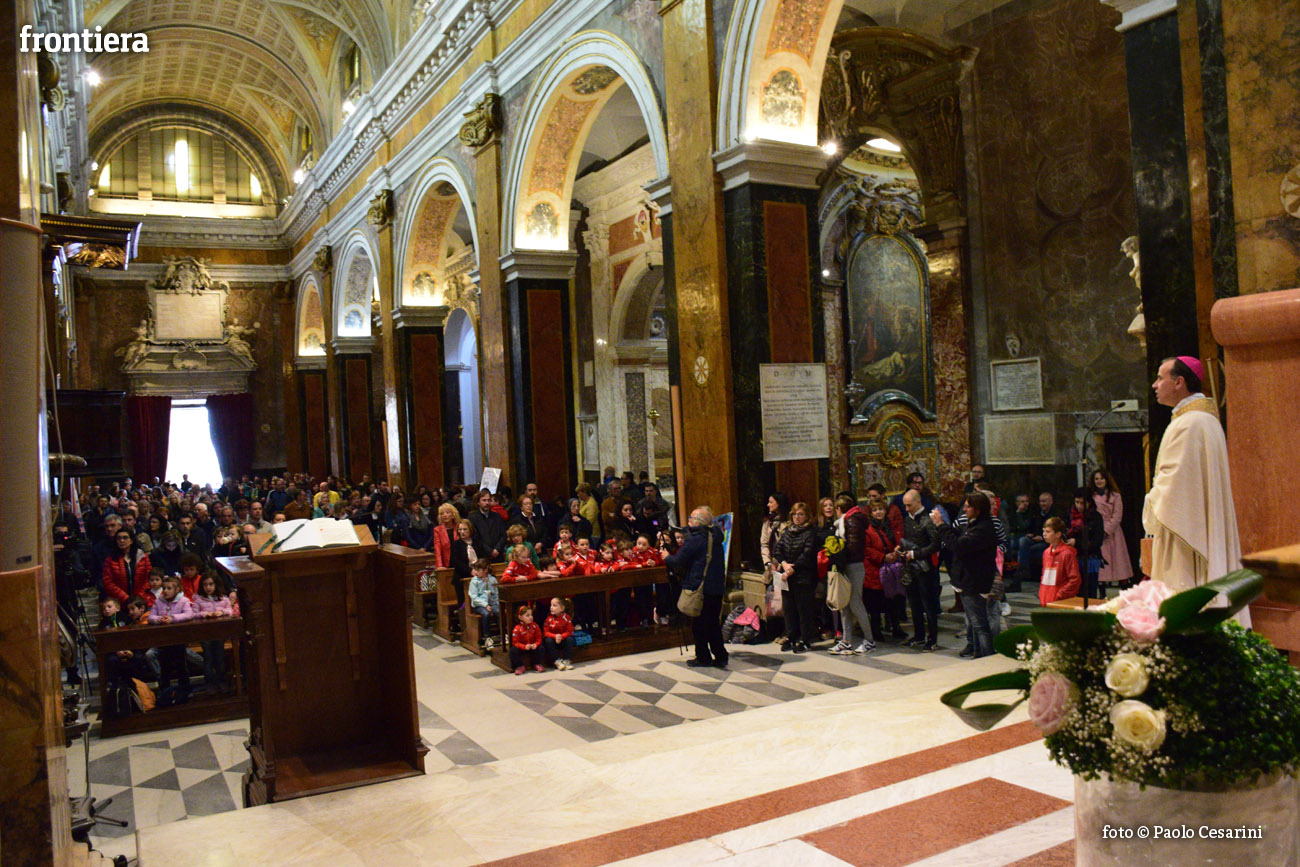 Tutti, prima di mettersi “in marcia” alla volta del camposcuola “Raul Guidobaldi”, hanno partecipato alla Messa celebrata in cattedrale dal vescovo Domenico. E sulla scorta del Vangelo, mons. Pompili ha invitato i bambini e le famiglie a comprendere «che amare è la scuola di vita più esigente. Ma anche la più necessaria, anzi la scuola più importante».