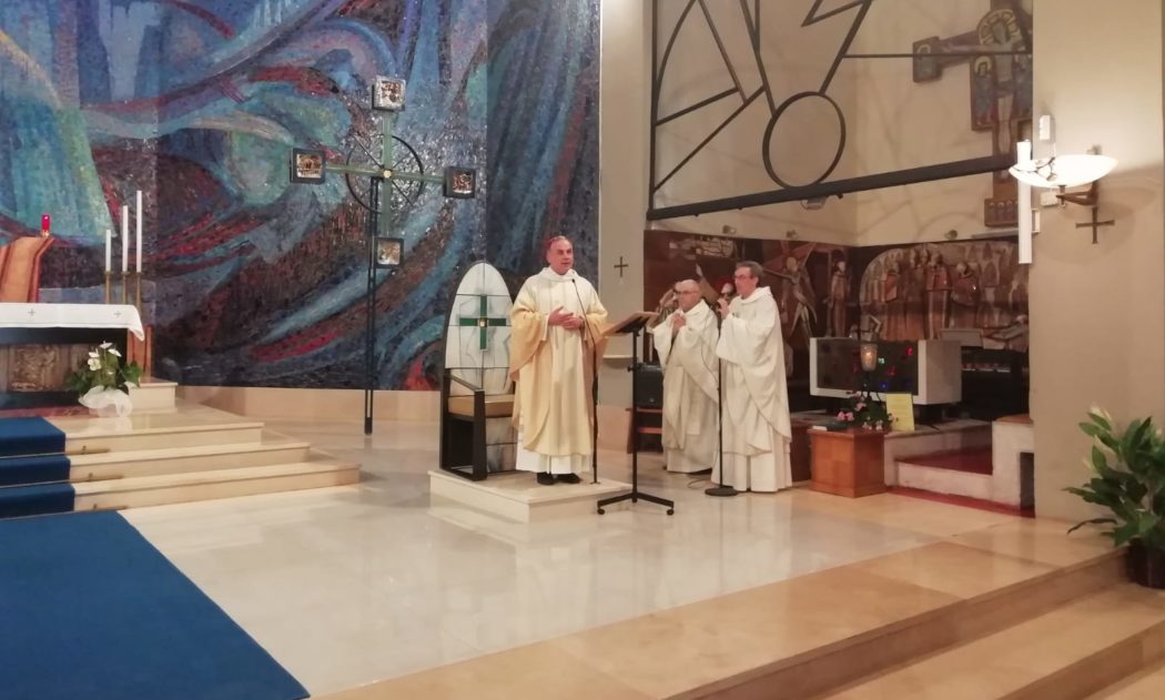 Nella parrocchia di Sant’Anastasia nel paese dell’alto Cicolano, dove è stato accolto da don Nazzareno Nicolai e dalla comunità cristiana dei fedeli del posto e dai tanti oriundi tornati per le ferie al luogo natio, e al templum pacis terminillese, dove ha presieduto l’Eucaristia introdotta dal saluto del parroco padre Mariano Pappalardo e concelebrata dal vice parroco don Luca Scolari e dal padre conventuale liscianese Luigi Faraglia (ora membro della comunità francescana interobbedenziale di Rieti e per tanti anni parroco al Terminillo), don Domenico è voluto partire, nell’omelia, dalle parole di san Paolo sulla morte come “ultimo nemico” che sarà annientato dal Cristo vittorioso, annientamento di cui l’assunzione in cielo della Vergine in anima e corpo è segno anticipatore.