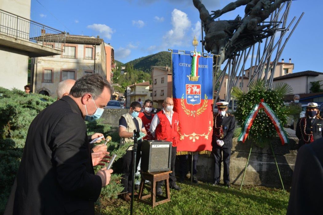 Uno squillo di tromba prima della lettura dei nomi dei caduti, poi la deposizione della corona, portata da due agenti della Polizia Municipale. Ha avuto inizio così la commemorazione del bombardamento del Borgo, di fronte al monumento realizzato dallo scultore reatino Dino Morsani.Ha avuto inizio così la commemorazione del bombardamento del Borgo