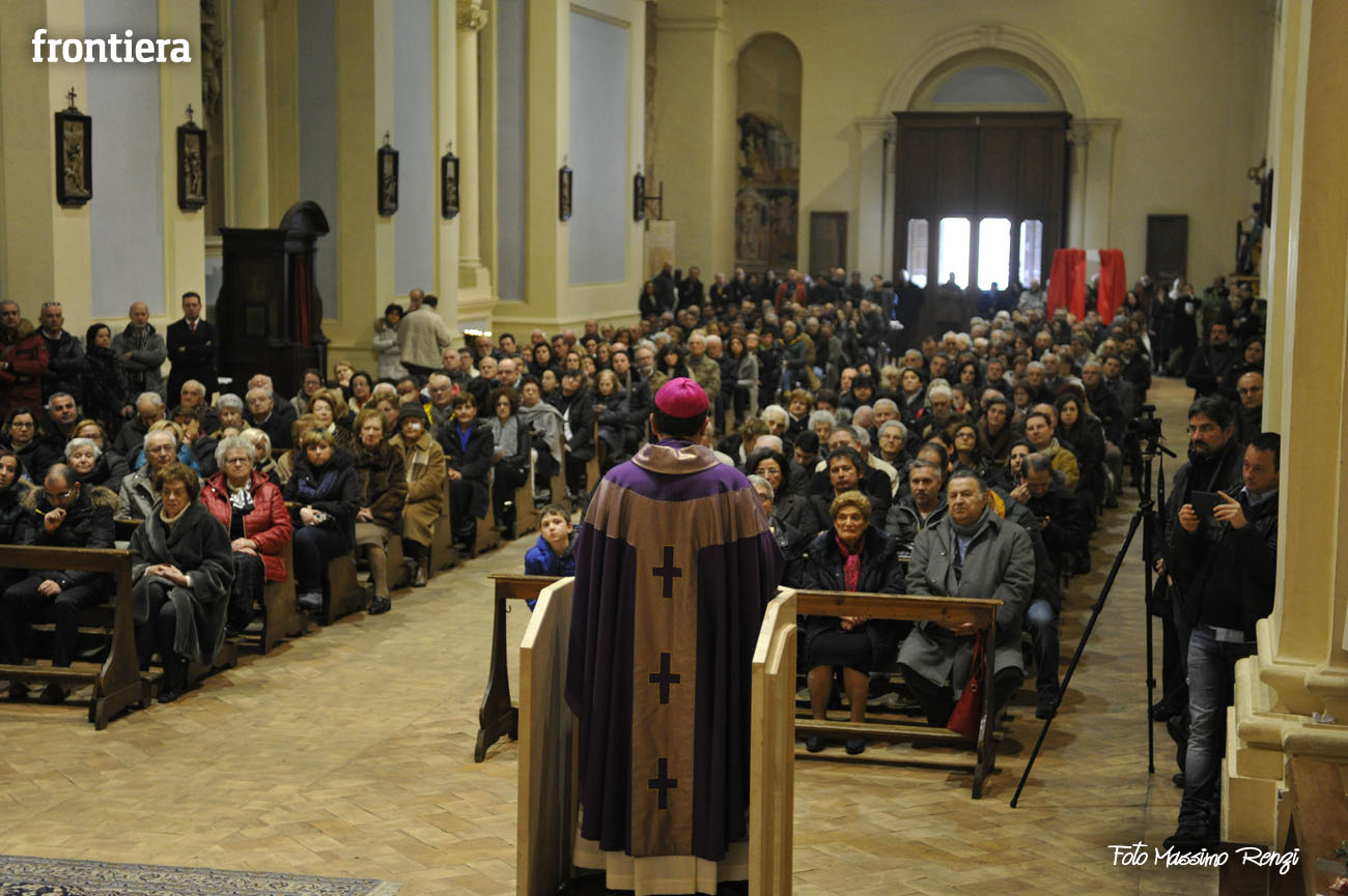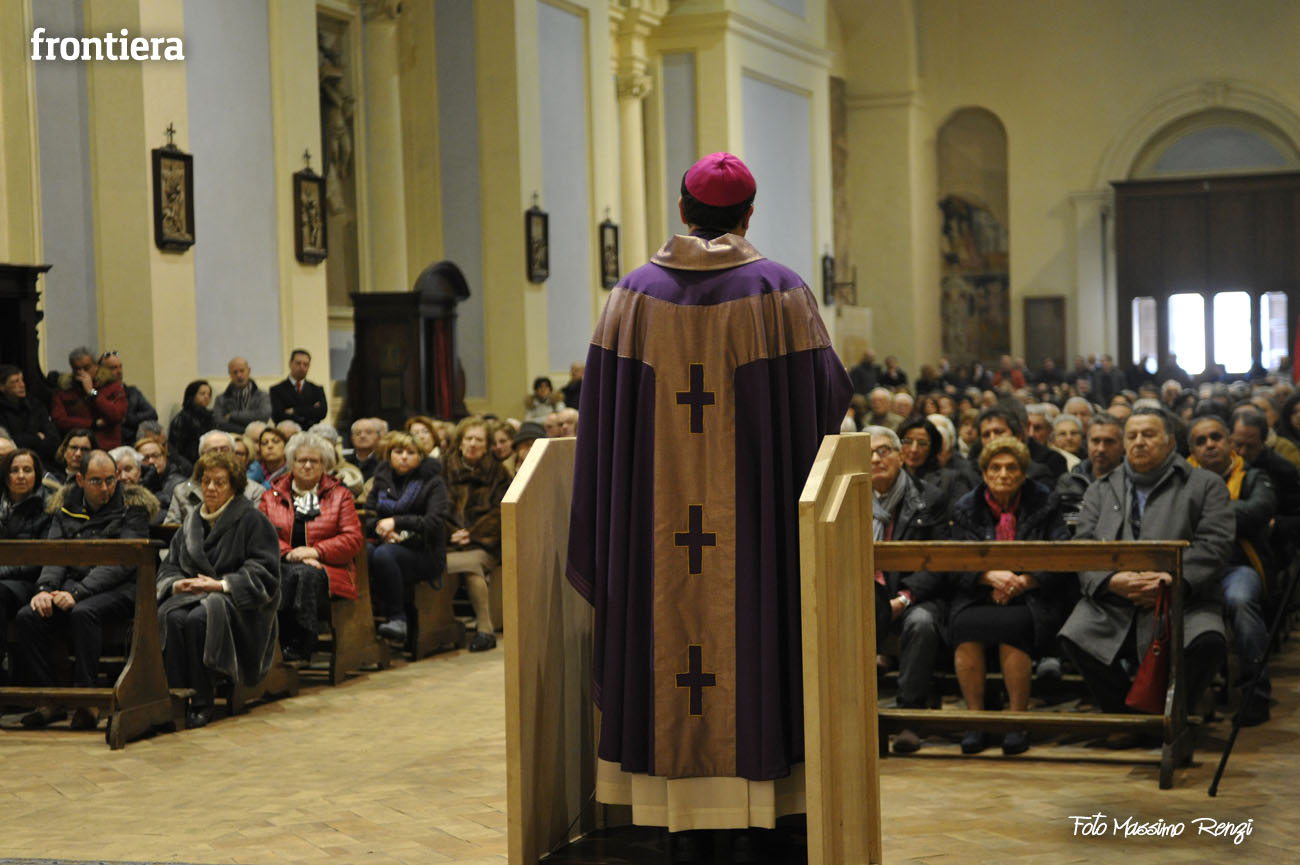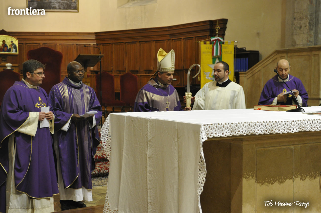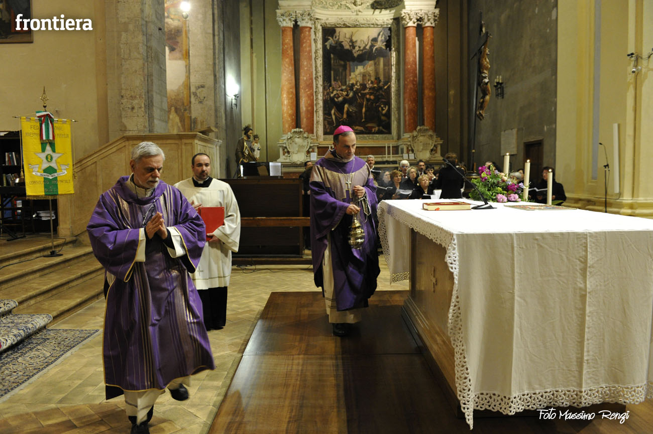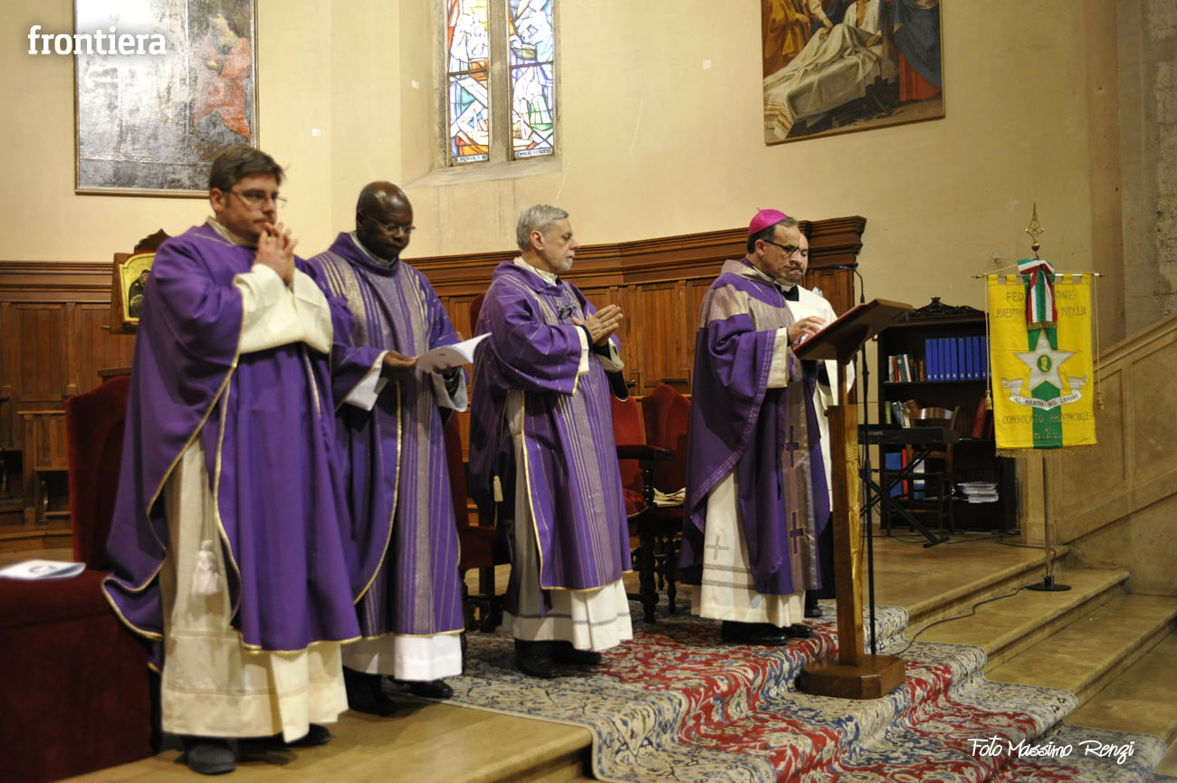 Nell’introdurre la celebrazione don Valerio ha poi ringraziato il vescovo Domenico «per la sollecitudine pastorale verso il variegato mondo del lavoro» ricordando che lo volle presente il giorno della sua ordinazione episcopale in Cattedrale. Un’attenzione mai venuta meno in questi primi mesi di episcopato, durante i quali è emersa «la dura realtà di chi ha perso il lavoro, dei giovani che non riescono a trovarlo, degli imprenditori, commercianti ed artigiani che sono oppressi dalla burocrazia e dalle tasse, di chi è nella disperazione: come il mugnaio di San Filippo di Contigliano si tolse la vita gettandosi nel lago».
