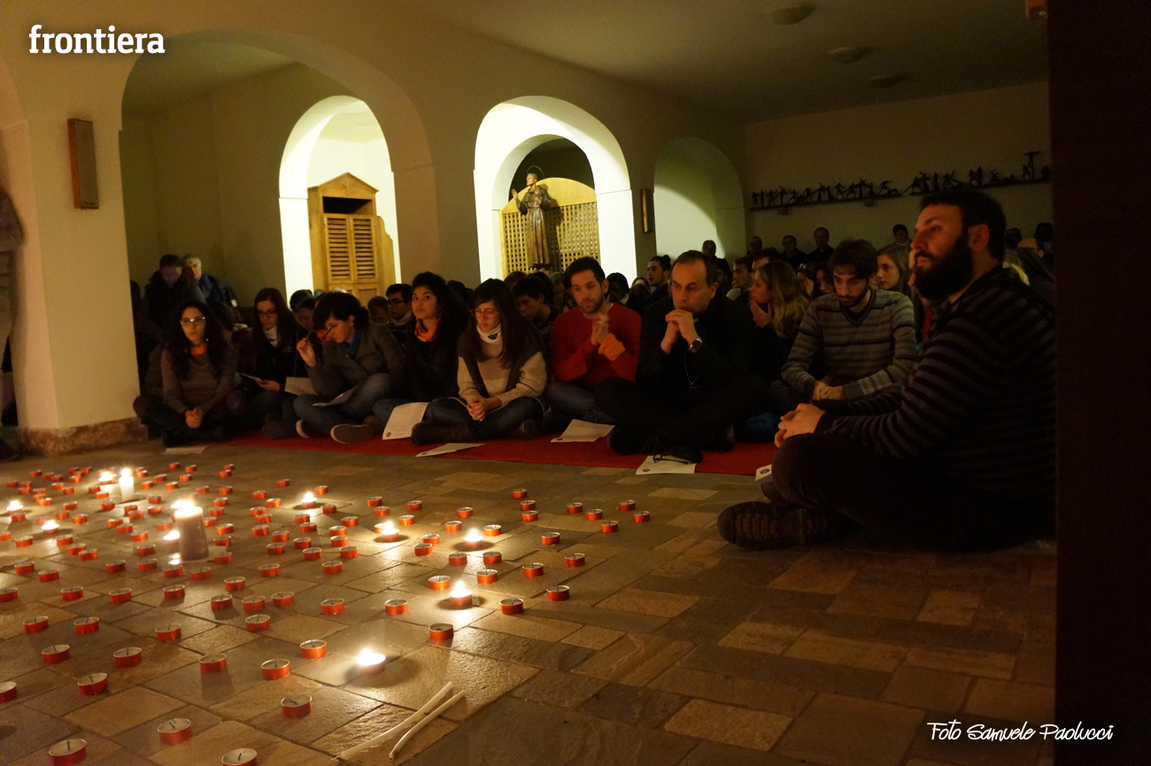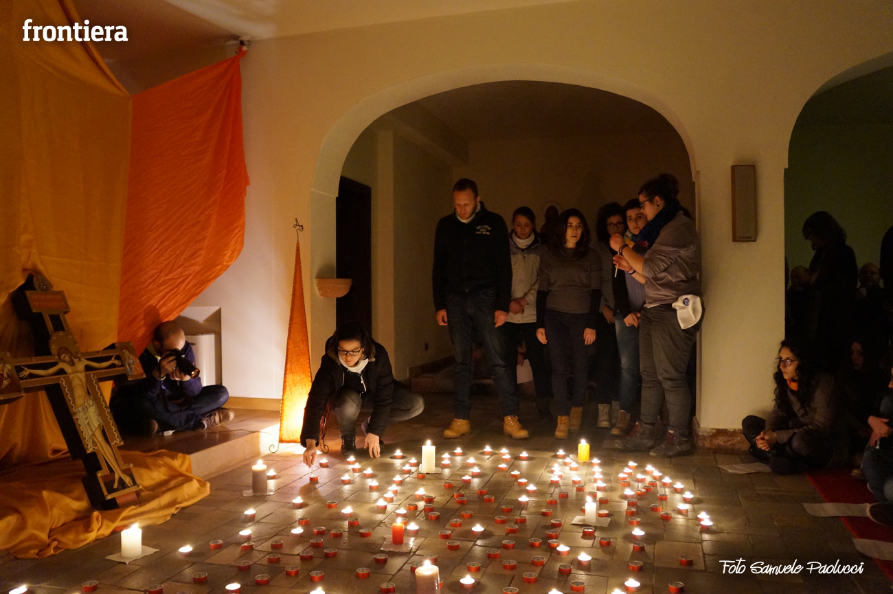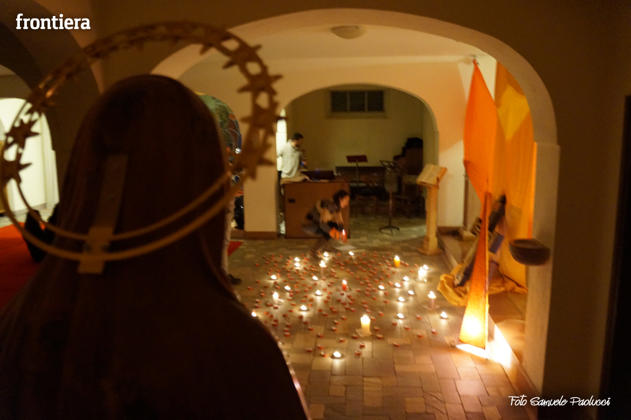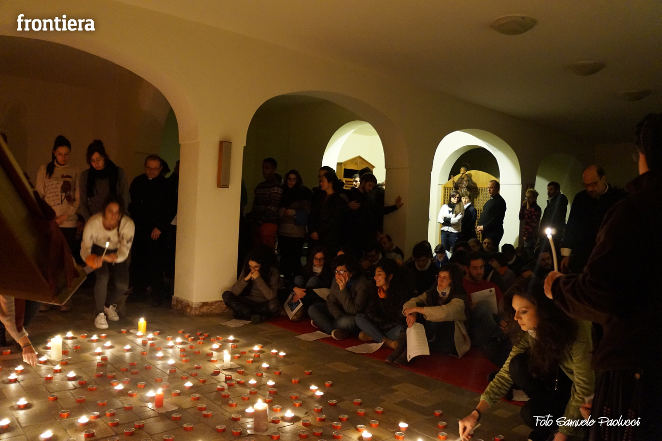 Uno dei momenti di maggior intensità musicale è stata la preghiera Taizè, con ben 5 chitarre, il flauto e il coro. È stata il culmine del coinvolgimento spirituale. La cappella stracolma, immersa nel buio, ha intonato i canoni con grande partecipazione. Il pavimento stellato di candeline, accese poco alla volta dai presenti, invitava a riprendere qualche riflessione interiore rimandata magari troppo a lungo. Davanti soltanto una rappresentazione del crocifisso e una Bibbia aperta. Alla fine le profonde parole del vescovo Domenico hanno avuto tutto il tempo di decantare nel animo dei presenti in un lungo silenzio.