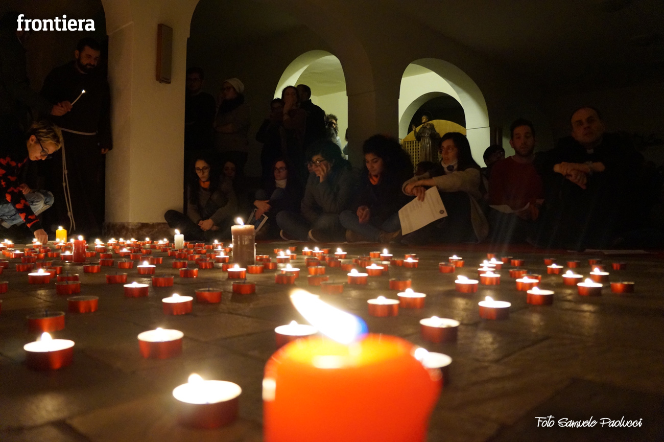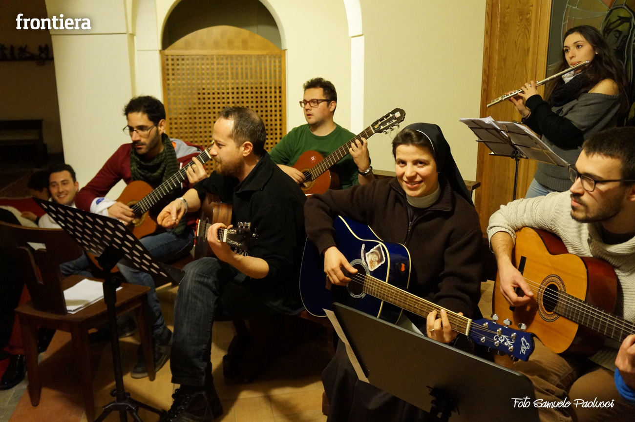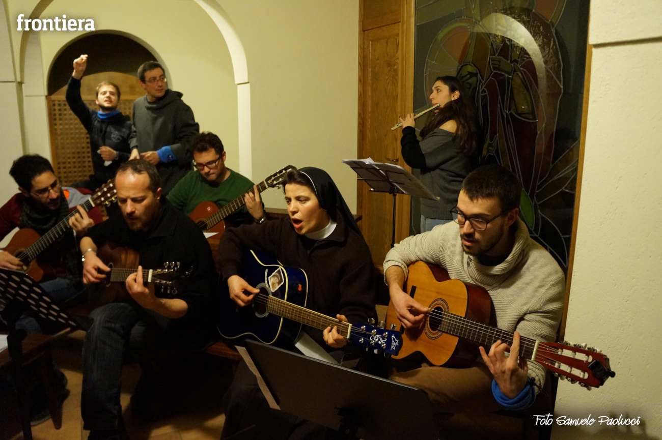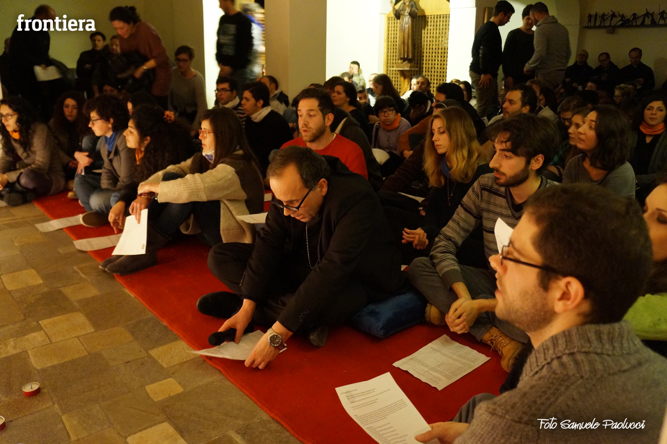 Uno dei momenti di maggior intensità musicale è stata la preghiera Taizè, con ben 5 chitarre, il flauto e il coro. È stata il culmine del coinvolgimento spirituale. La cappella stracolma, immersa nel buio, ha intonato i canoni con grande partecipazione. Il pavimento stellato di candeline, accese poco alla volta dai presenti, invitava a riprendere qualche riflessione interiore rimandata magari troppo a lungo. Davanti soltanto una rappresentazione del crocifisso e una Bibbia aperta. Alla fine le profonde parole del vescovo Domenico hanno avuto tutto il tempo di decantare nel animo dei presenti in un lungo silenzio.