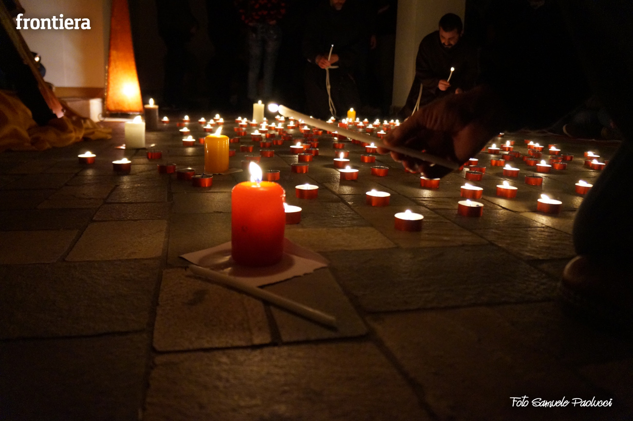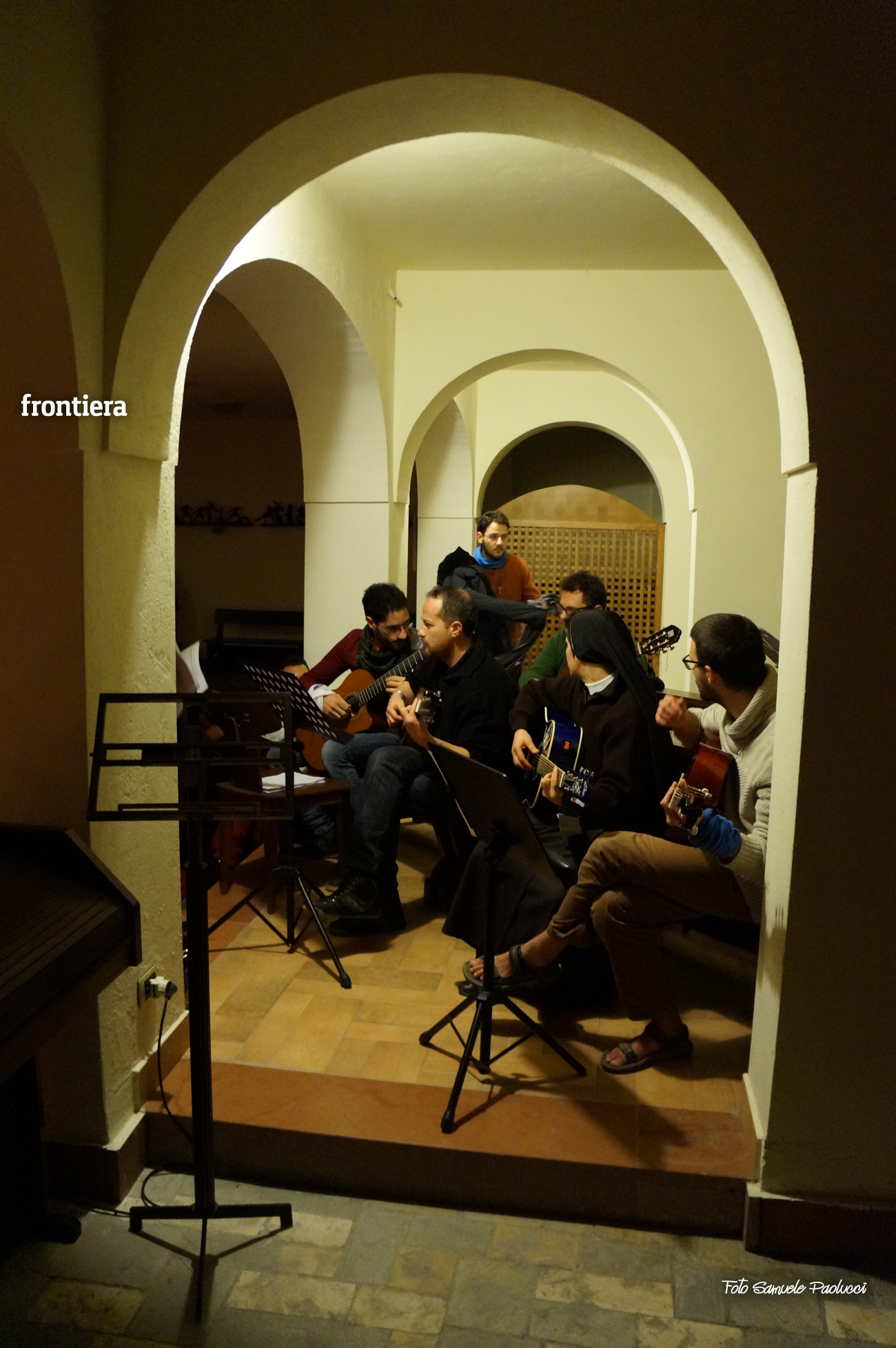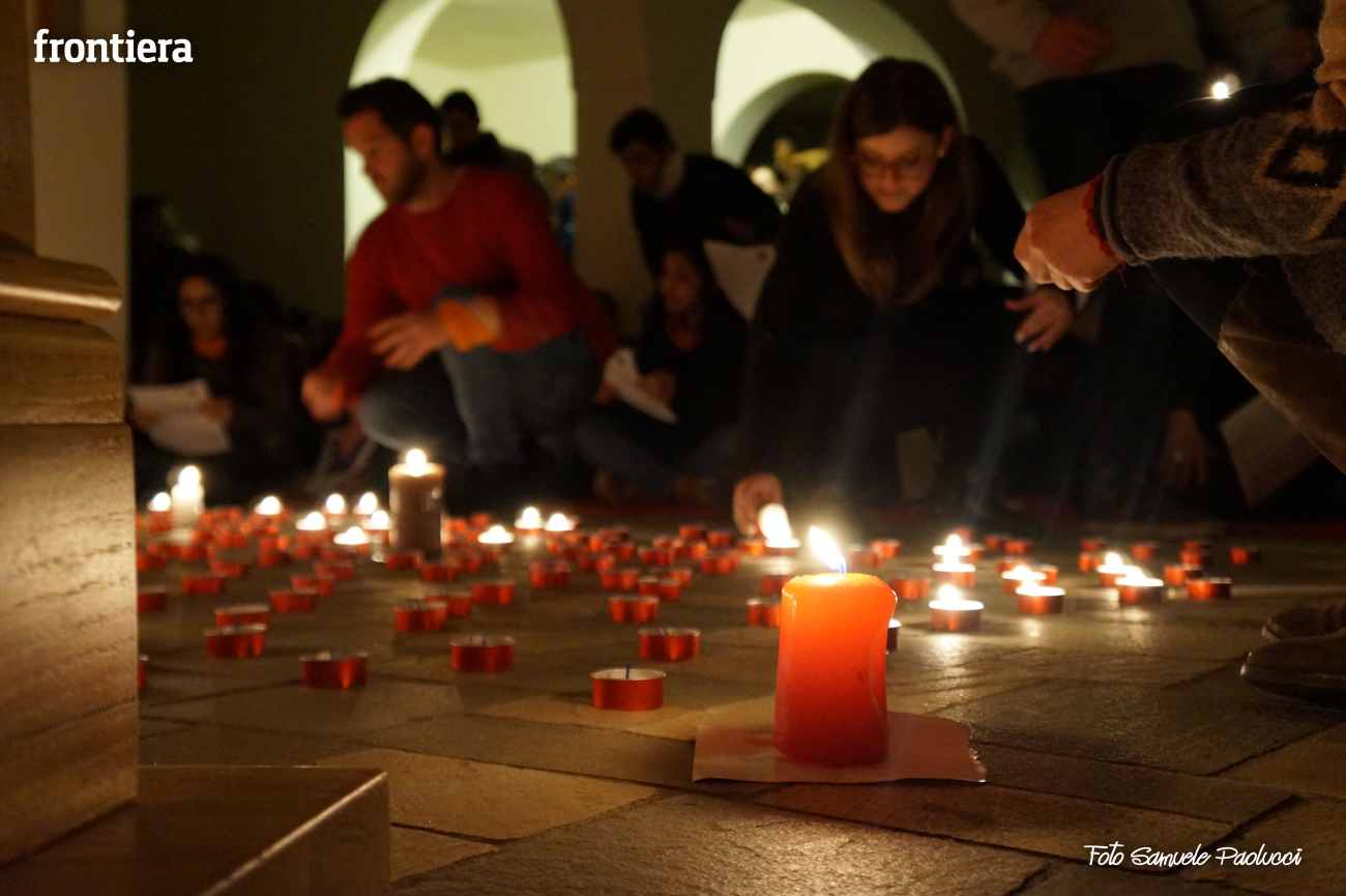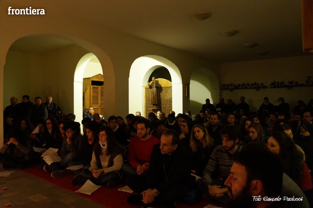 Uno dei momenti di maggior intensità musicale è stata la preghiera Taizè, con ben 5 chitarre, il flauto e il coro. È stata il culmine del coinvolgimento spirituale. La cappella stracolma, immersa nel buio, ha intonato i canoni con grande partecipazione. Il pavimento stellato di candeline, accese poco alla volta dai presenti, invitava a riprendere qualche riflessione interiore rimandata magari troppo a lungo. Davanti soltanto una rappresentazione del crocifisso e una Bibbia aperta. Alla fine le profonde parole del vescovo Domenico hanno avuto tutto il tempo di decantare nel animo dei presenti in un lungo silenzio.