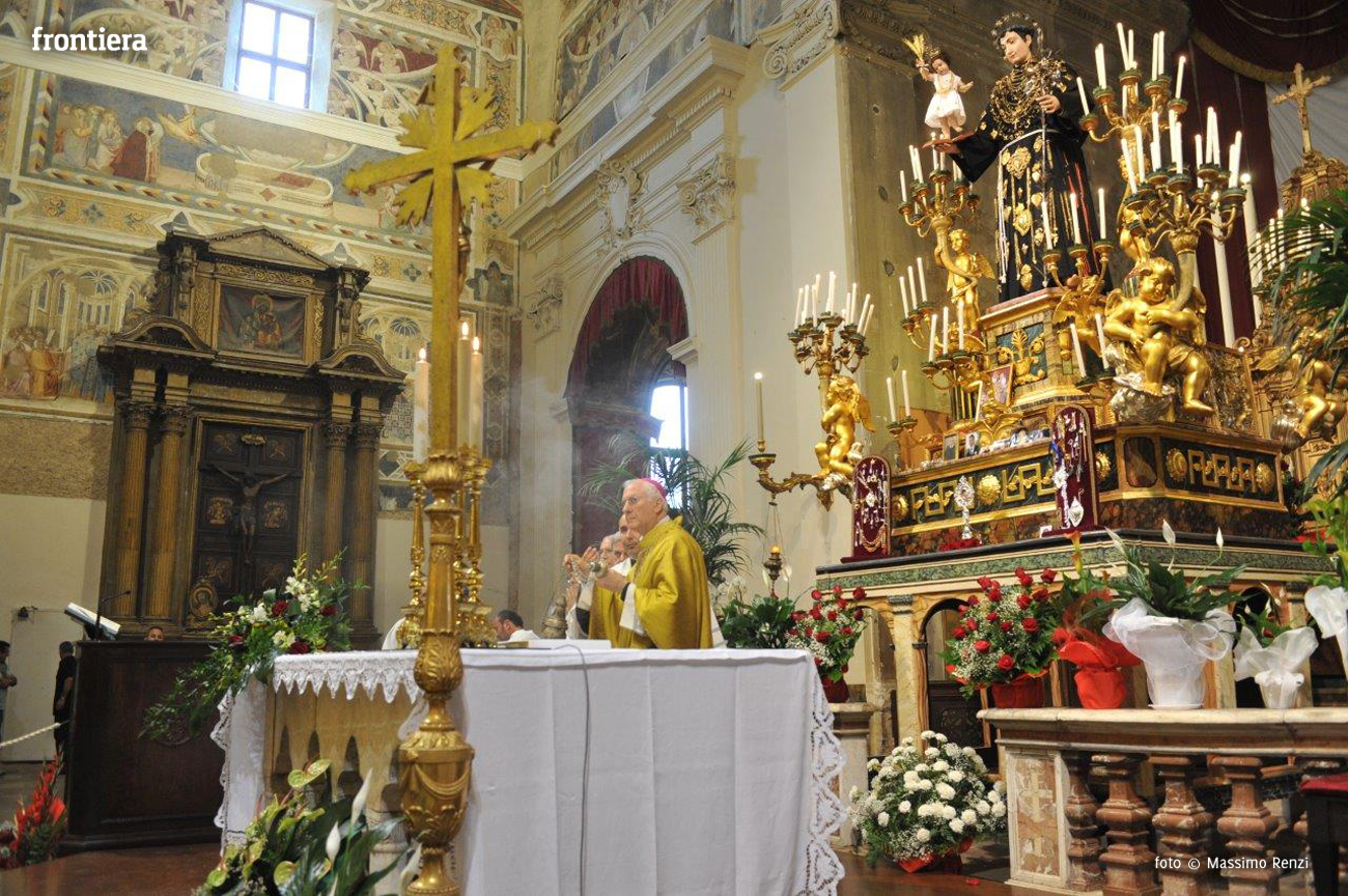 Nella serata del 24 giugno, a celebrare l’eucaristia nella chiesa di San Francesco, in occasione dei festeggiamenti antoniani, è stato mons. Piero Marini, arcivescovo titolare di Martirano, Presidente del Pontificio Comitato per i Congressi Eucaristici Internazionali e Presidente Commissione speciale per la liturgia presso la Congregazione per le Chiese Orientali. La liturgia è stata animata dalla Corale “San Michele Arcangelo” di Poggio Fidoni (Ri) diretta dal M° Luisella D’Angeli.