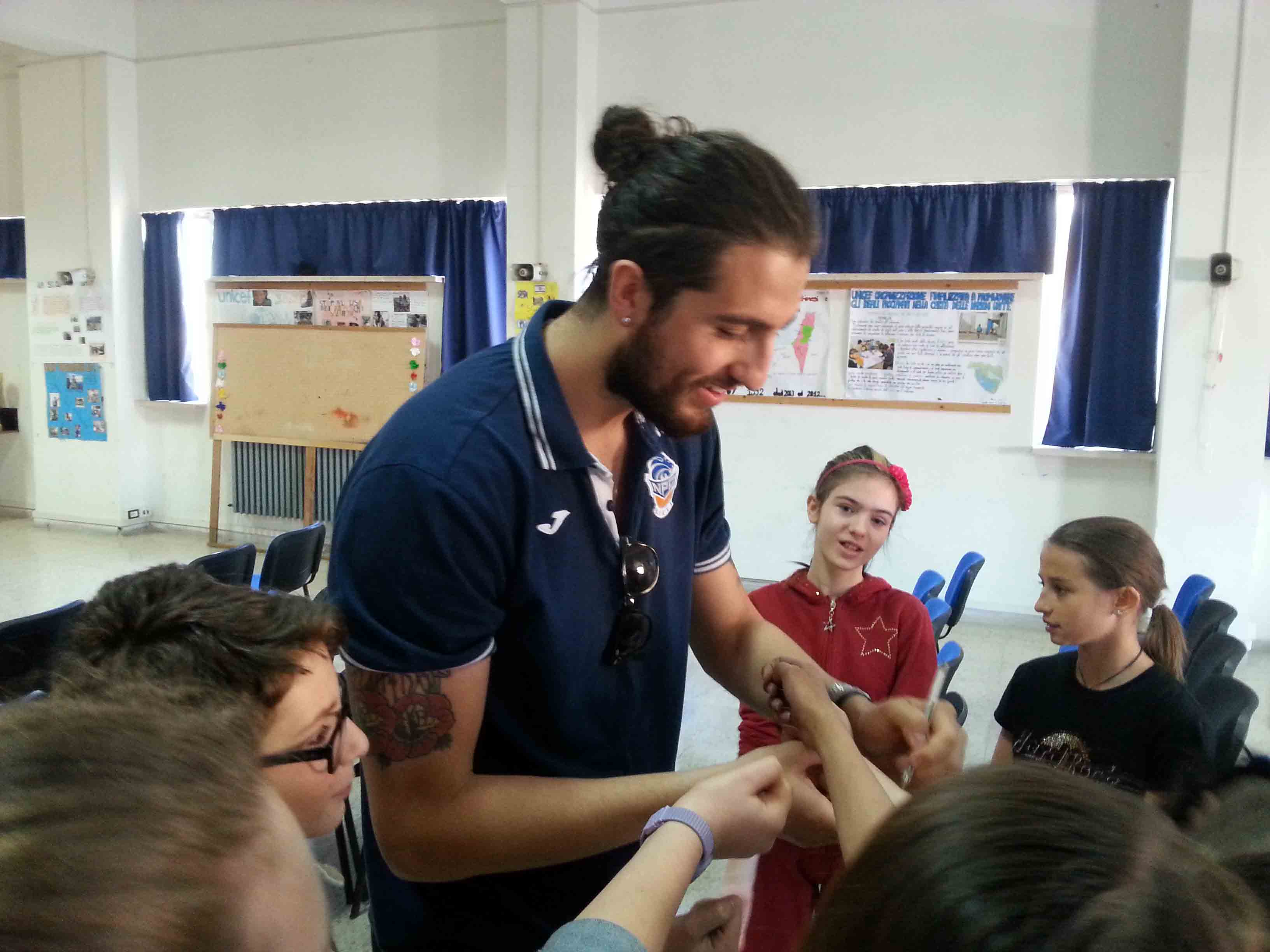 Al termine della presentazione, gli alunni, tra i quali anche alcuni tesserati del settore giovanile NPC, hanno posto numerose domande ai loro campioni, curiosi di comprendere il loro stile di vita e lo svolgimento della quotidianità di uno sportivo. Non sono mancate richieste più tecniche quali: in cosa consiste la loro preparazione fisica, che regime alimentare seguono, quanti allenamenti svolgono a settimana ed alcune curiosità: qual è la squadra che temono di più?