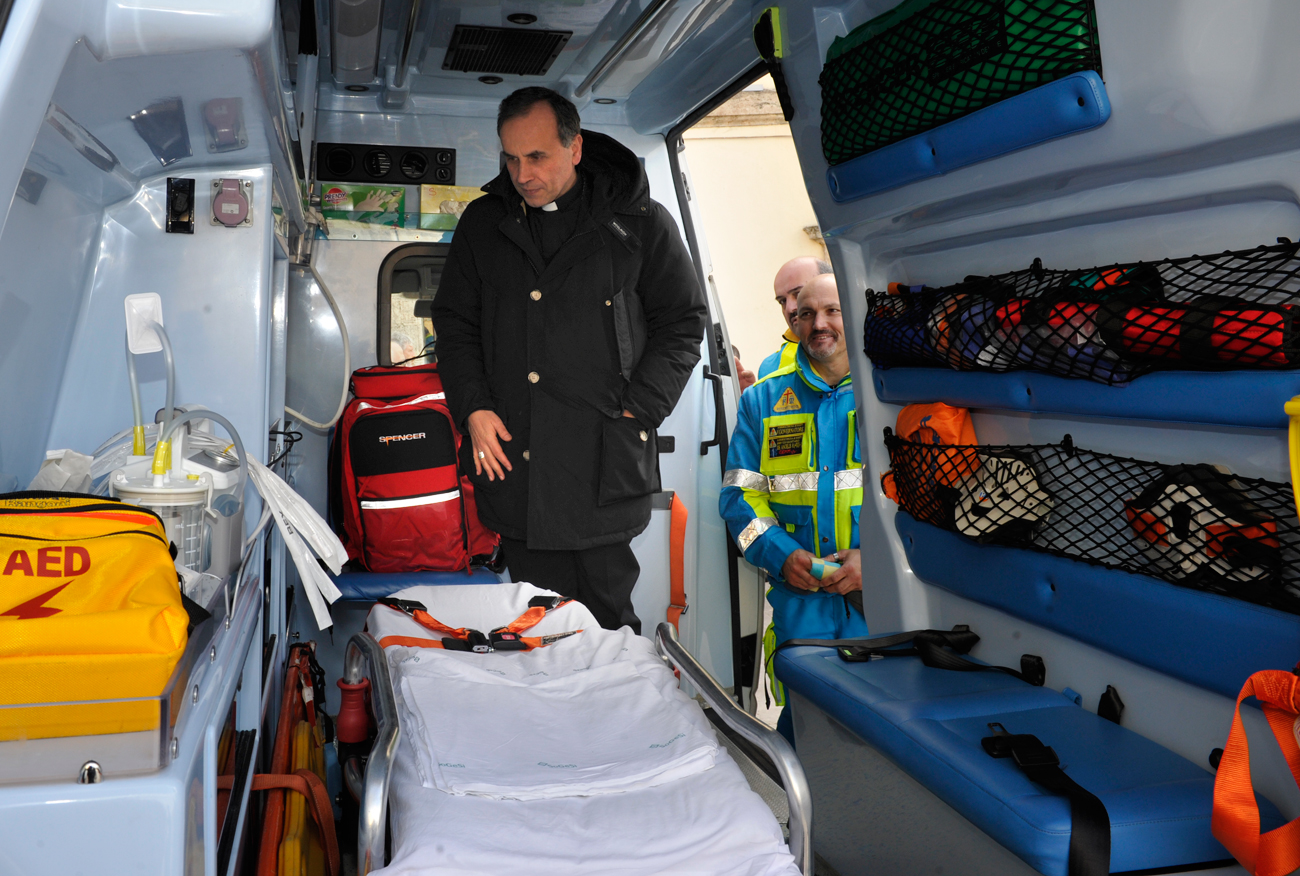 «Io – ha aggiunto mons. Pompili – vorrei che oggi, mentre benediciamo questo mezzo di soccorso, in qualche modo rinnoviamo questo impegno a che l’amore sia per noi la strada da percorrere. Perché se Dio è amore, solo chi sta nell’amore finisce per incontrarlo».