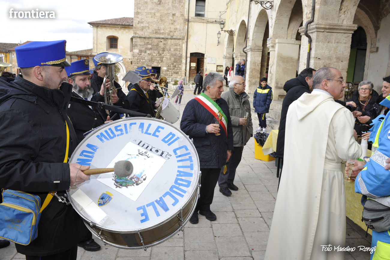 Grande partecipazione da parte della popolazione di Cittaducale, che ha partecipato in gran numero sia come singoli cittadini, che come gruppi e associazioni alla Messa e alla breve cerimonia all’esterno della chiesa. La bella mattinata si è conclusa con un brindisi in piazza ed un piccolo rinfresco offerto alla popolazione.