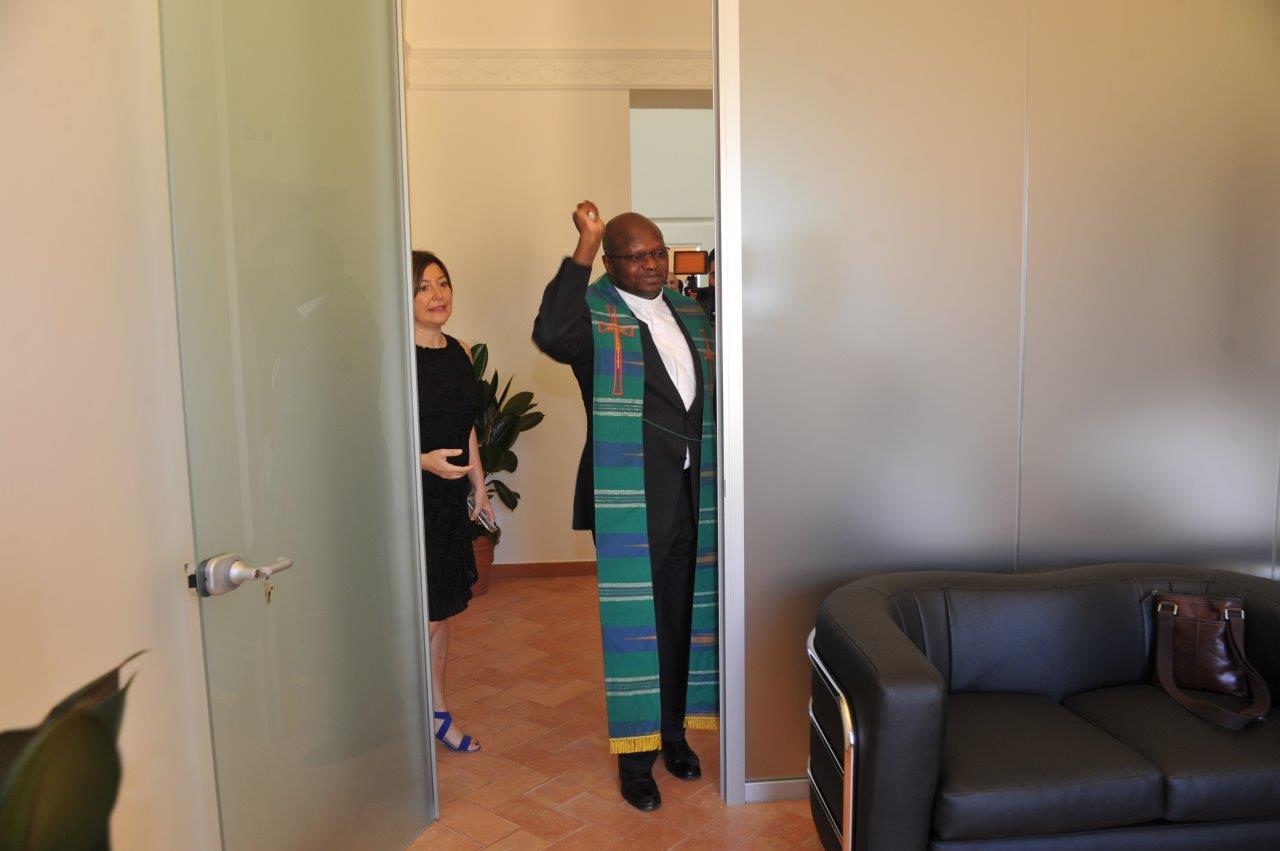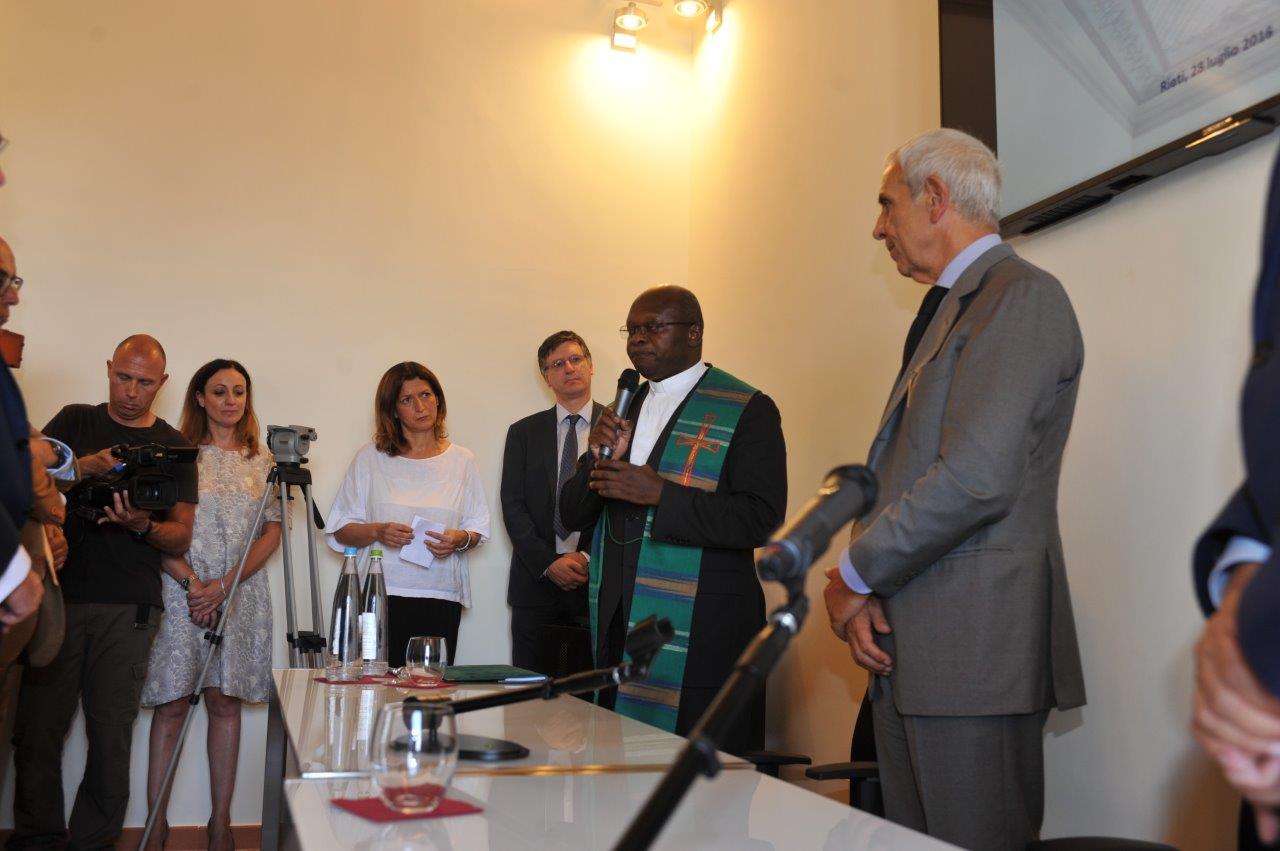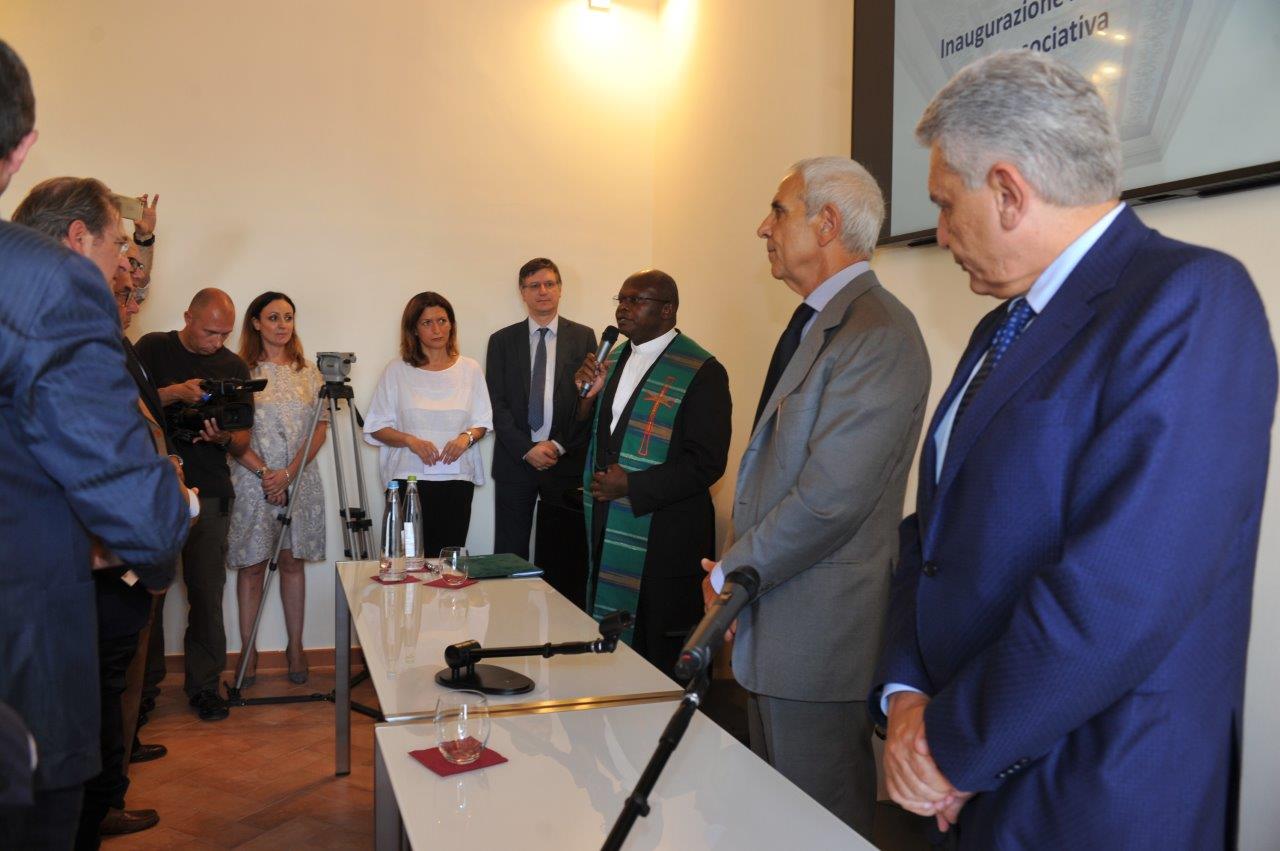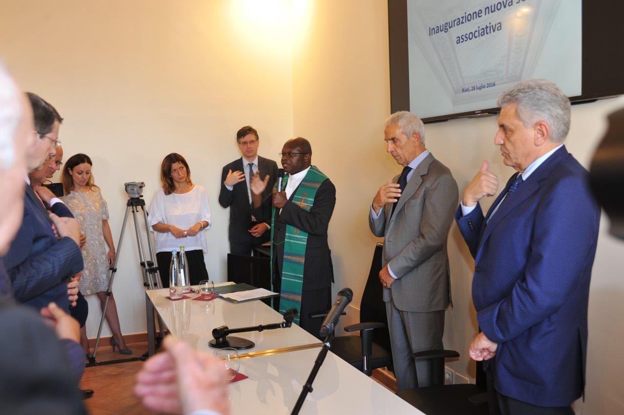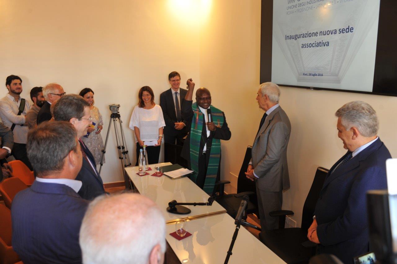 È stato don Valerio Shango a benedire la nuova sede di Unindustria Rieti in via Garibaldi, sistemata in alcuni locali del Comune. A presenziare all’inaugurazione, insieme ai rappresentanti dell’imprenditoria reatina, i vertici regionali dell’associazione di categoria, guidati dal presidente di Unindustria Lazio Maurizio Stirpe, a fine mandato come il presidente degli industriali reatini Gianfranco Castelli.