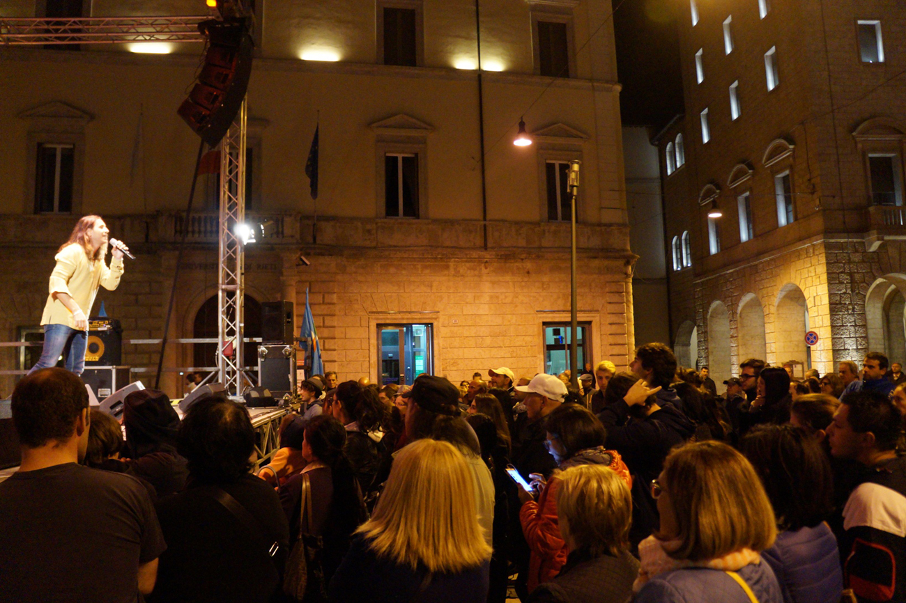 Terminata la seconda edizione dell’evento “Incontriamoci”, promosso dalla Uil di Rieti dal 27 al 30 settembre, con un concerto in piazza Vittorio Emanuele II del cantautore Giuseppe Povia. L’artista milanese ha proposto diversi brani del suo ultimo album Nuovo contrordine mondiale e alcuni dei suoi precedenti successi da Luca era gay a I bambini fanno oh. Nonostante il freddo pungente un fallo sempre più numerosa si è stretta intorno al palco per ascoltare l’ultima performance di una quattro giorni di convegni, approfondimenti, musica ed intrattenimento.