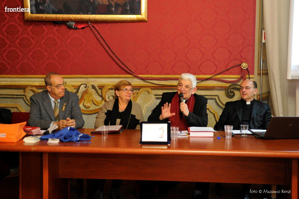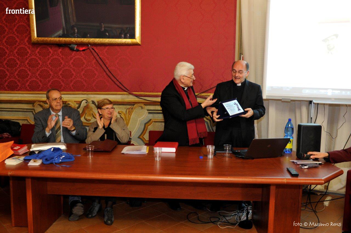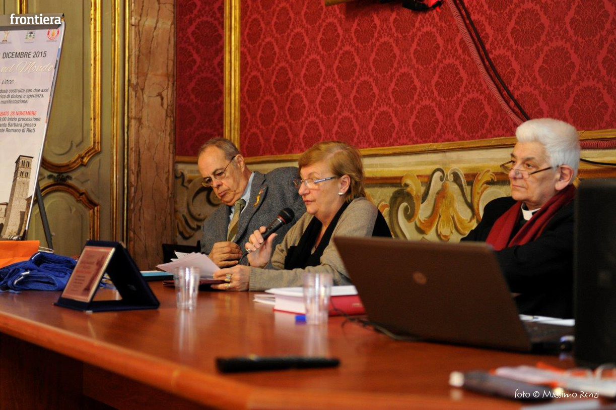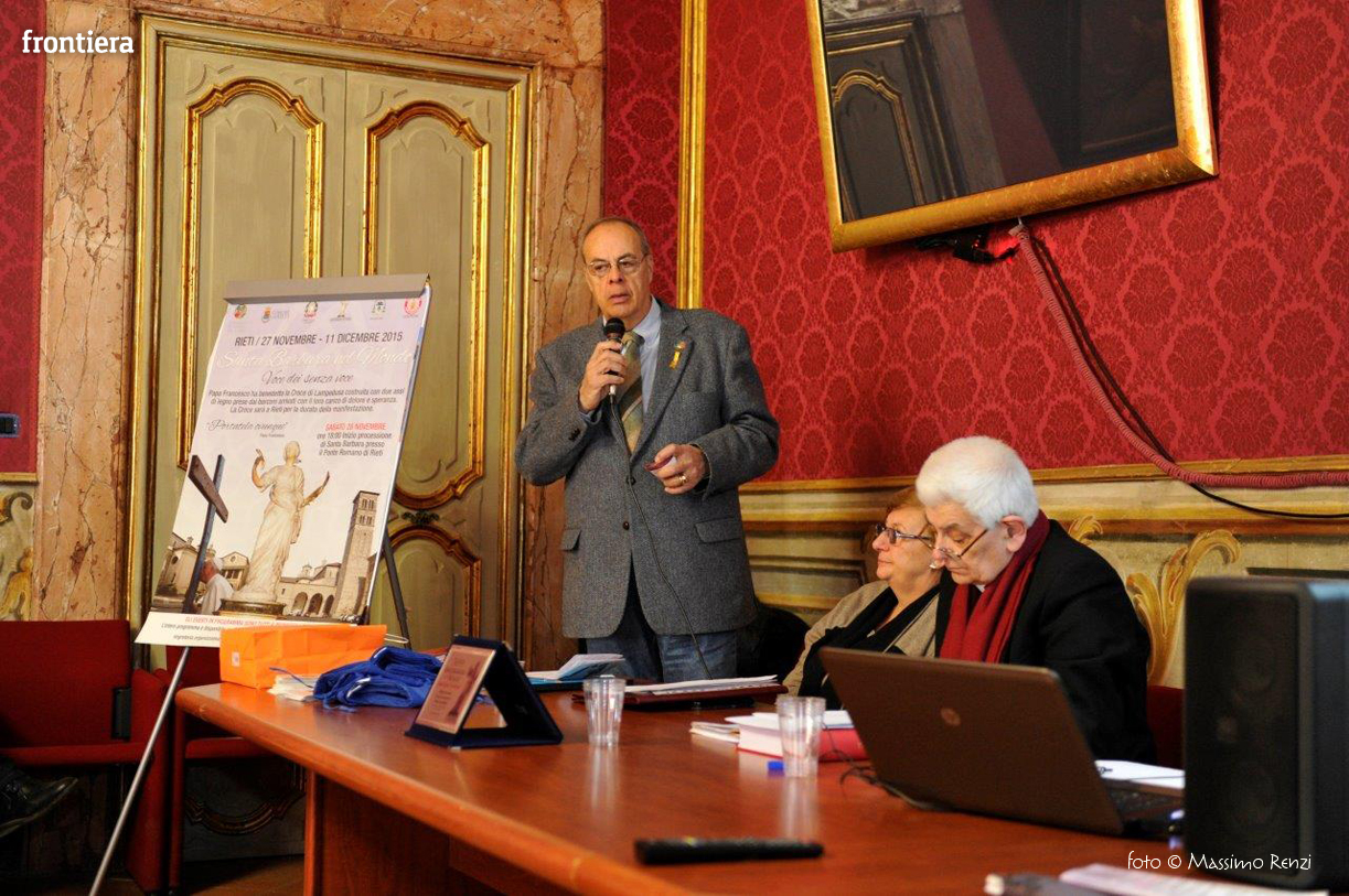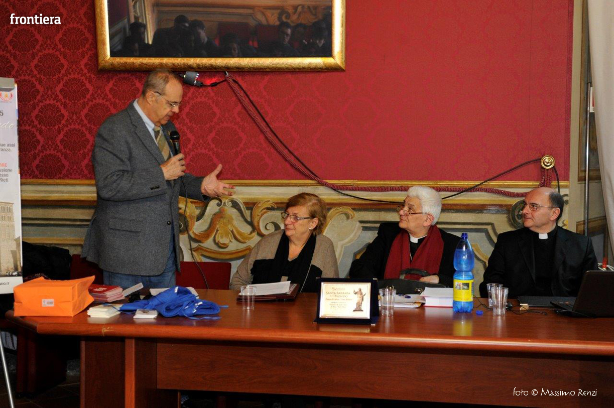 Sono intervenuti Mons. Lorenzo Chiarinelli, Vescovo Emerito di Viterbo, Ponente della Causa di Beatificazione, Maria Cristini Olini, Vice Presidente Associazione Nazionale Partigiani Cristiani, Aladino Lombardi, Segretario Generale ANFIM e Maurizio Chiarinelli, Presidente della Sabina Universitas.