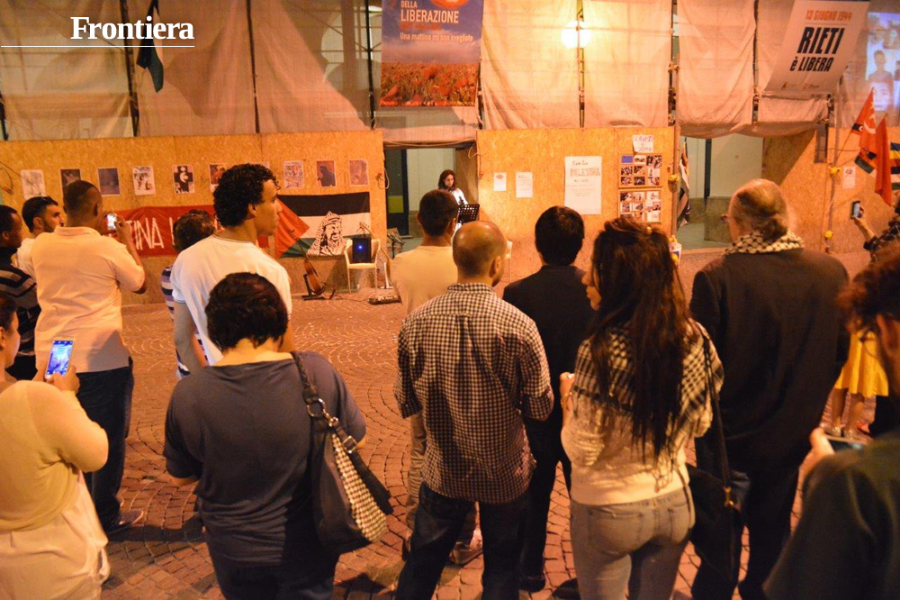 All’iniziativa di piazza Vittorio Emanuele hanno aderito anche Arabi insieme, Sinistra Ecologia e Libertà, Rieti Libertaria e l’Associazione nazionale Donne in rete per essere «a fianco della gente di Gaza, con chi in tutto il mondo si sta mobilitando contro questa ennesima recrudescenza di morte, violenza ed oppressione. Siamo con il popolo palestinese tutto, disperso nel mondo, siamo per il diritto al ritorno, all’acqua, alla terra, al futuro. Siamo con la Palestina nel cuore».