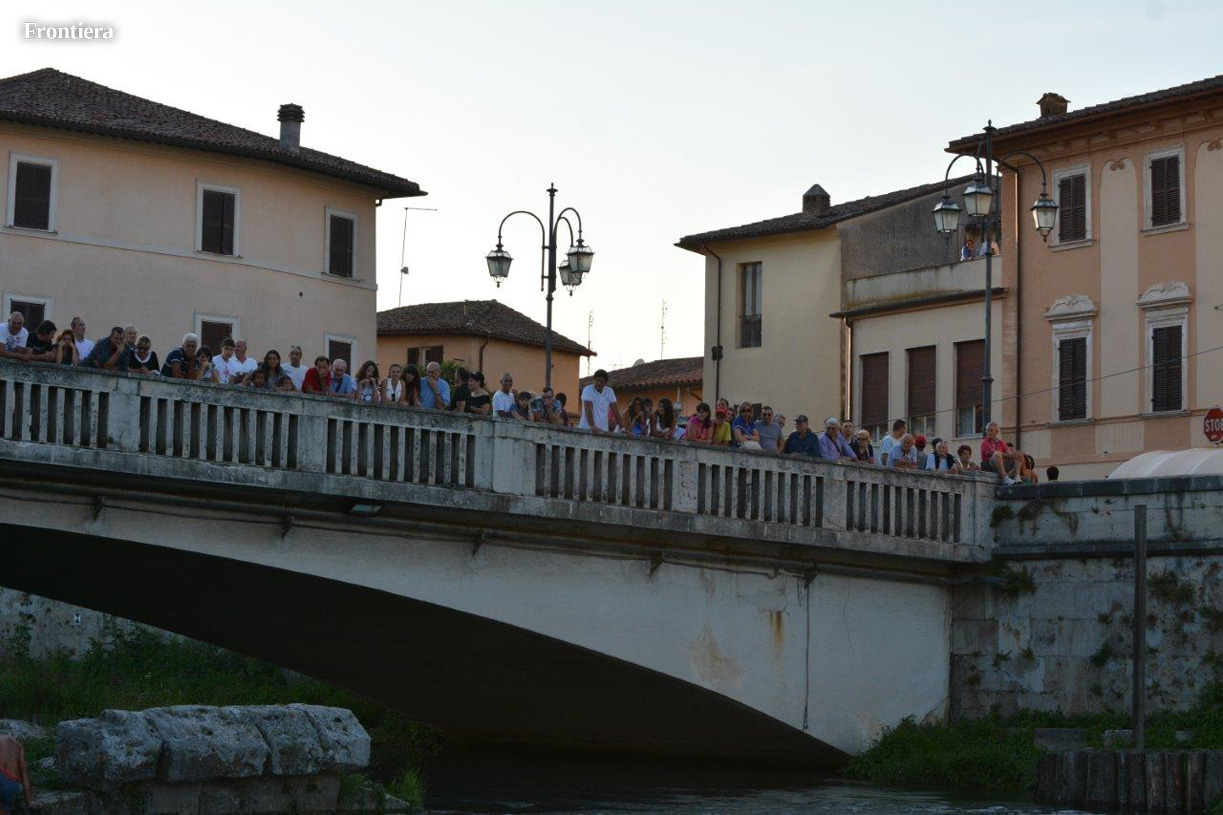 Si è svolto domenica 24 agosto sul Velino il “Palio all’incontrario”, appuntamento goliardico promosso dai rioni che partecipano ogni anno alla Festa del Sole. Gli atleti delle contrade sono infatti tornate a competere sul fiume, ma con la particolarità di non potersi cimentare nelle proprie specialità. Niente tinozza ai tinozzari, dunque, ma anche niente bicicletta ai ciclisti e barca vietata ai fiumaroli. Quasi ogni concorrente ha dovuto misurarsi con una prova per lui inedita, estranea. Una formula che il pubblico sembra aver gradito, almeno a giudicare dalle presenze.