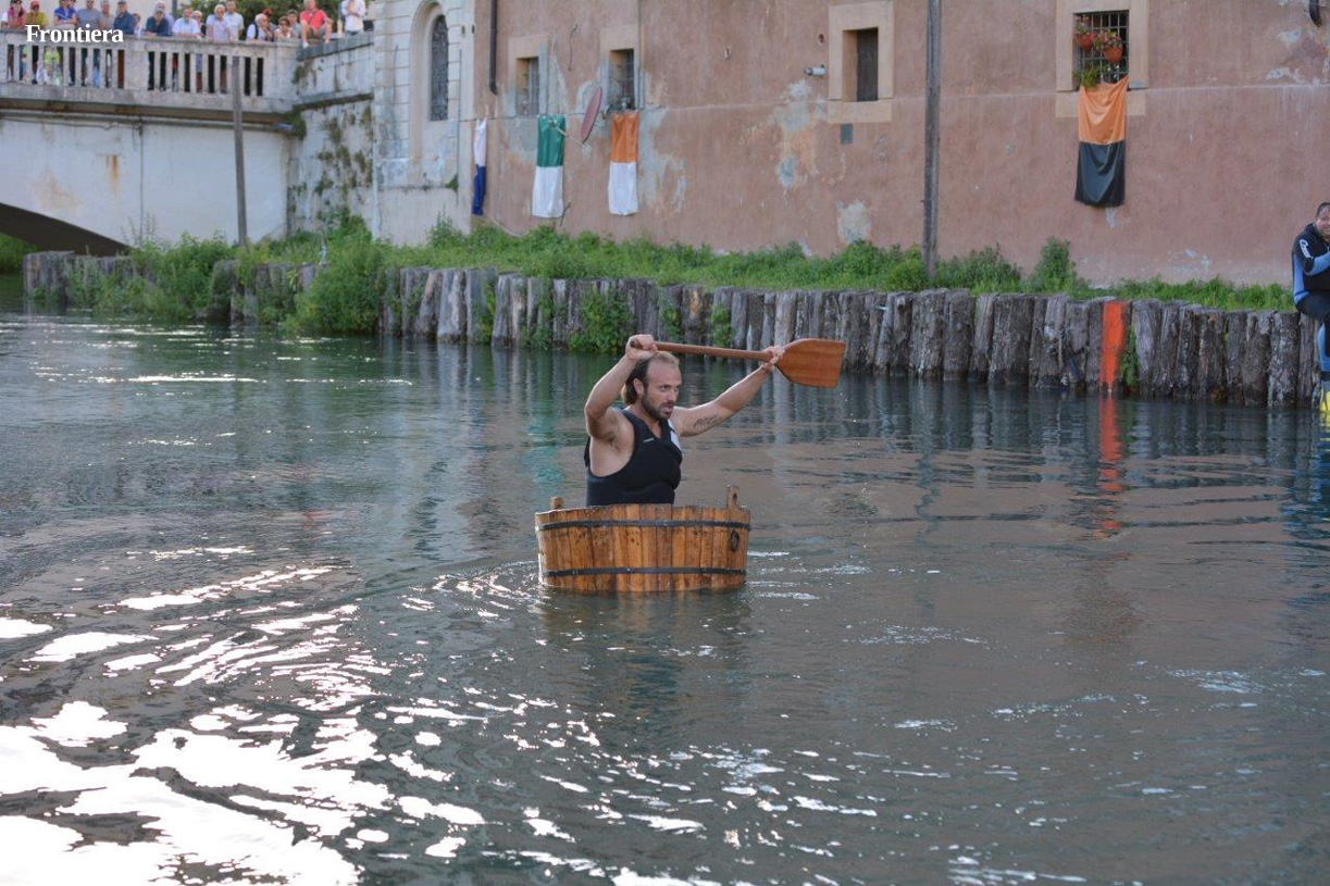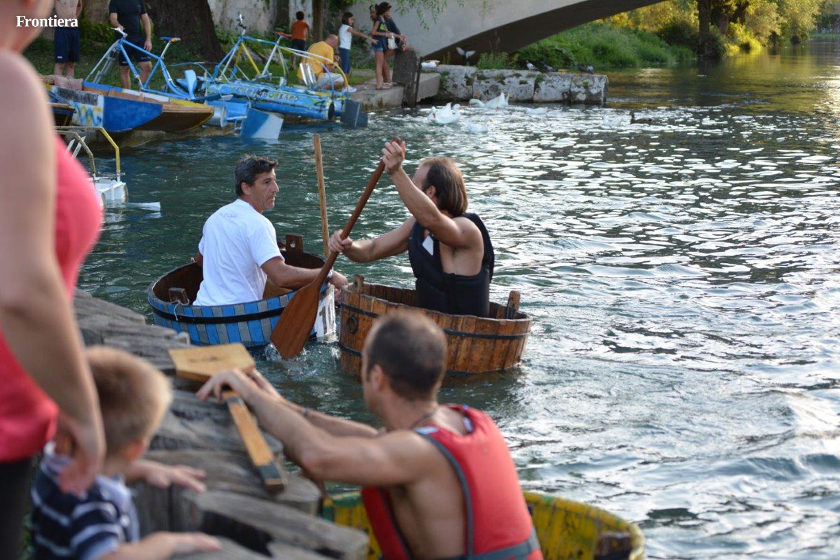 Si è svolto domenica 24 agosto sul Velino il “Palio all’incontrario”, appuntamento goliardico promosso dai rioni che partecipano ogni anno alla Festa del Sole. Gli atleti delle contrade sono infatti tornate a competere sul fiume, ma con la particolarità di non potersi cimentare nelle proprie specialità. Niente tinozza ai tinozzari, dunque, ma anche niente bicicletta ai ciclisti e barca vietata ai fiumaroli. Quasi ogni concorrente ha dovuto misurarsi con una prova per lui inedita, estranea. Una formula che il pubblico sembra aver gradito, almeno a giudicare dalle presenze.