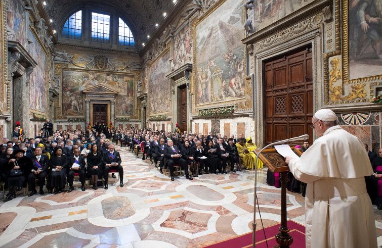 “Il nuovo anno non sembra essere costellato da segni incoraggianti, quanto piuttosto da un inasprirsi di tensioni e violenze”, la prima fotografia del discorso, tradizionale occasione di inizio d’anno per una panoramica geopolitica delle questioni più scottanti sullo scacchiere internazionale. Giovani, abusi, ambiente, dialogo, disarmo nucleare, migrazioni tra i temi del discorso – durato circa 50 minuti – che Francesco ha articolato a 360 gradi ripercorrendo idealmente le tappe dei viaggi internazionali che ha compiuto nel 2019. Oltre ai conflitti in Siria, Libia, Medio Oriente e America latina, molto spazio alle disamine sulla situazione in Europa e Africa. Alla fine, un augurio particolare al popolo italiano – sulla scorta del cinquecentenario della morte di Raffaello Sanzio – e alle donne, 25 anni dopo la Conferenza mondiale di Pechino. Il 14 maggio – ha annunciato Francesco – si svolgerà un evento mondiale sul tema: “Ricostruire il patto educativo globale”.