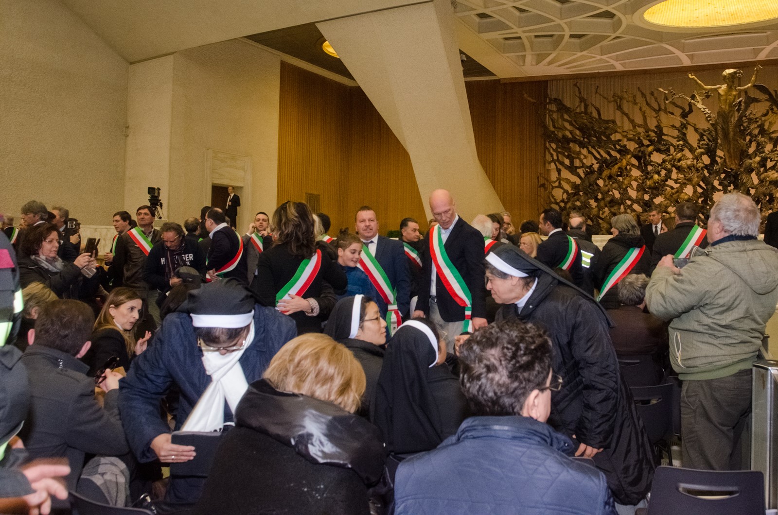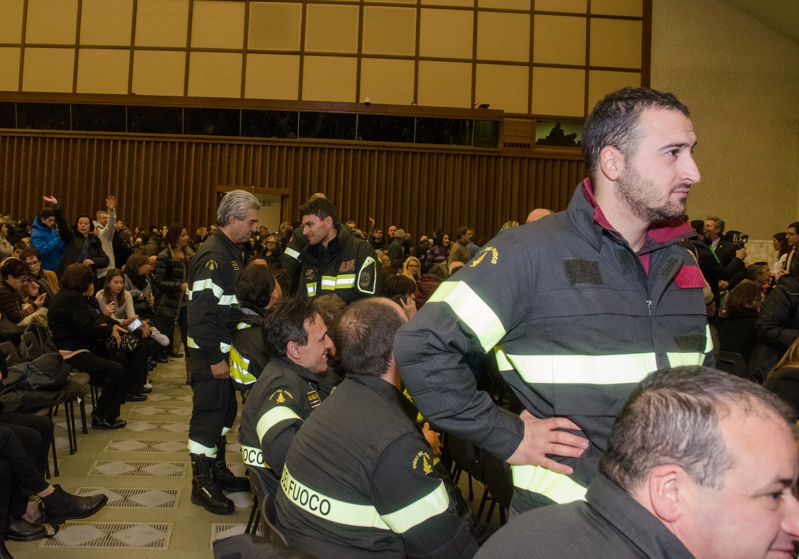 “Ricostruire, ricominciare sì, ma anche ricominciare senza perdere la capacità di sognare, di riprendersi. Avere il coraggio di sognare una volta in più”. È l’invito rivolto dal Papa, come eco delle due testimonianze ascoltate oggi un Aula Paolo VI, durante l’udienza alle popolazioni colpite dal terremoto, in cui ha parlato delle “parole che più hanno toccato” il suo cuore. La prima, ha detto Francesco, è una parola che “è stata come un ritornello: ricostruire”. “Ricostruire i cuori ancor prima delle case”, hanno detto gli interlocutori che lo hanno preceduto: “Ricostruire i cuori, ricostruire il tessuto sociale e umano, la comunità ecclesiale. Ricostruire”. A questo punto Francesco ha citato la testimonianza di un uomo che ha incontrato il 4 ottobre, quando è andato a far visita alle zone terremotate: “Mi viene in mente quell’uomo che mi ha detto: per la terza volta ricomincerò a costruire la mia casa”. “Ricominciare, non lasciarsi andare dicendo ‘ho perso tutto’, non lasciarsi amareggiare”, l’invito del Papa: “Il dolore è grande, ricostruire col dolore. Le ferite del cuore ci sono, voi avete perso gente della vostra famiglia. I cuori sono feriti”.