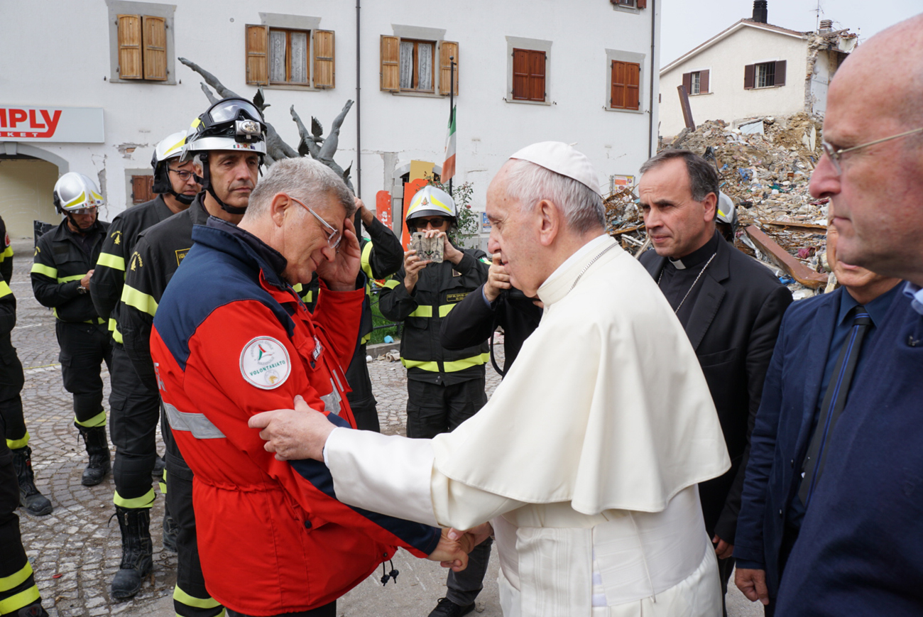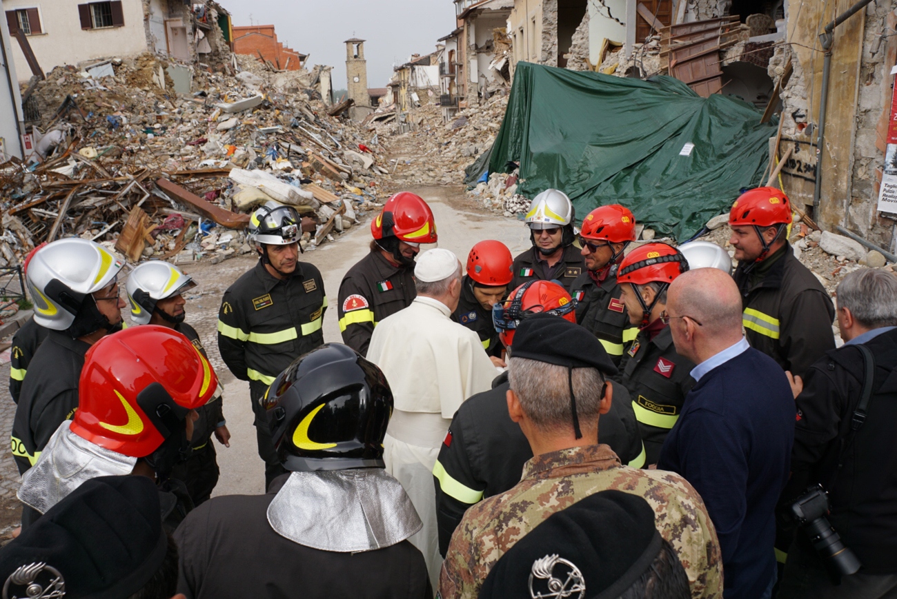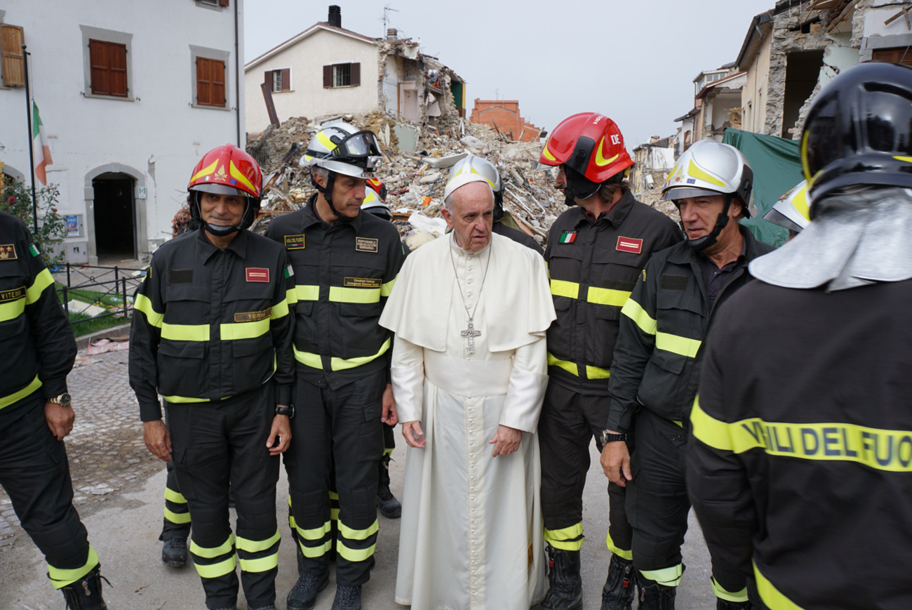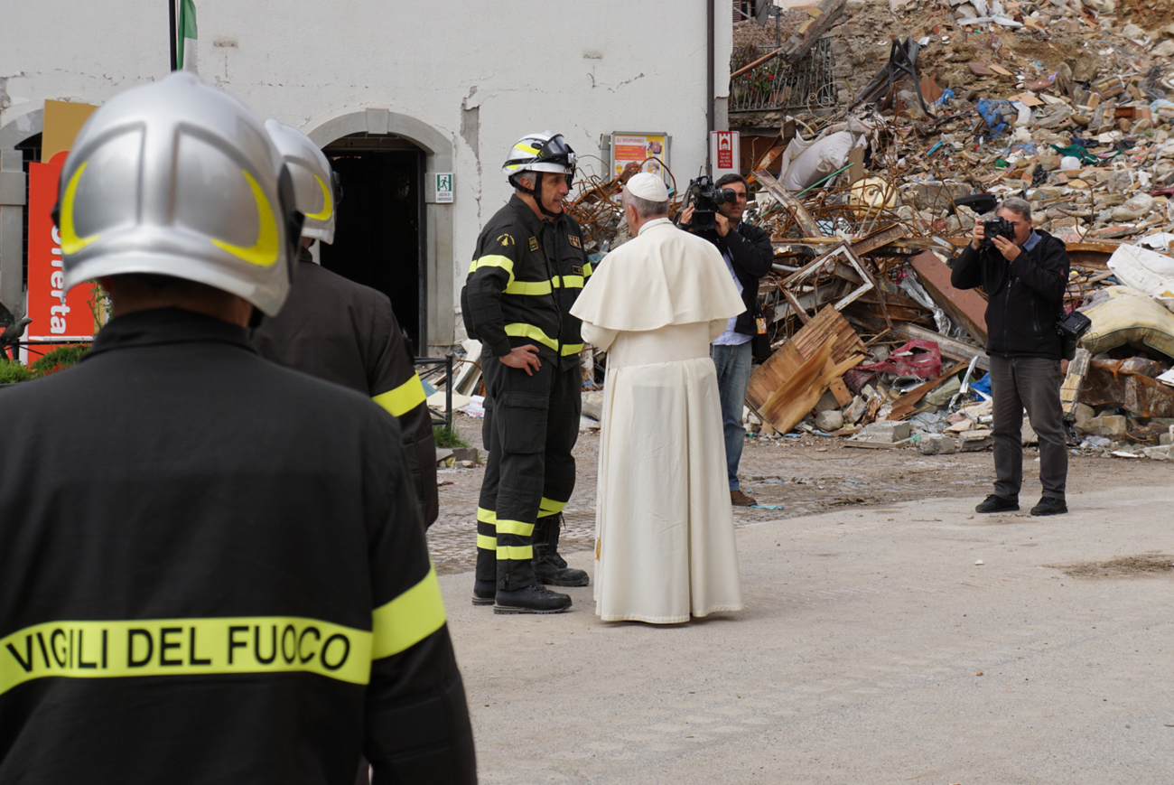 Il Papa ha espressamente ringraziato i Vigili del Fuoco per il lavoro svolto, e con i quali ha voluto una foto. Ma non solo loro. Ha voluto dire grazie anche alla Protezione civile, all’Esercito e a tutte le altre Forze impegnate sul terreno. Ai volontari. Tutti decisivi per superare i momenti più tragici e difficili del post terremoto. Il Pontefice si è detto colpito dalla professionalità e dalla prossimità messe in campo dagli uomini e dalle donne appartenenti a tutte queste Forze.