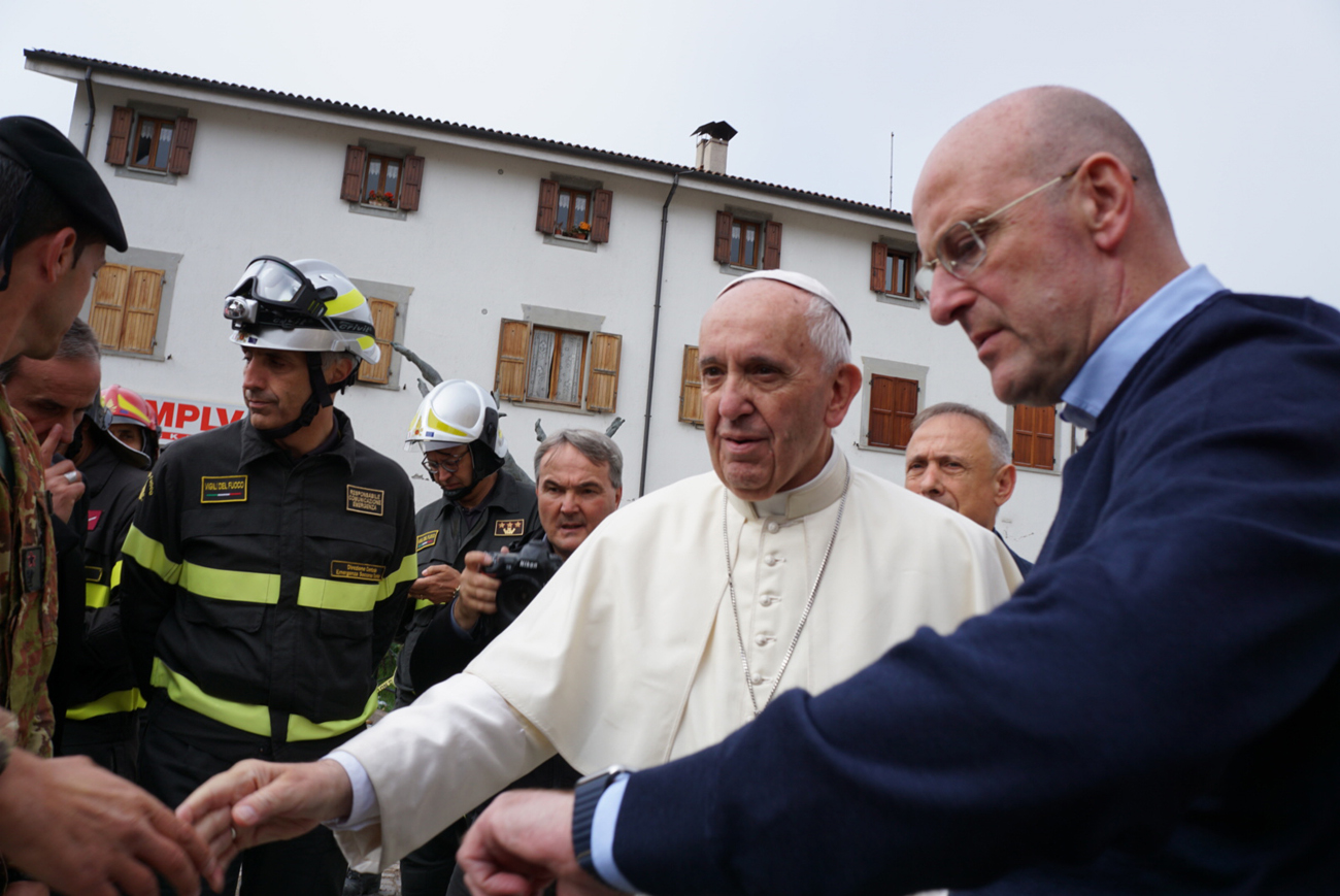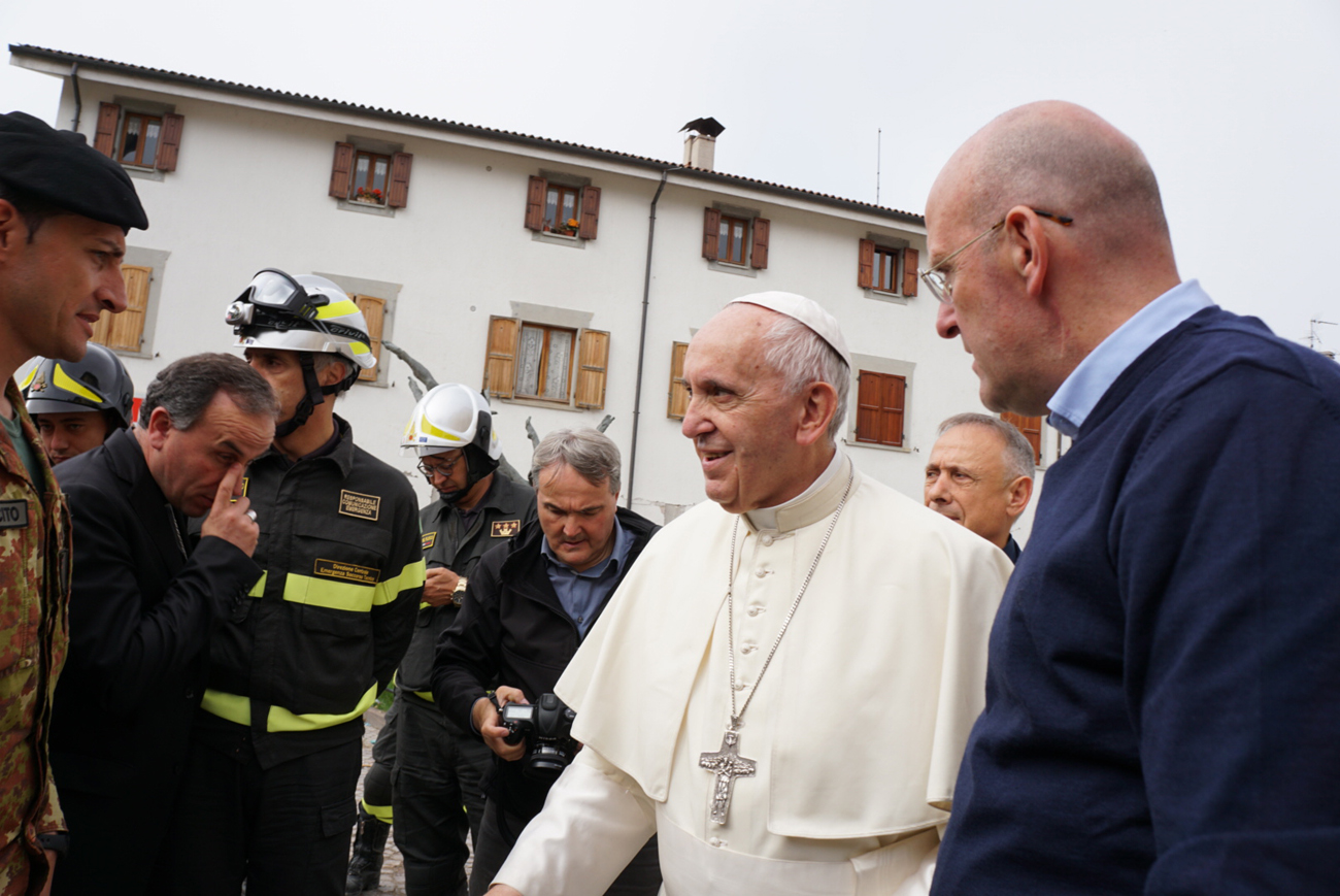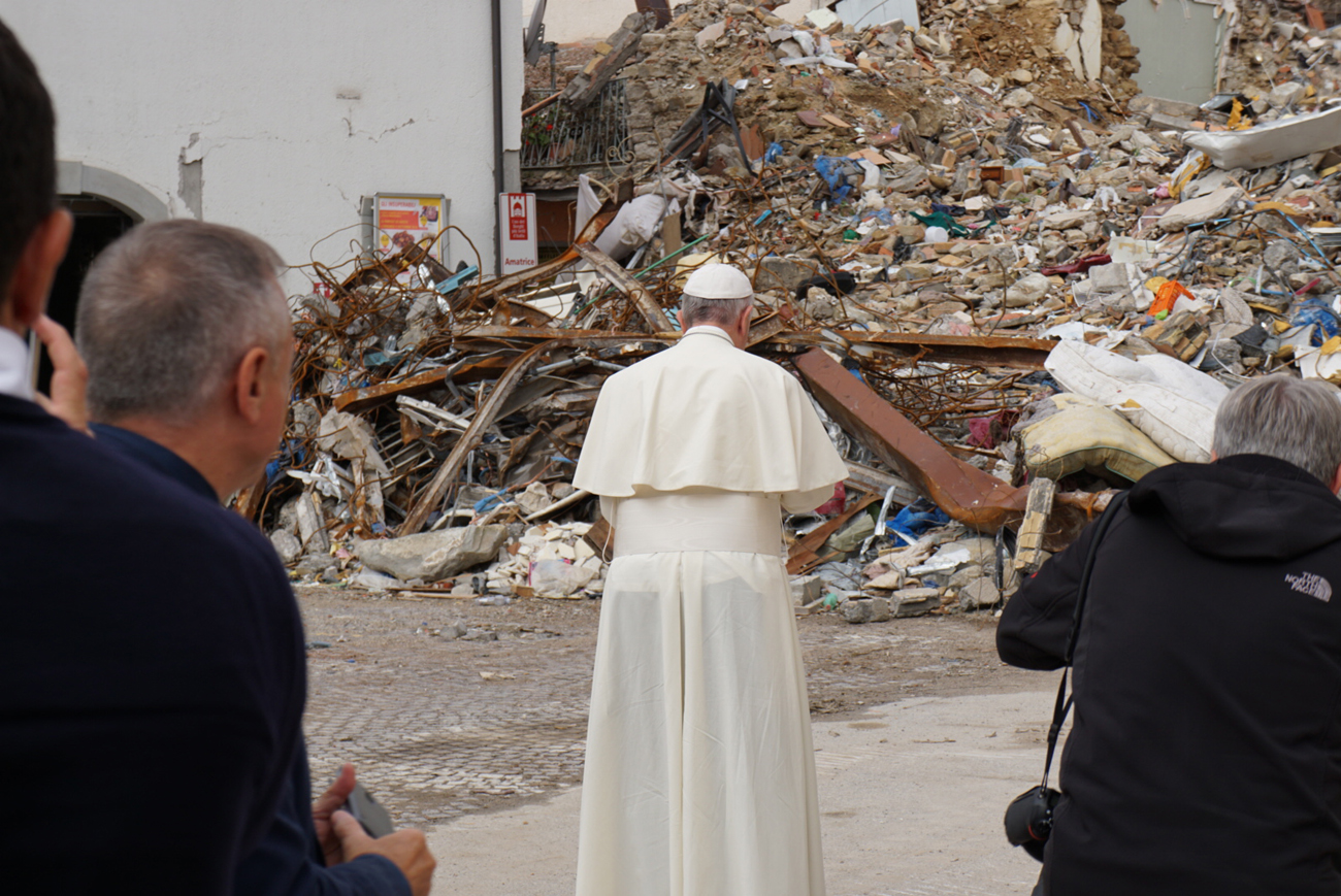 Il Papa è rimasto molto colpito dal disastro. Ha voluto pregare nella zona rossa.