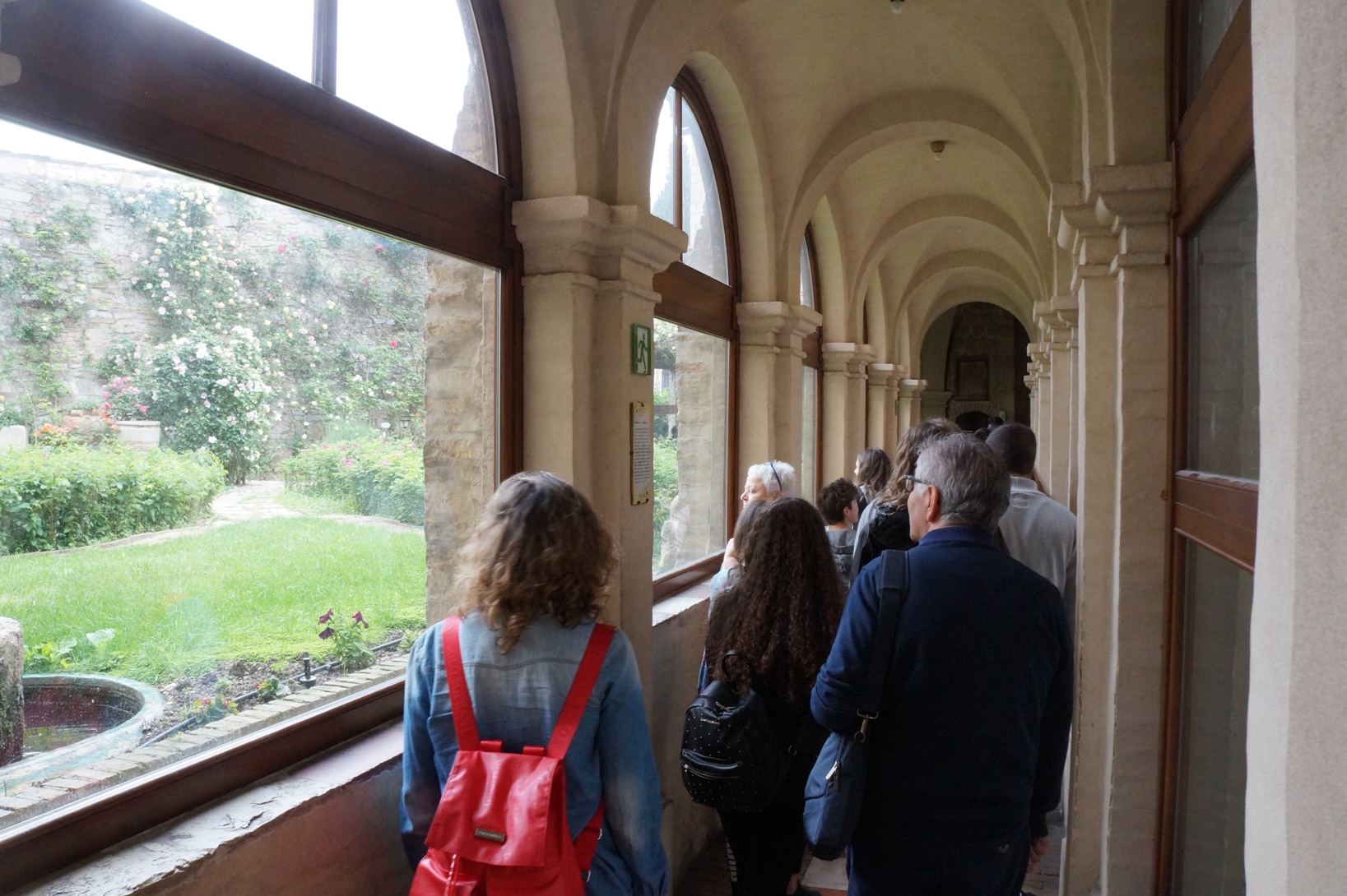 Partenza alle 7 e dopo neanche un paio d’ore le dolci colline umbre hanno fatto dimenticare l’alzataccia e il monocolore bianco di nebbia e nuvole. Durante il viaggio, tra una breve nota sulla storia d’Assisi e una altrettanto breve sosta alla stazione di servizio, si scorgono Trevi, Spello e campi di papaveri.