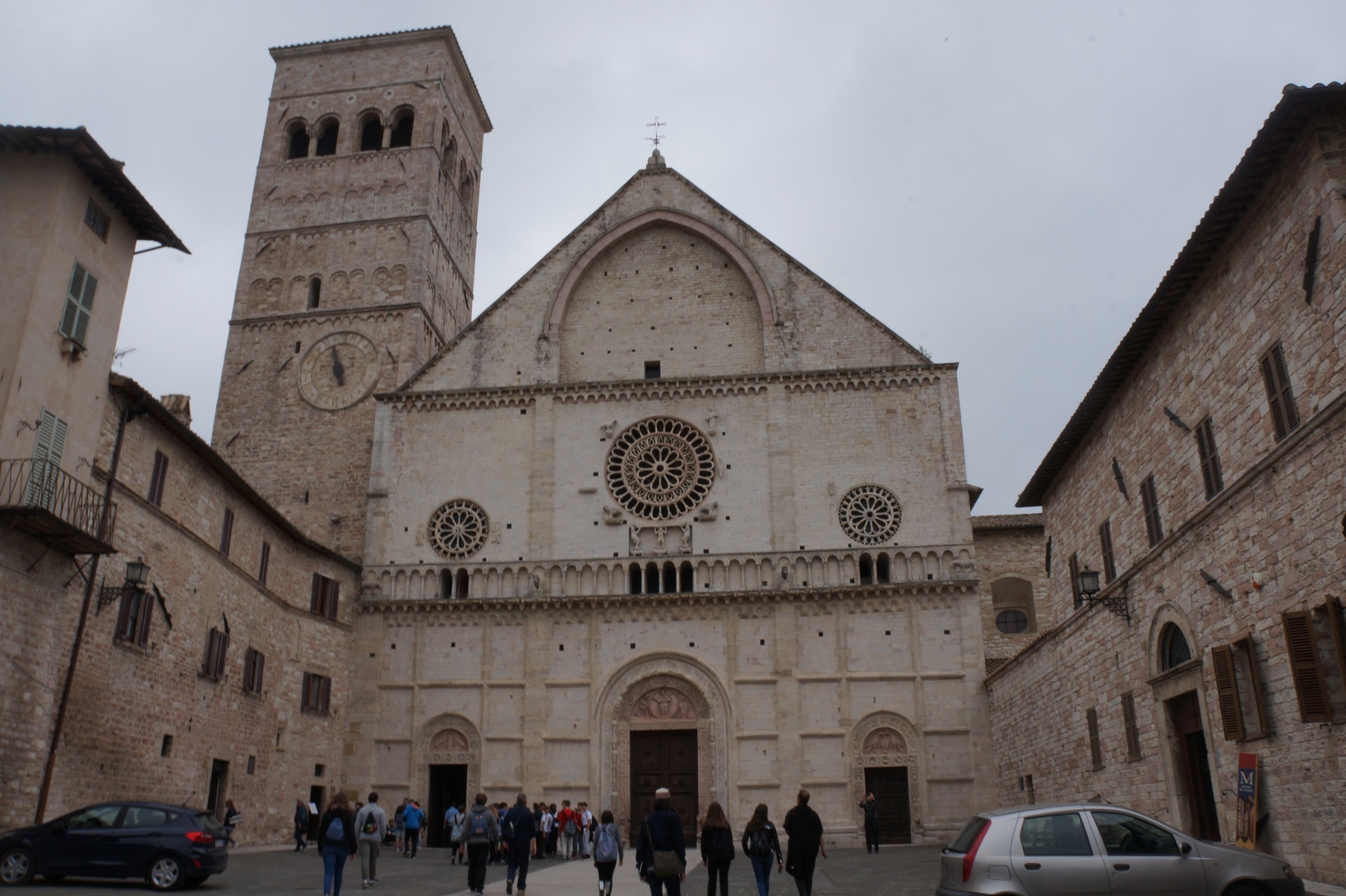 Poi è stata Assisi, distesa nella foschia, assumendo un’aria ancora più magica e sognante, ad accogliere i giovani pellegrini. Il rosa pastello della Chiesa di Santa Chiara è stato il perfetto biglietto da visita della serenità del posto (mercatini permettendo). All’interno, la tomba della Santa e il Crocifisso di San Damiano hanno ammutolito ed emozionato i giovani visitatori.