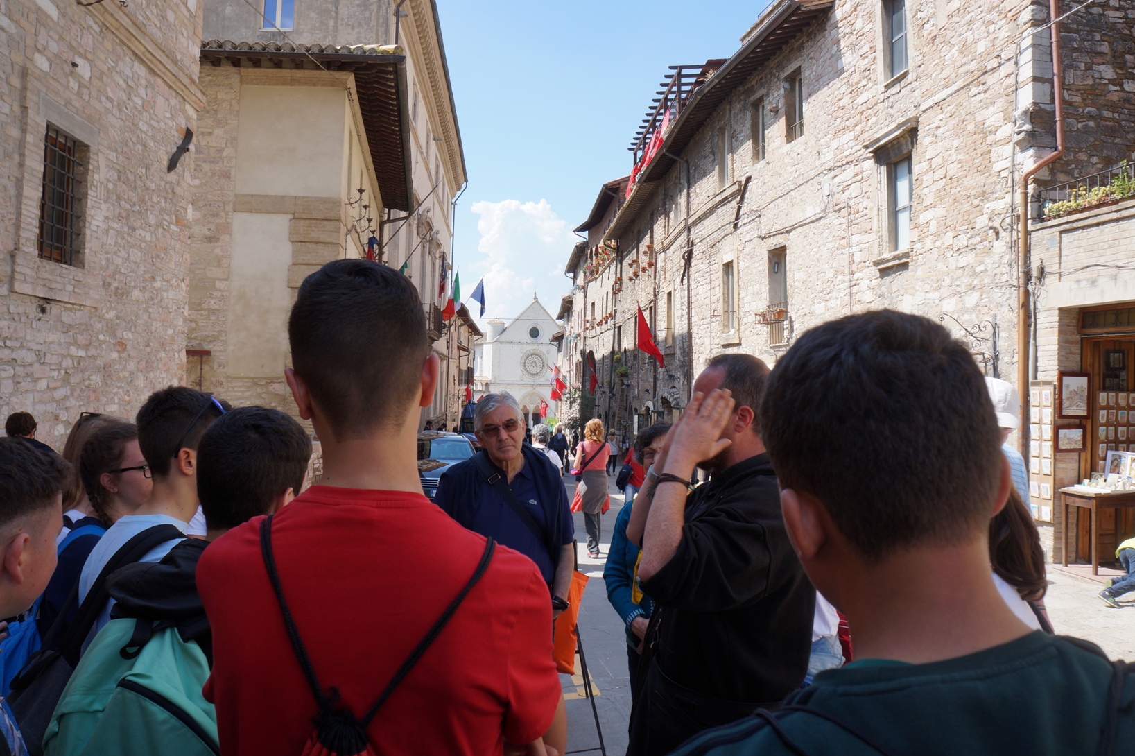 Raggiunta la Rocca maggiore, i ragazzi si sono presi una meritata pausa per il pranzo, accompagnata dal velato panorama, che per questa volta ha tenuto per sé la vista su Perugia. Ben visibile, invece, la Basilica di San Francesco, prima apparizione della meta finale.