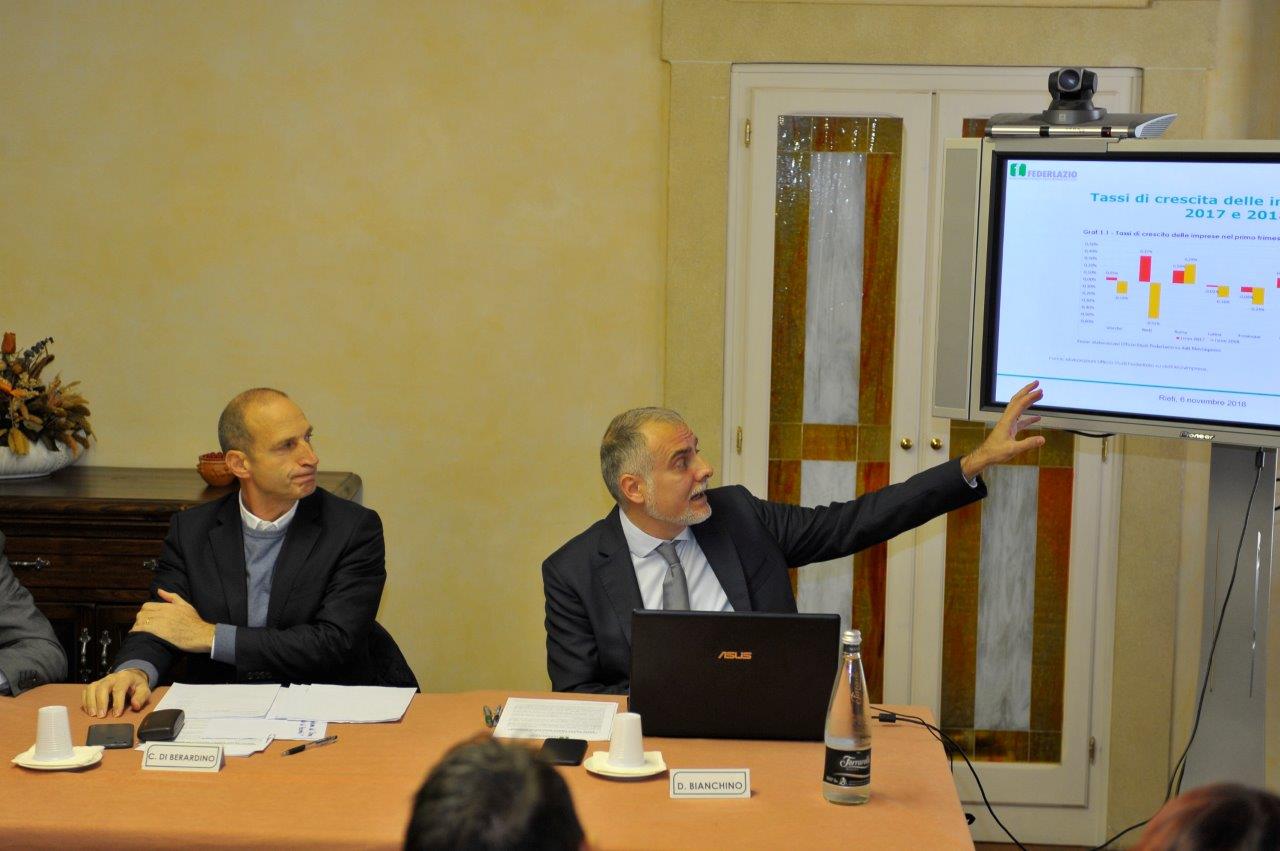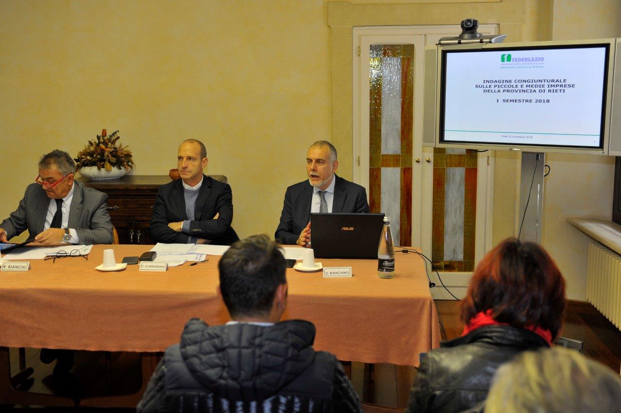 La Federlazio ha presentato la consueta Indagine Congiunturale sullo stato di salute delle Pmi della provincia di Rieti. L’Indagine, svolta su un campione rappresentativo di imprese associate, è stata presentata oggi nel corso di una conferenza stampa dal presidente della Federlazio di Rieti, Riccardo Bianchi, e dal Direttore Davide Bianchino. Per l’occasione è intervenuto anche l’Assessore al Lavoro della Regione Lazio Claudio Di Berardino che ha commentato i risultati dell’indagine davanti ai membri del Consiglio Direttivo di Federlazio.