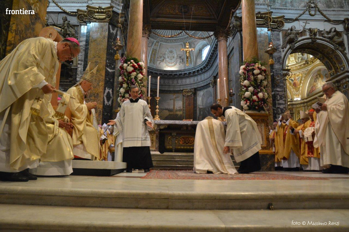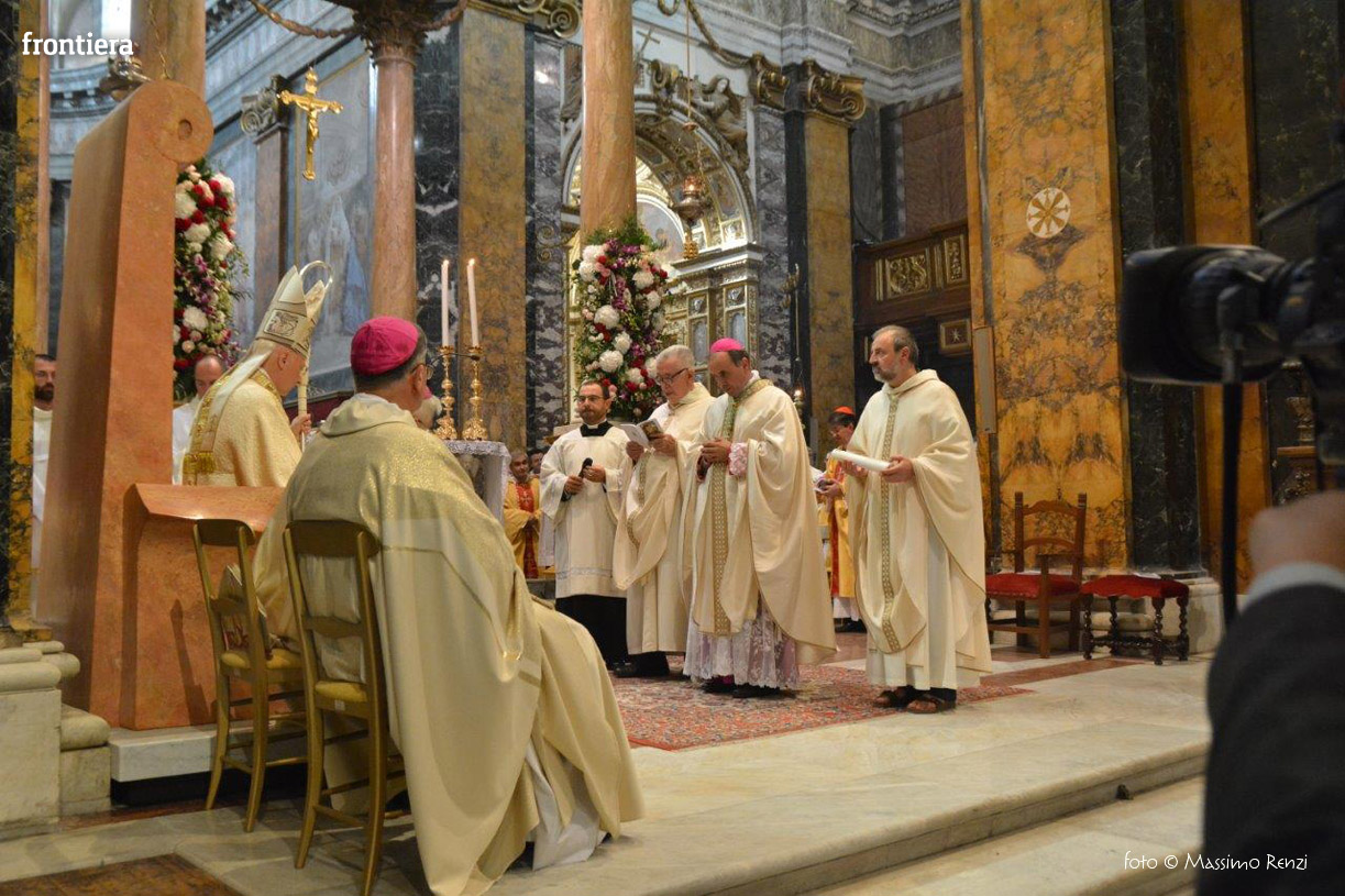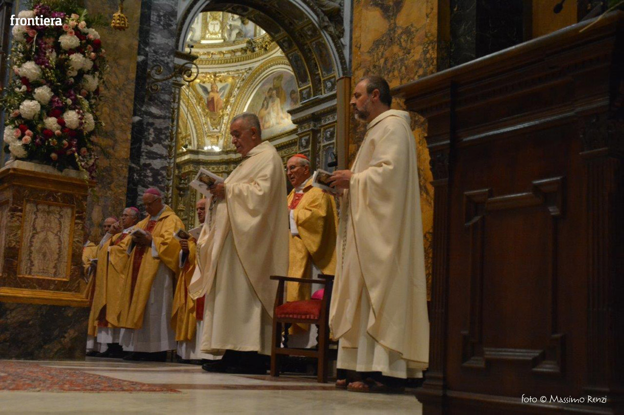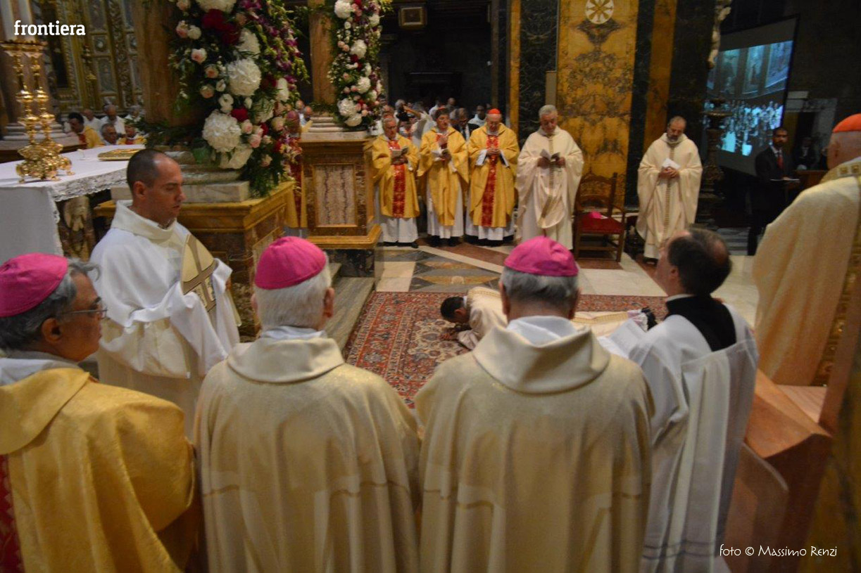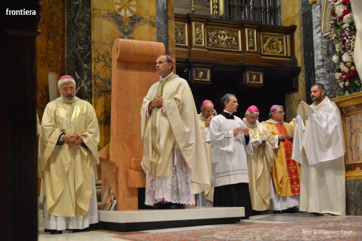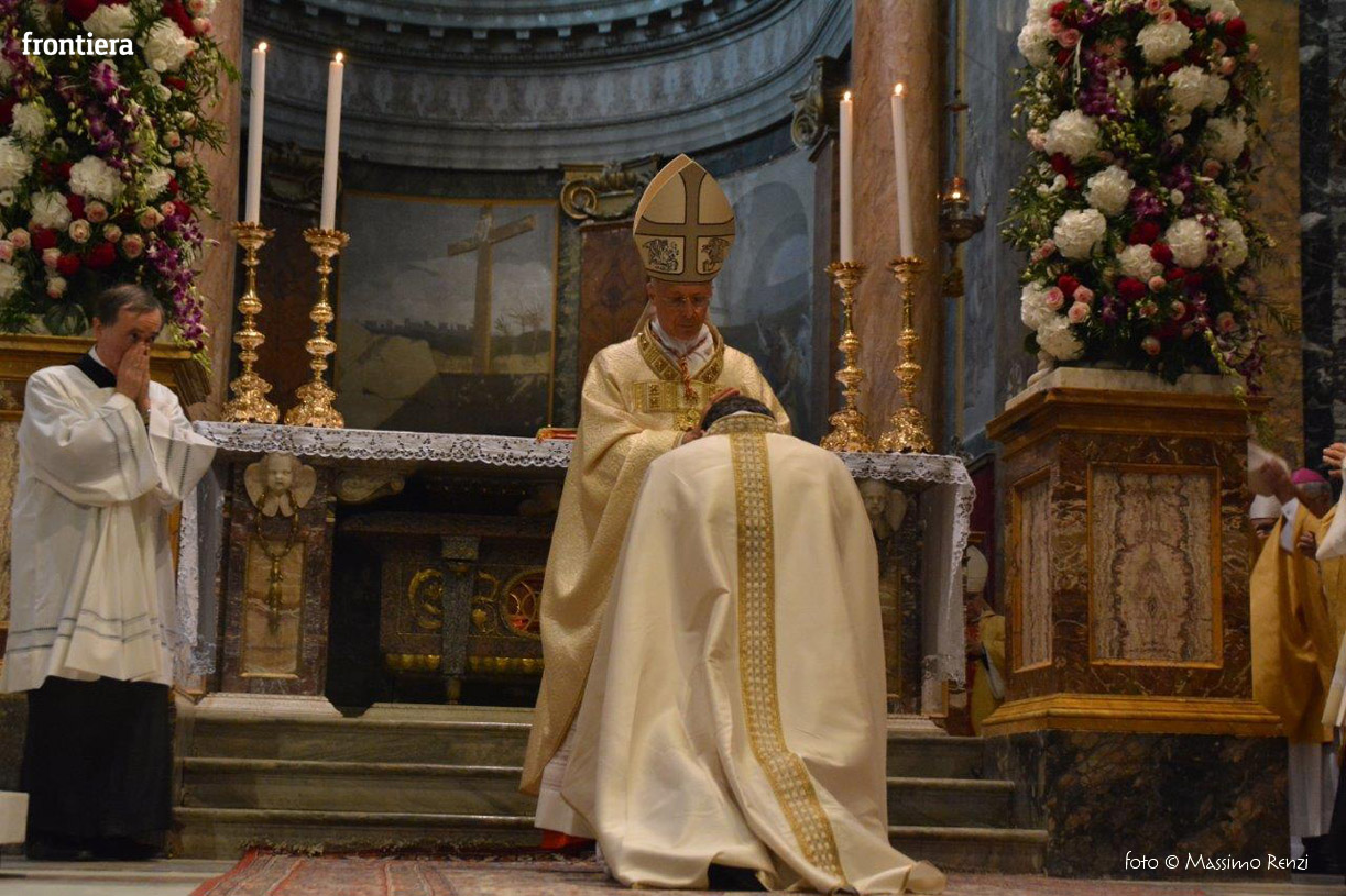 «Quando nel segreto della sera rivedrai le tue giornate – ha detto il cardinale rivolgendosi a mons. Pompili – non esaminarti tanto su quello che hai fatto, ma su ciò che sei stato, sapendo che questo è legato al tuo rapporto con Gesù, la Vergine Maria, i Santi: un rapporto non solamente creduto, ma anche sentito perché continuamente richiamato nel tuo cuore, desiderato in ogni gesto, invocato davanti al tabernacolo. Il nostro ministero dipende non tanto dalle nostre qualità – che restano comunque un buon strumento -, e neppure in primo luogo dall’offrire la nostra vita agli altri: dipende innanzitutto dall’offrire il nostro cuore a Dio».