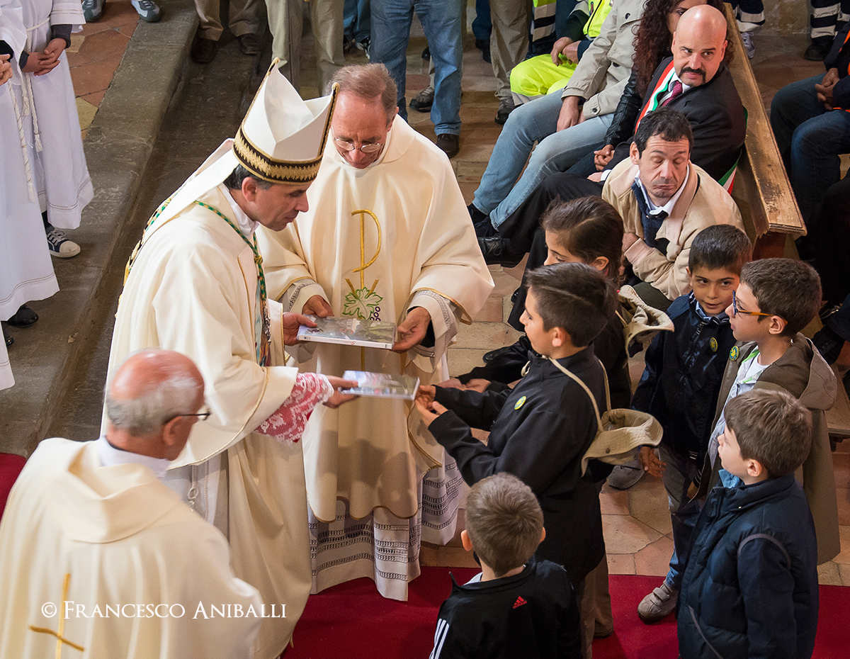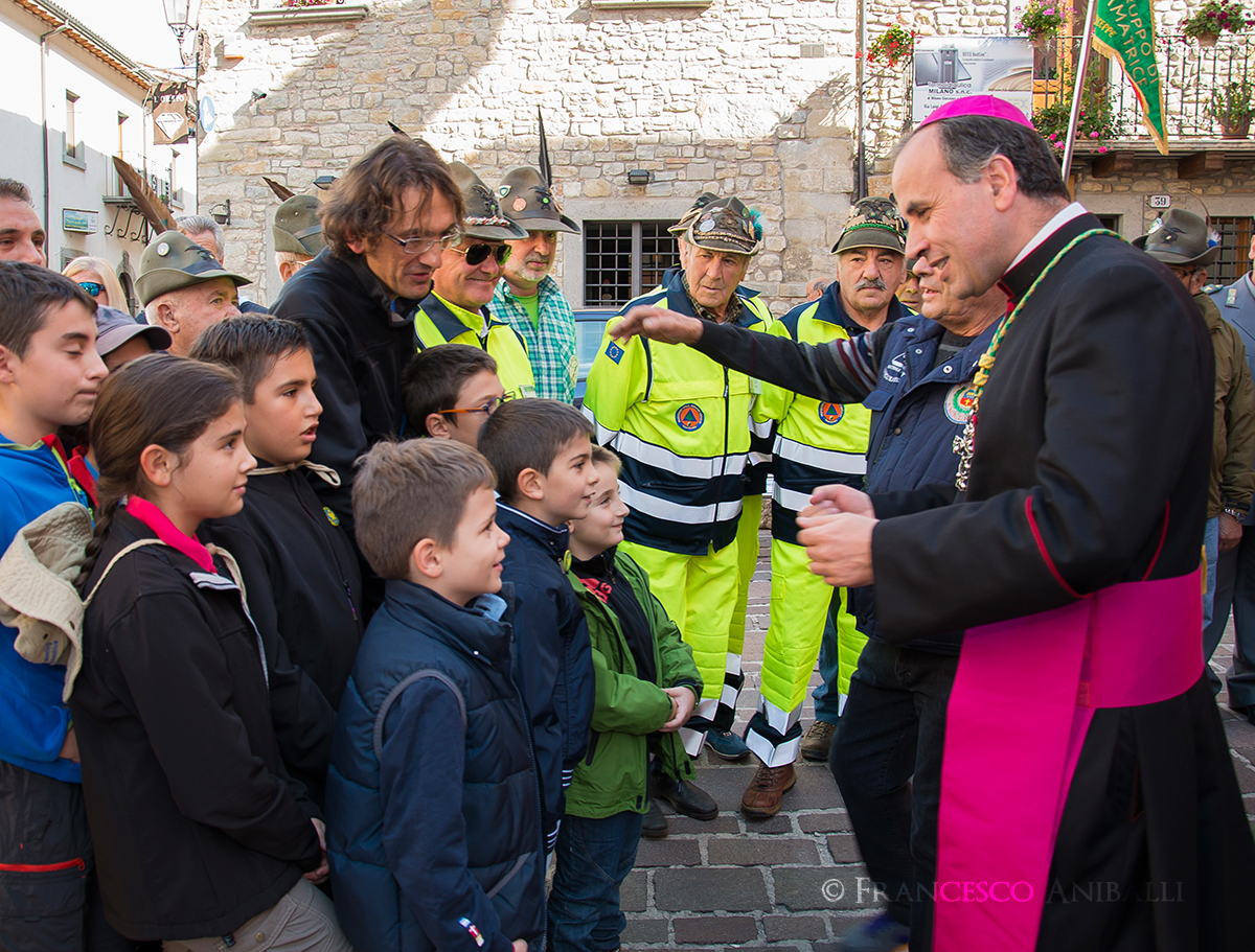 Proprio la sezione amatriciana del sodalizio alpinistico ha accolto il Vescovo nel paese delle 100 chiese, attraverso il saluto dei “piccoli” alpinisti. Nutrita, infatti, la rappresentanza dei giovani soci visibilmente emozionati di fronte al Pastore diocesano.
