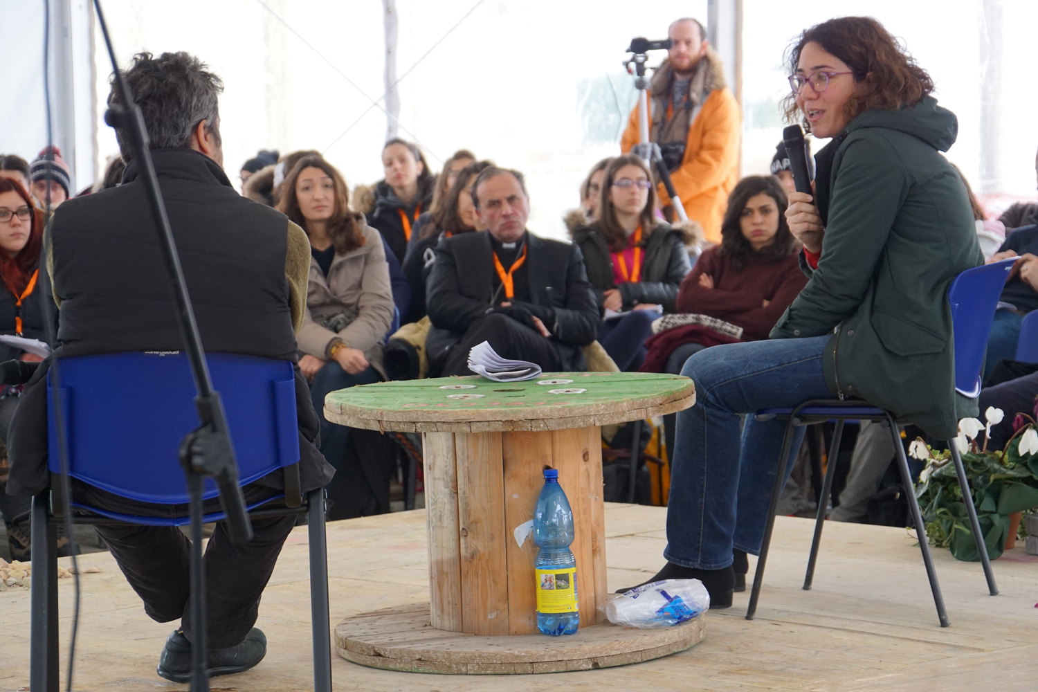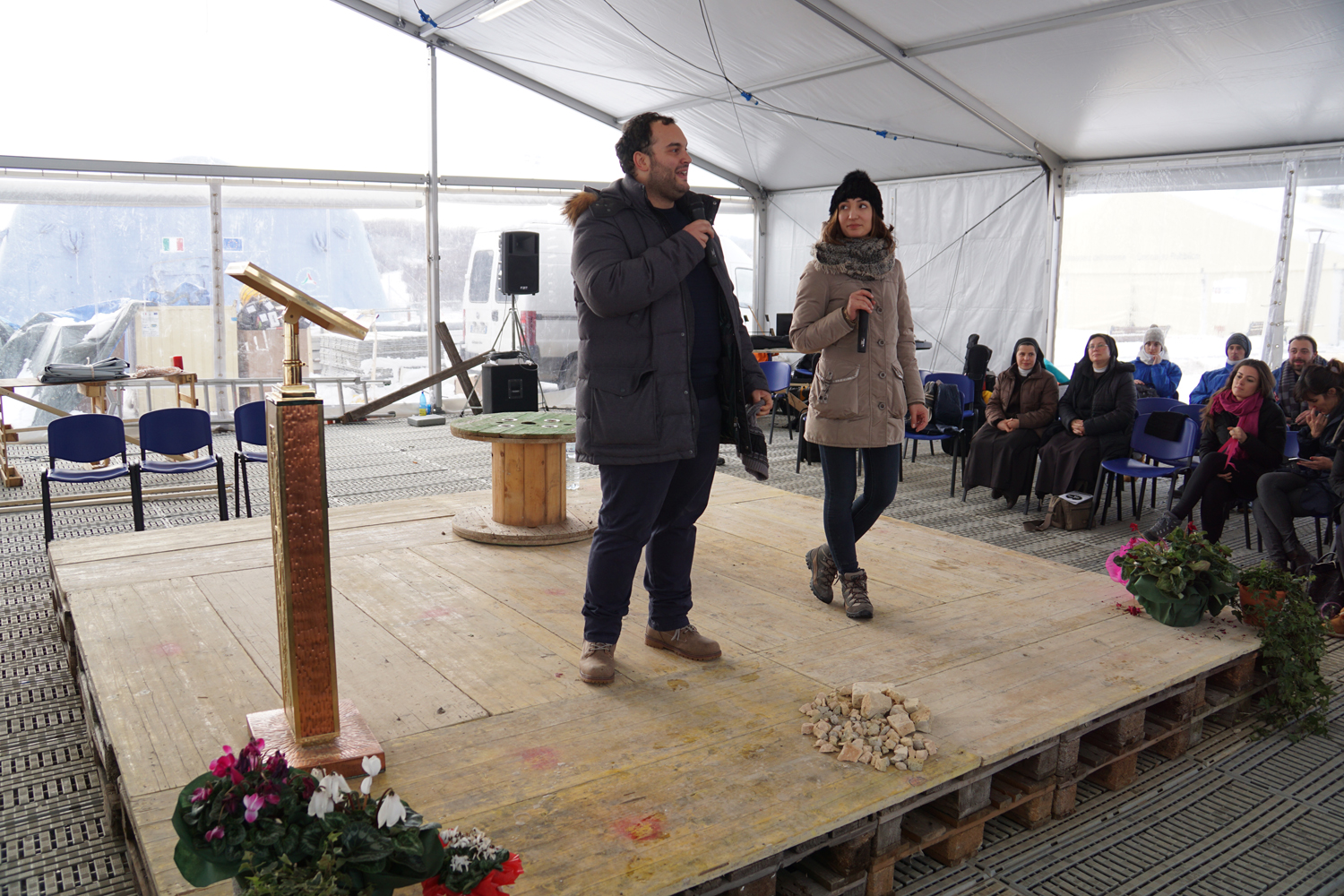 Ad Amatrice per parlare ai giovani “ma in realtà sono io che dovrei ascoltare loro perché hanno molte cose da dire”. Parlare del terremoto? “Non avrei aggiunto nulla a ciò che è stato detto. Ho invece una grande curiosità di ascoltare. Ciò che hanno vissuto questi giovani è una prova enorme. Da loro ho solo da imparare”. E un sogno da condividere: “Mi piacerebbe che qui tornasse ad esserci un cinema, un teatro. Sarebbe bello tirare su una sala. Dovrei cominciare a rompere le scatole in giro, bussare alle porte delle case cinematografiche, a Rai Cinema…” dice ridendo, ma non troppo. “La normalità rende straordinaria ogni cosa. Gesti normali, come per esempio andare al cinema, ci aiuta a dire che siamo ancora vivi”. Freddo glaciale e tanta neve hanno accolto, domenica 8 gennaio, Pierfrancesco Diliberto, in arte Pif, conduttore televisivo, regista e attore, ad Amatrice dove era stato invitato dalla diocesi di Rieti per il Meeting dei Giovani 6-8 gennaio). In un lungo colloquio con i circa 200 partecipanti, che affollavano la tensostruttura messa a disposizione dalla Protezione civile, Pif, regista di “La mafia uccide solo d’estate” e di “In guerra per amore”, e la giornalista Benedetta Tobagi, anche lei ospite al Meeting, hanno toccato diversi temi, come educazione, legalità, lavoro, identità, integrazione. A fare da filo conduttore il tema del Meeting, “Solo l’amore”.